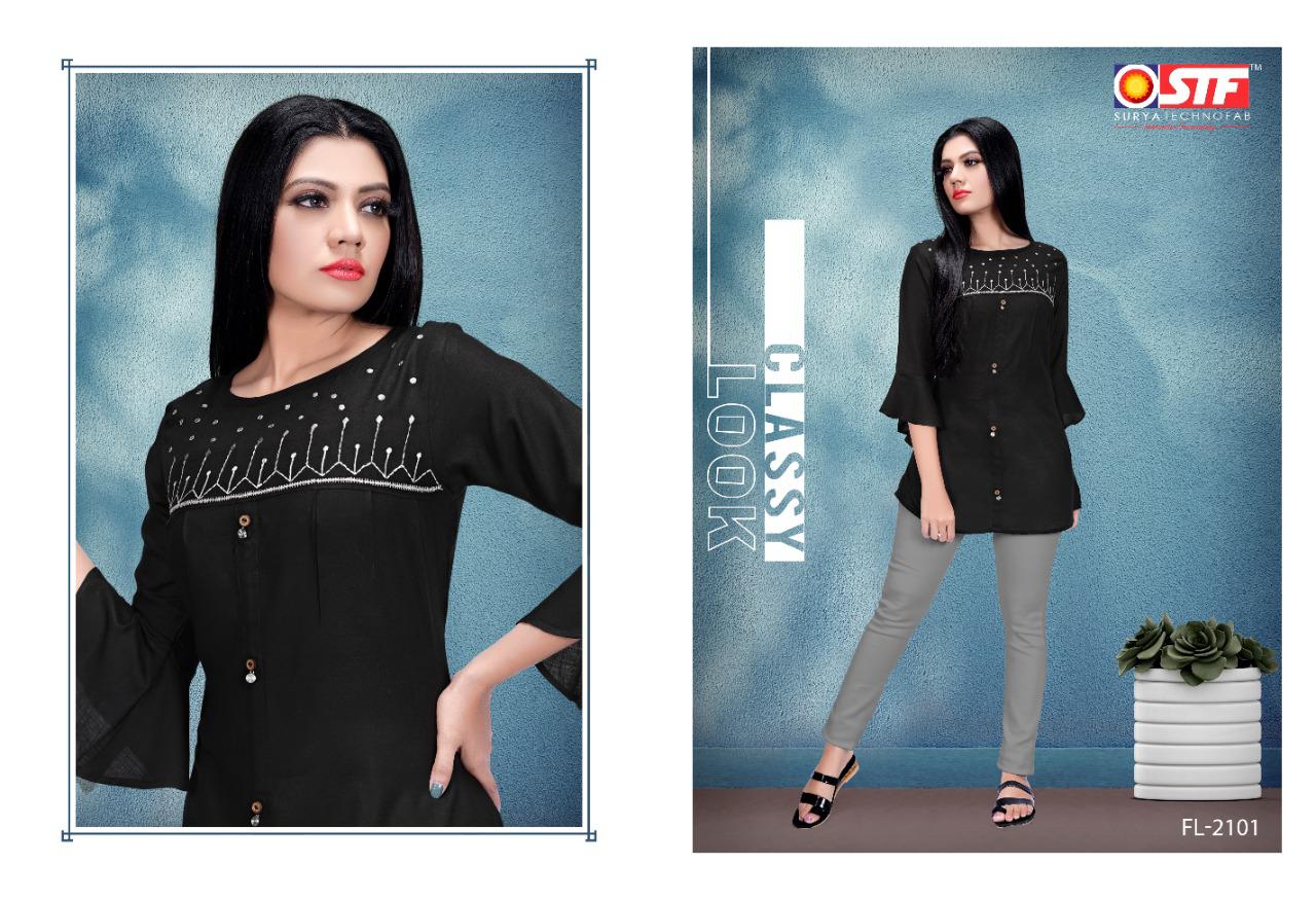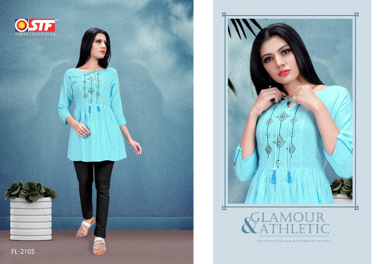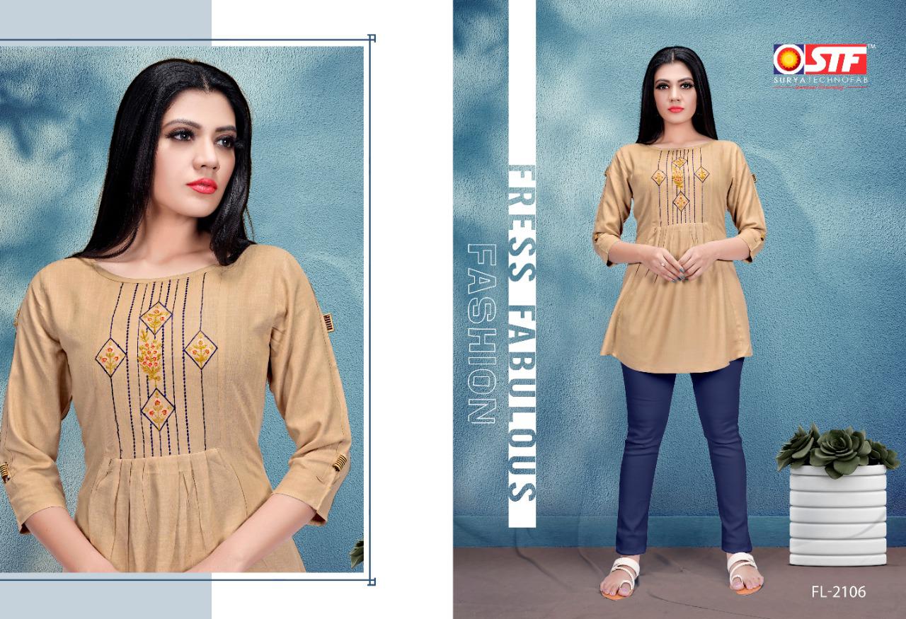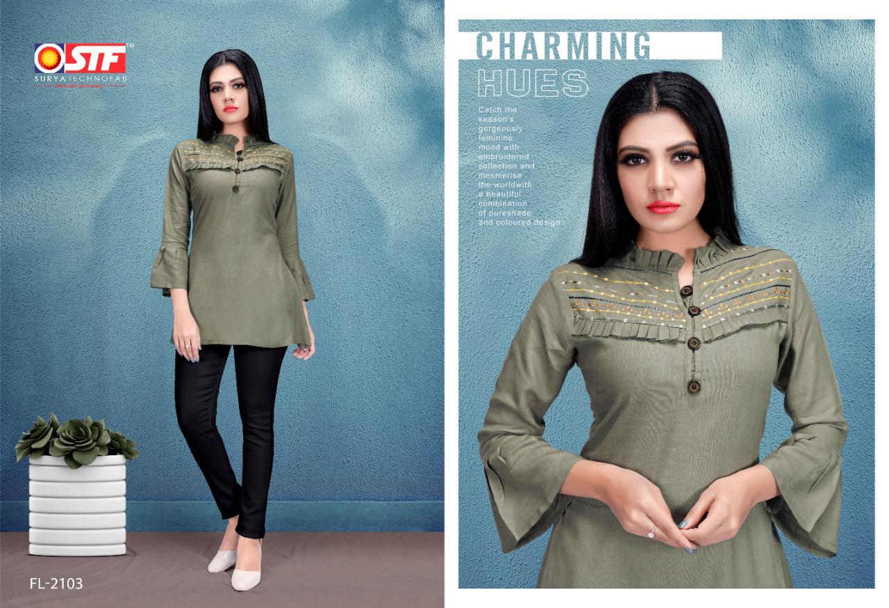 SURAT STF - Kurties Launches A Collection of 9 Rich Styles & Vivid Colours of Trendy Short-Tops Catalogue :- Florence (Vol-21) _(Stylish Embroidered Short Tops)_ Fabrics :- * Hi-Quality Rayon Slub * Length :- * 30”-32”* Flare :- As Per Design Bag :- 9 Pieces Sizes :- M - 38; L - 40; XL - 42; 2XL - 44 Price :- ₹460/- plus 5% GST _Delivery - Today |