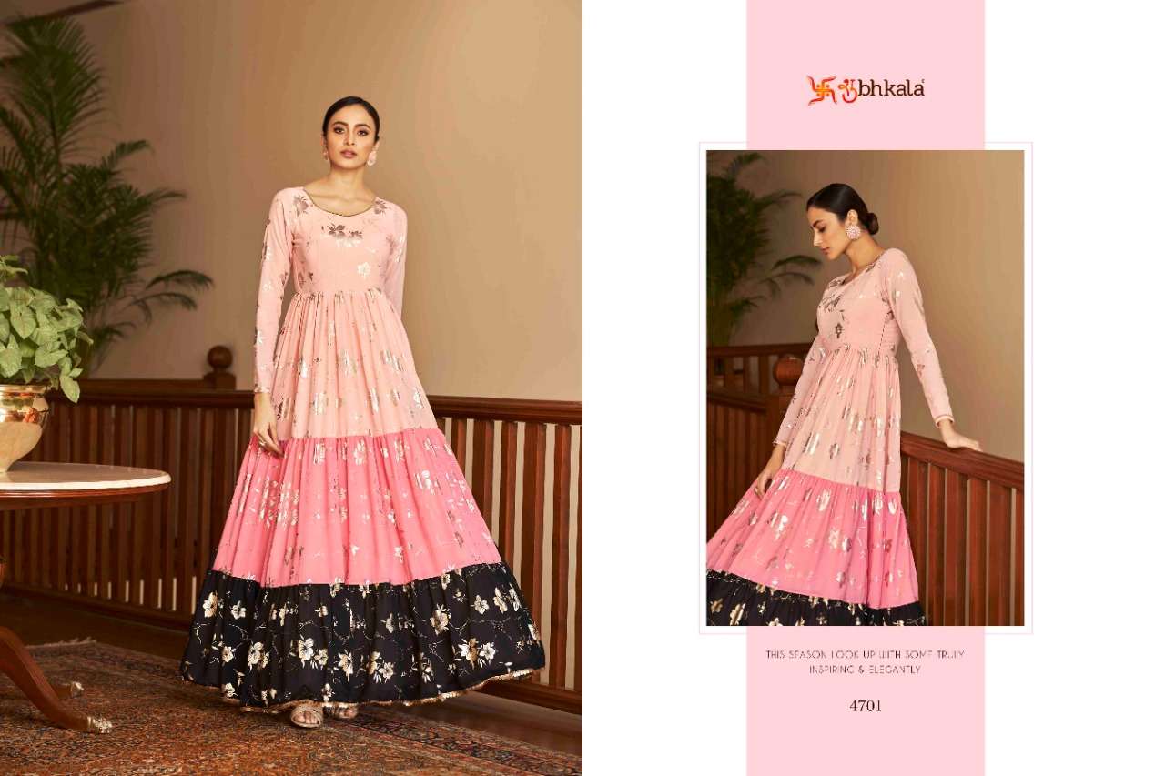 🌺 SHUBHKALA 🌺 👗 New Exclusive Georgette Metalic Foil Work Anarkali Gown Collection 👗 💰 Flory Vol. 18 - RATE LIST 💰 4701: 1300/- Top Length: 58’INCH. Real Pic Available. 👗 🧺 Wash & Care Instructions. 🧺 ⚠️ NOTE:: ⚠️ |