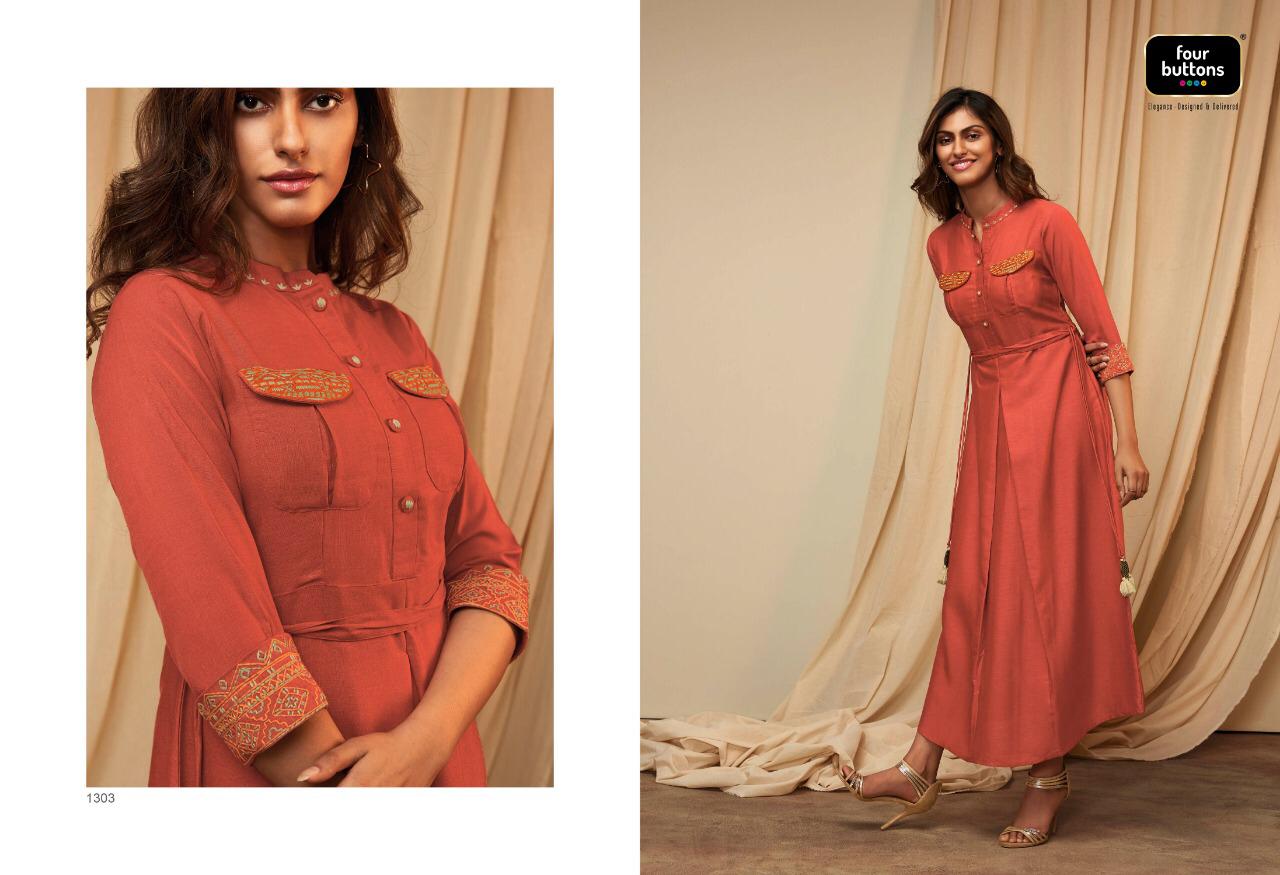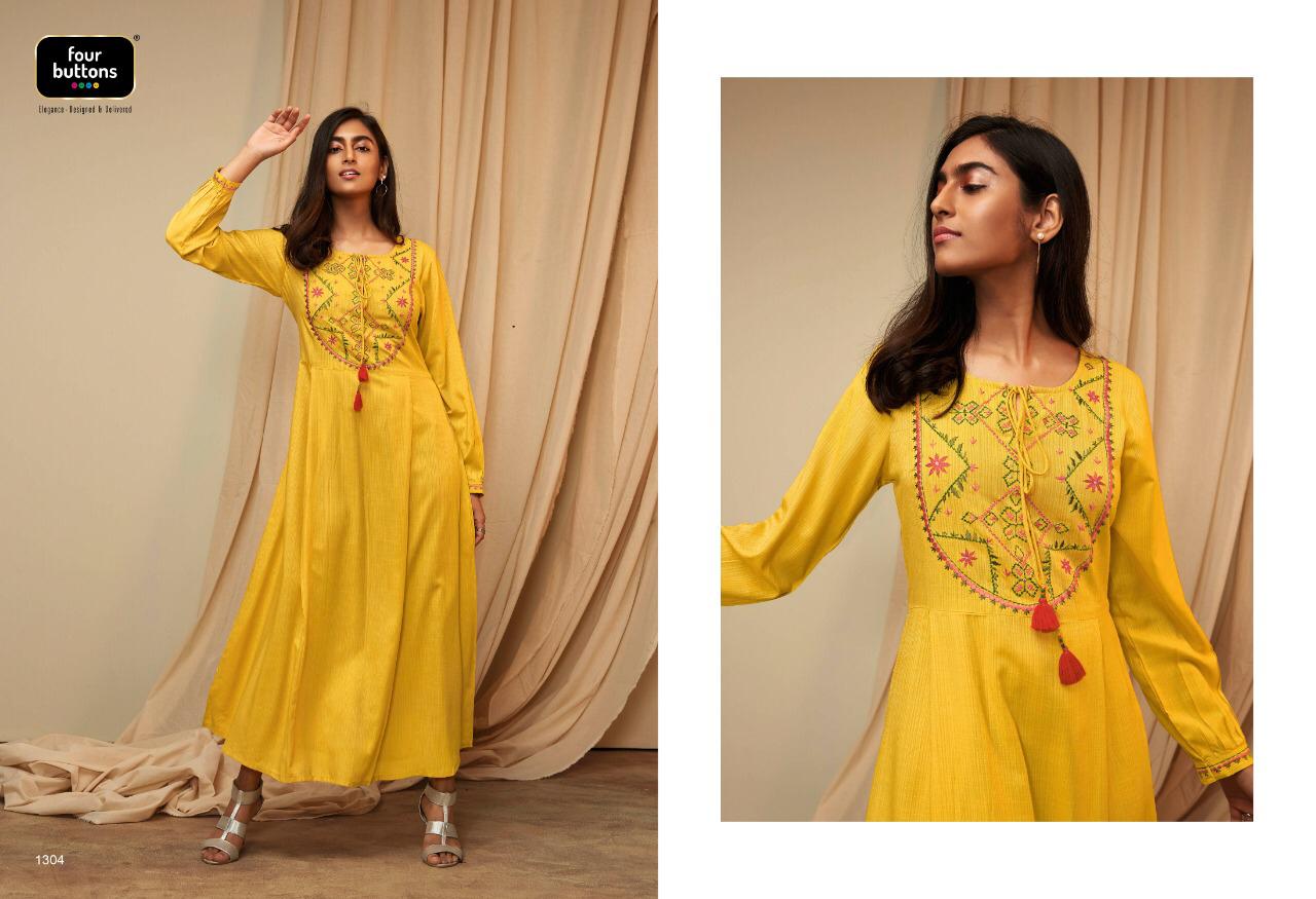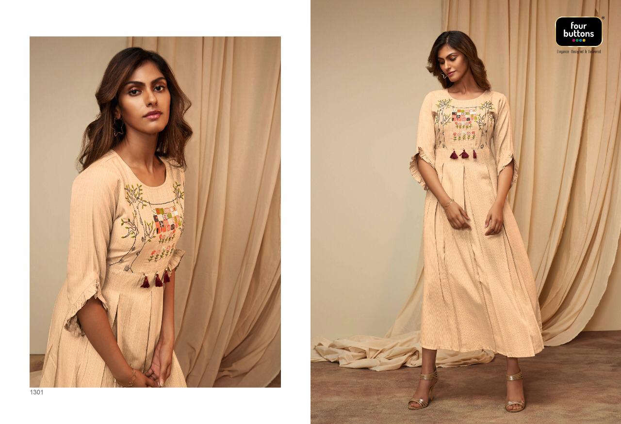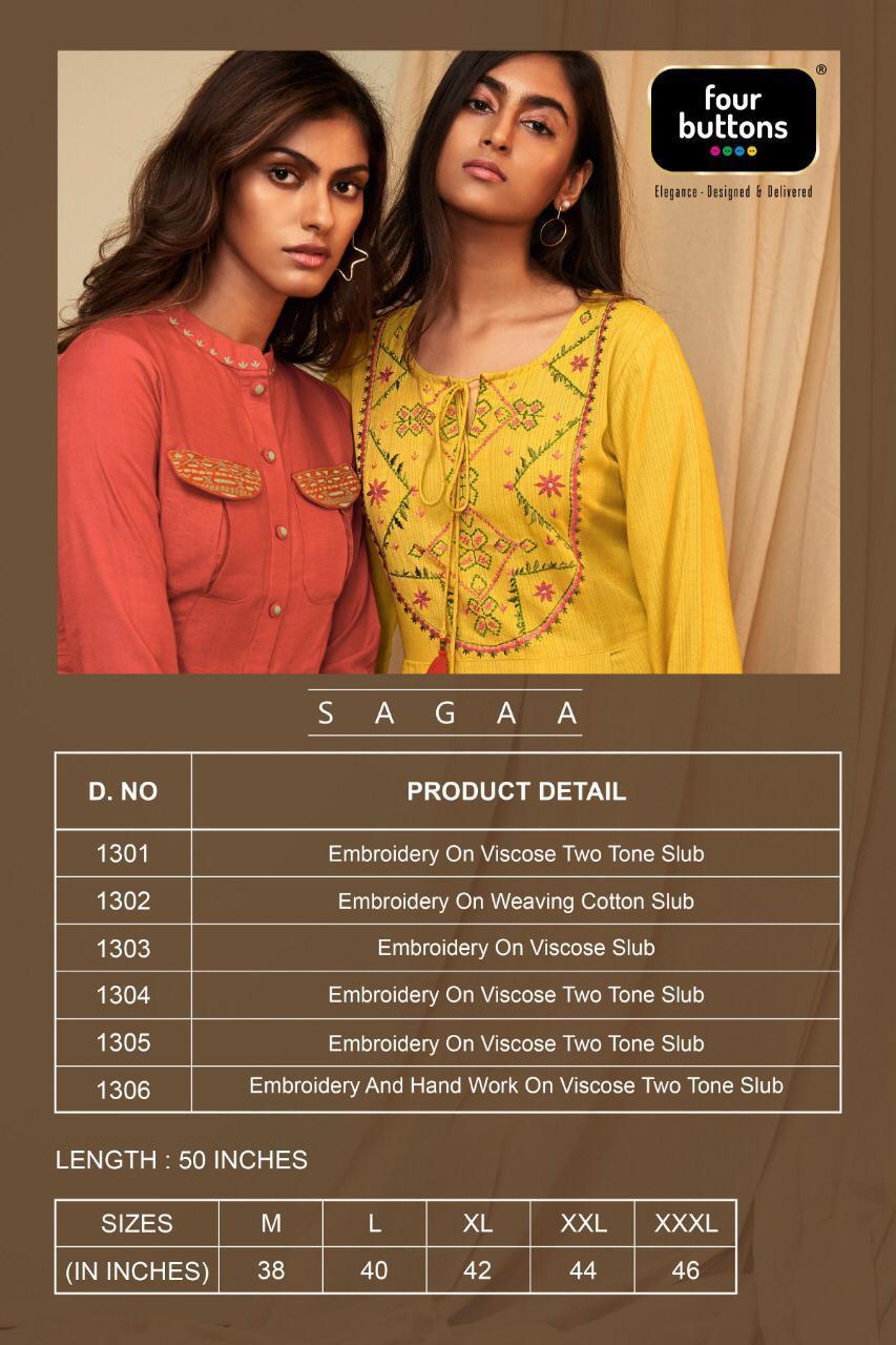 Four Buttons Launch Sagaa Viscose Embroidery Work Ankle Length Gown Kurti
