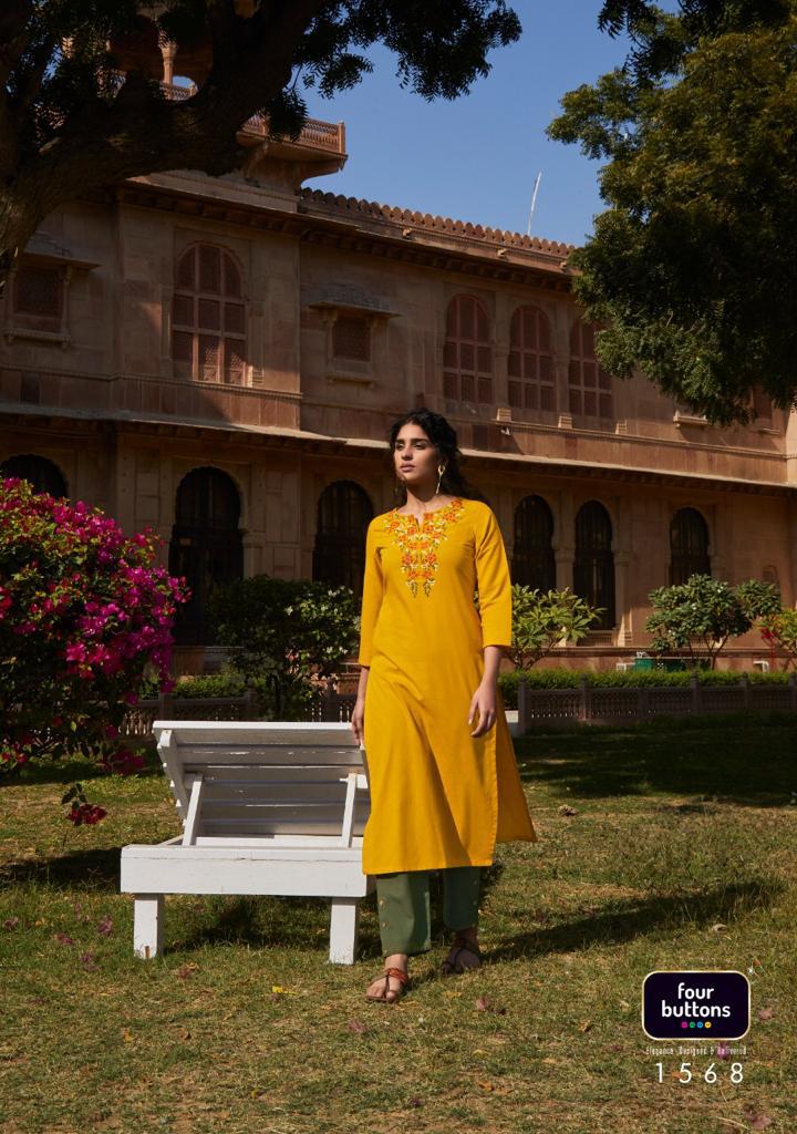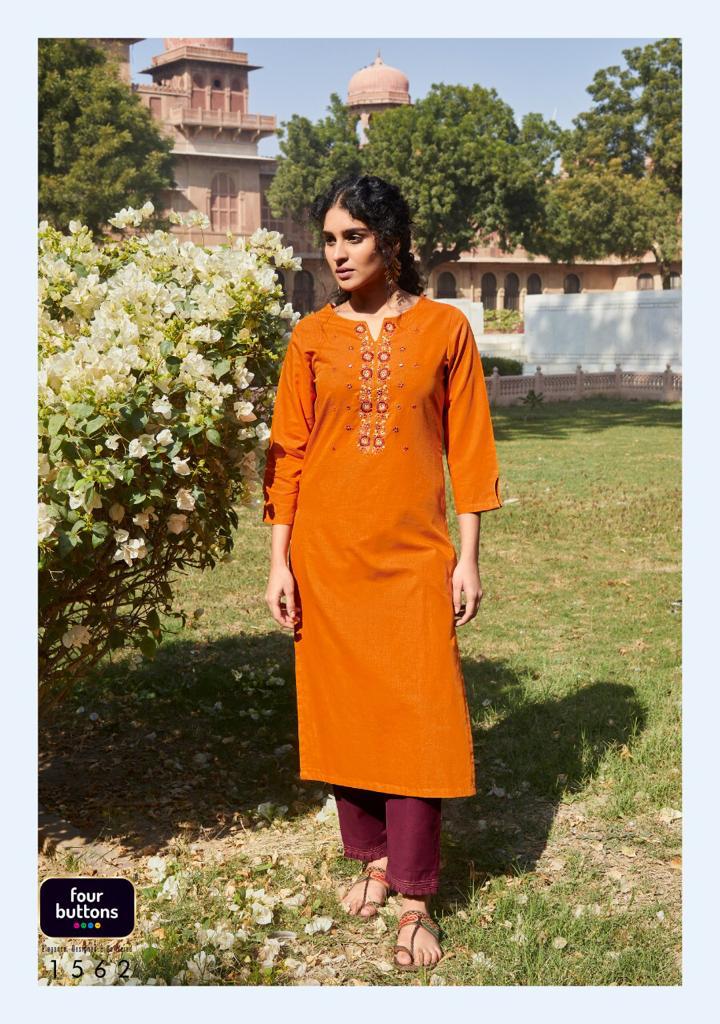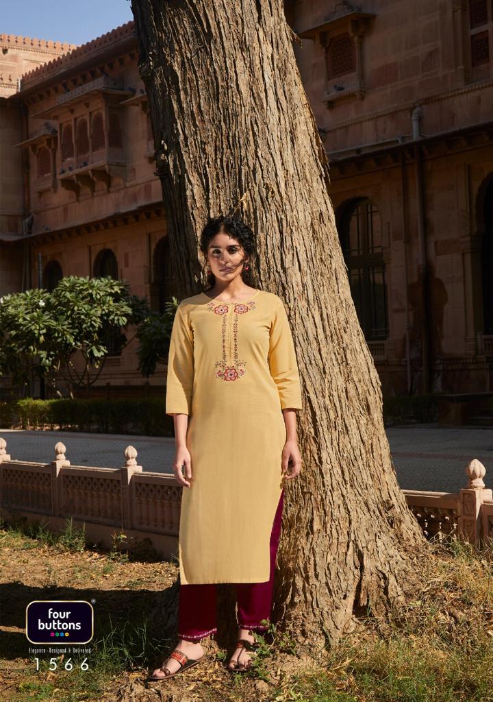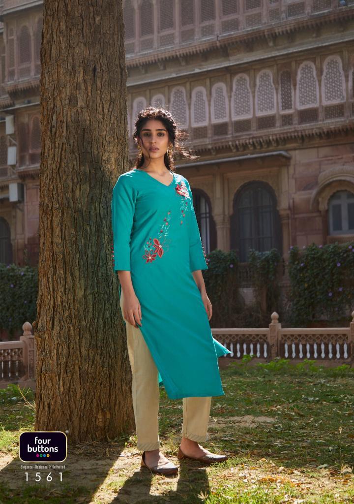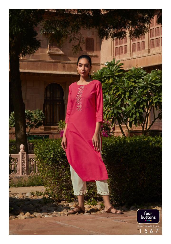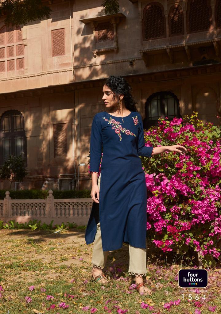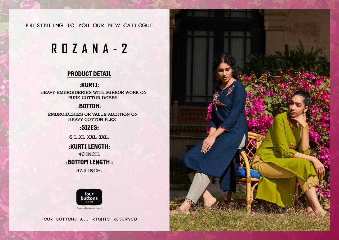 Four Buttons Rozana Vol 2 Cotton With Embroidery Top With Bottom Wear Set