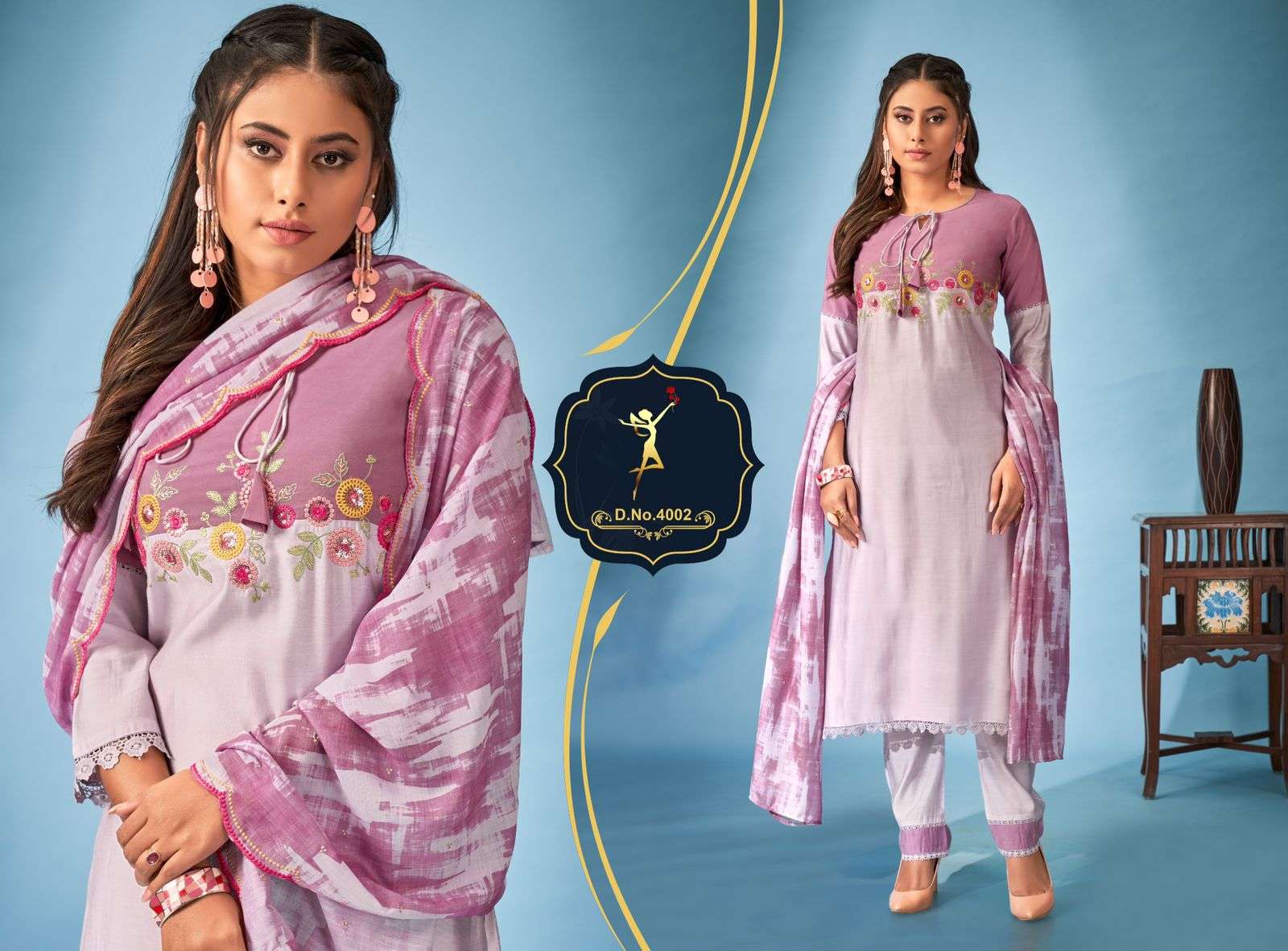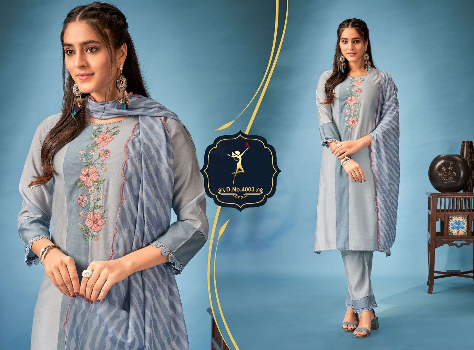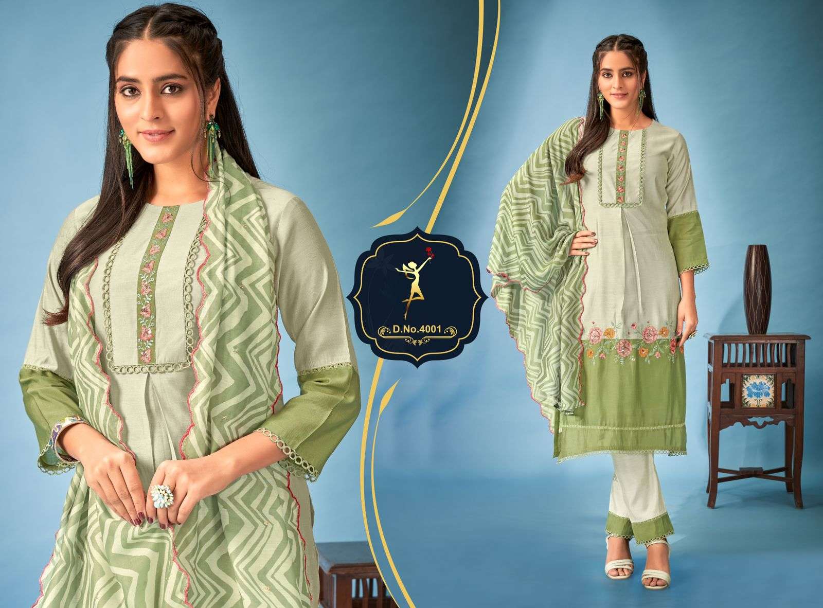 four roses pr pick and choose readymade viscose russian silk kurti with pant and dupatta
