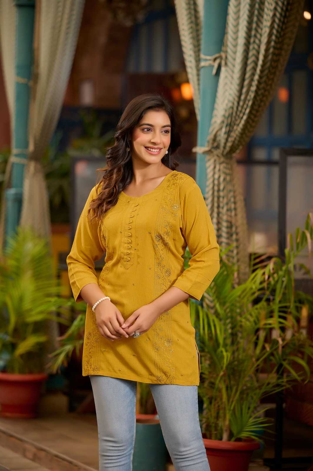 # Most Liked Catalog Dear Customers, Welcome back... Your most liked concept is ready for dispatch... Presenting... FRESH Fab. - Rayon Rinckle Des. -08 Size -M, L , XL, 2XL Rate:- 415/- |