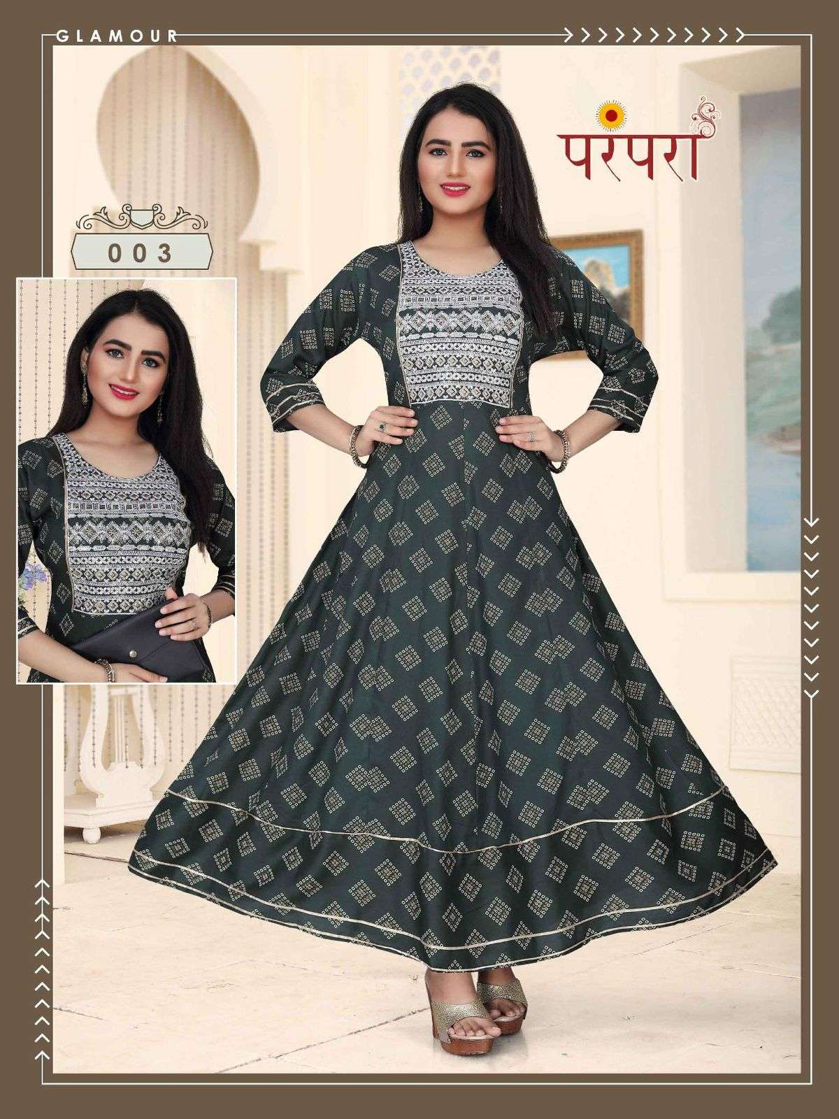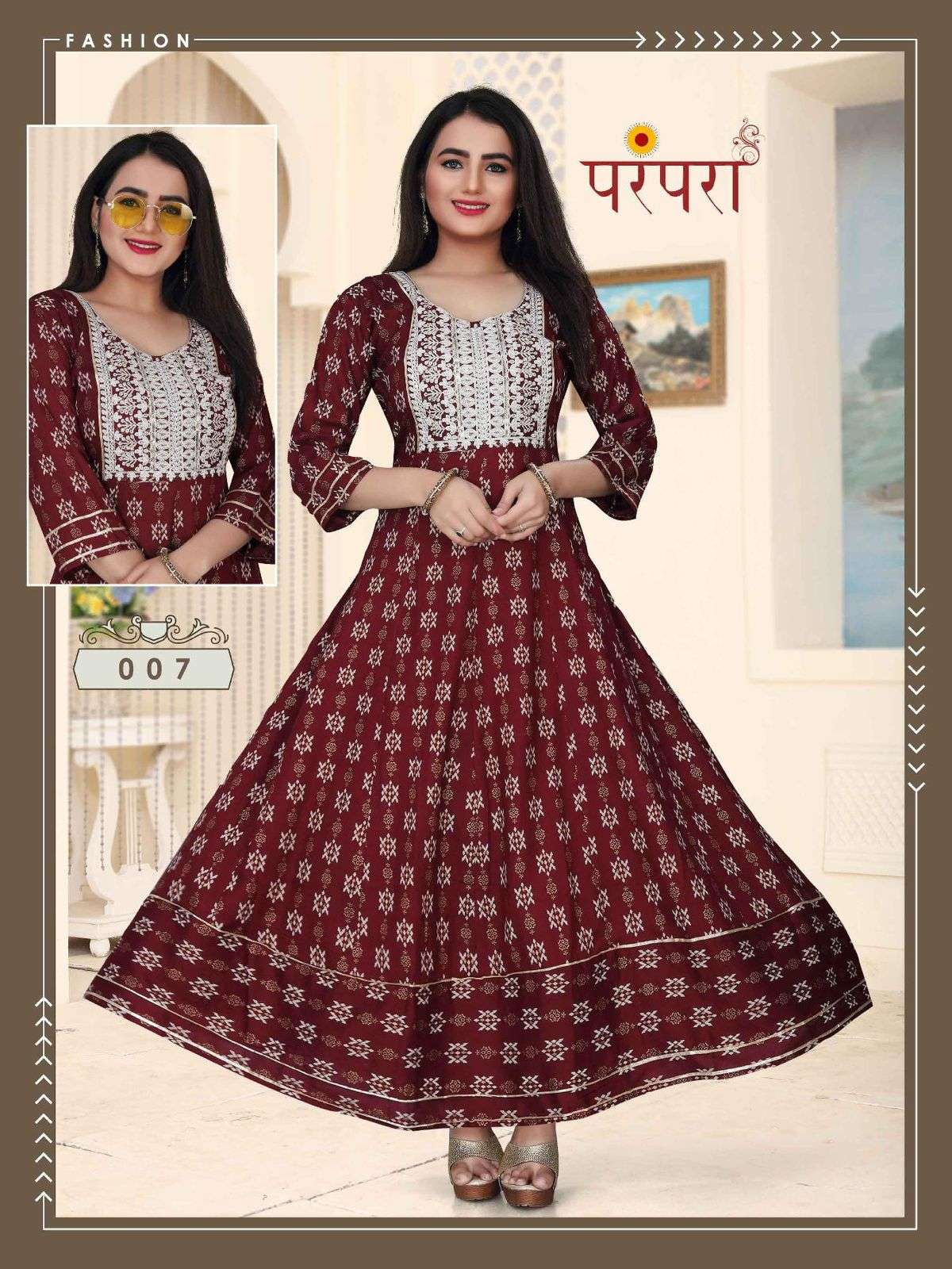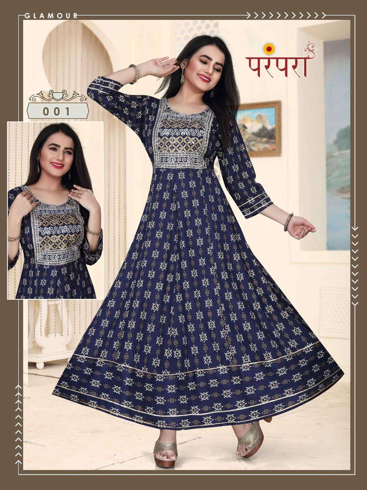 FT PARAMPARA RAYON GOLD FOIL PRINT & SEQUENCE WORK PATTERN FLAIR KURTI CATALOG WHOLESALER BEST RATE