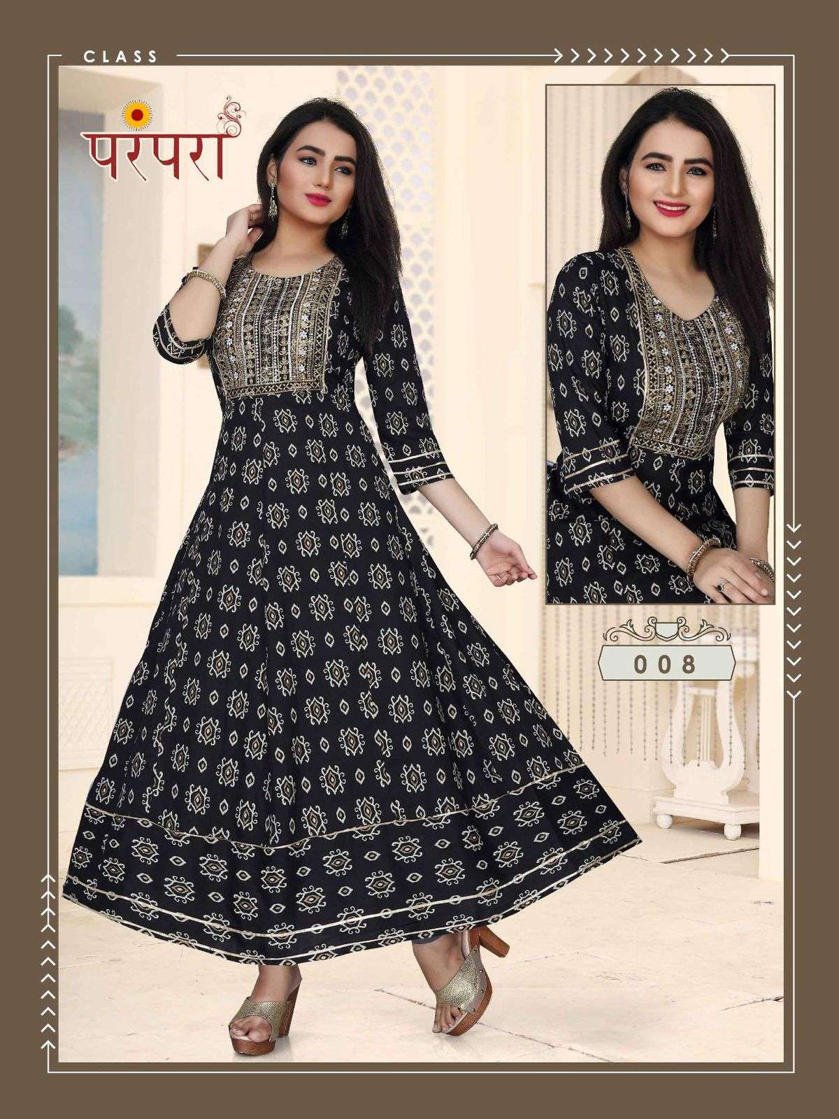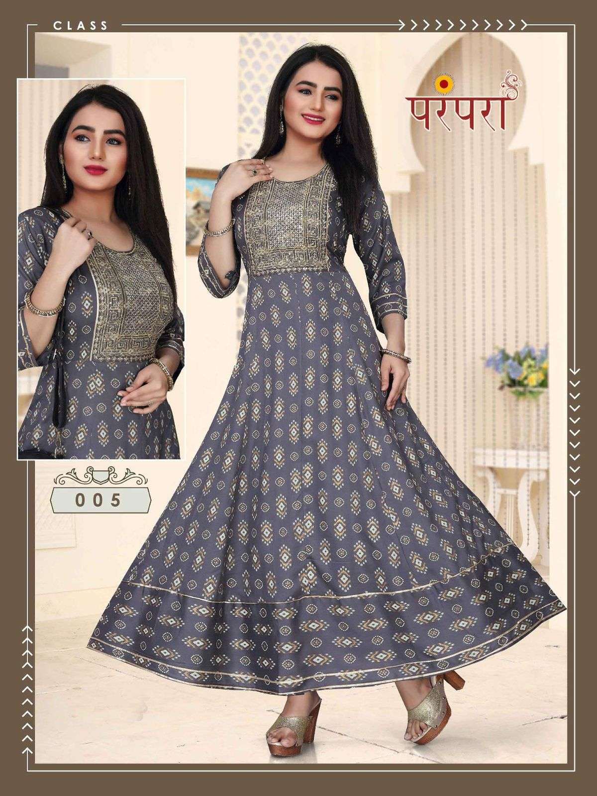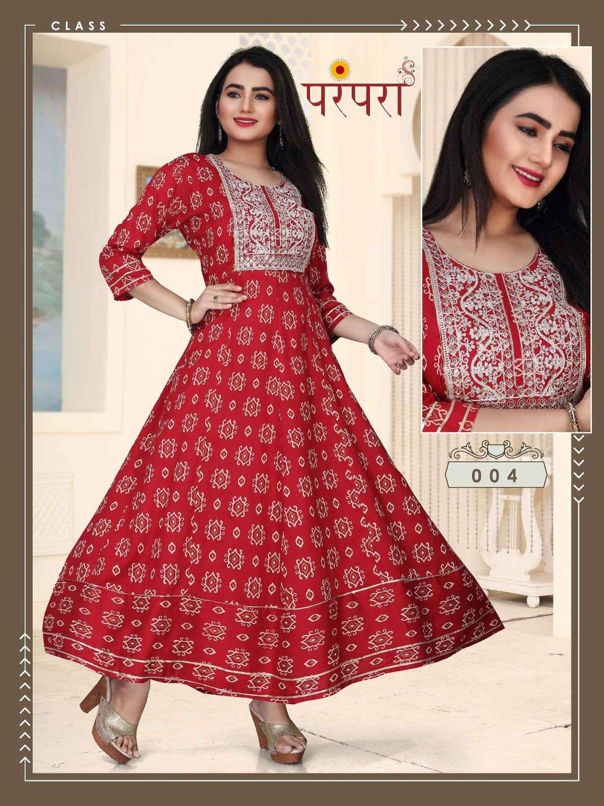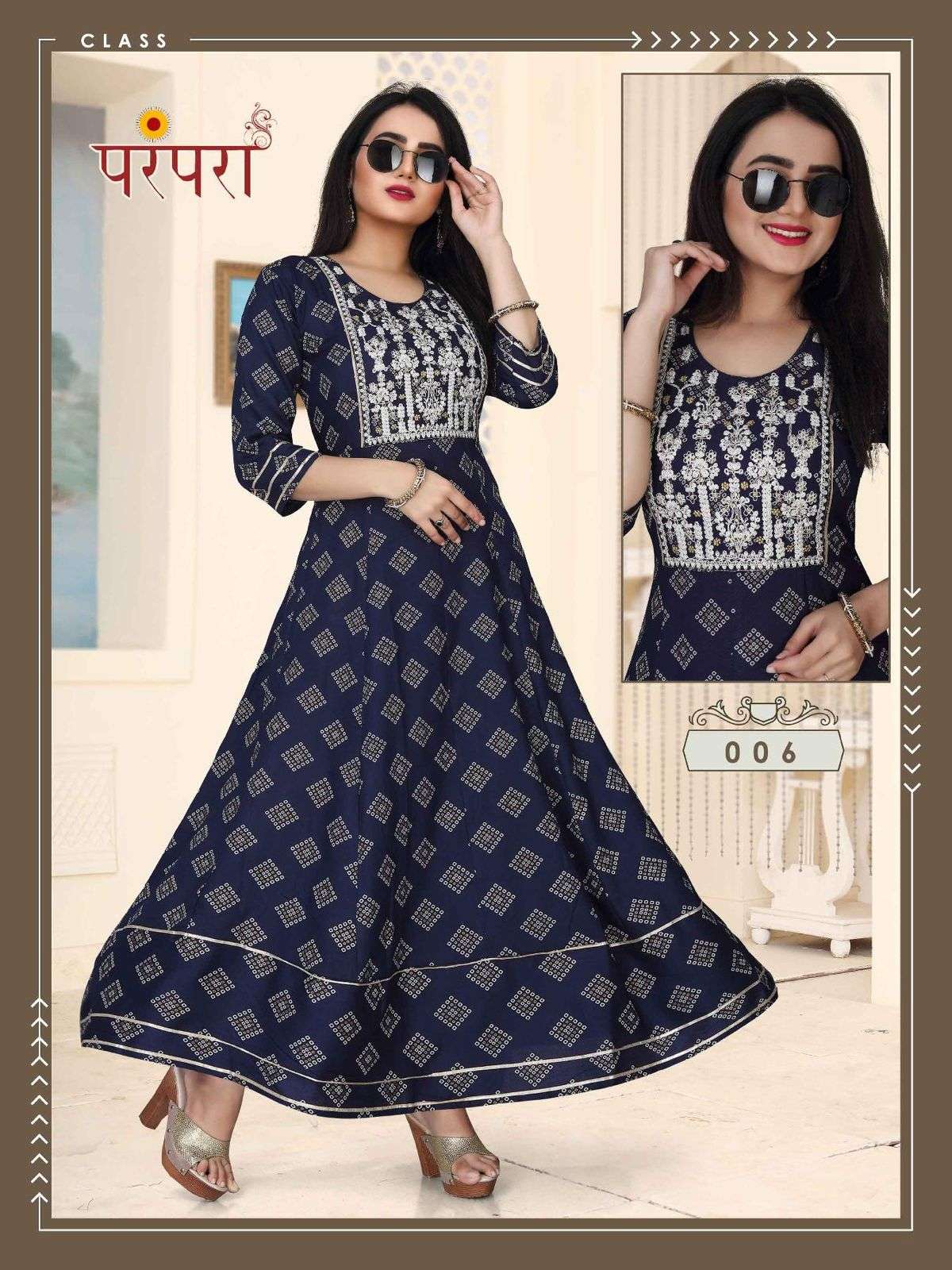 FT PARAMPARA RAYON GOLD FOIL PRINT & SEQUENCE WORK PATTERN FLAIR KURTI CATALOG WHOLESALER BEST RATE
