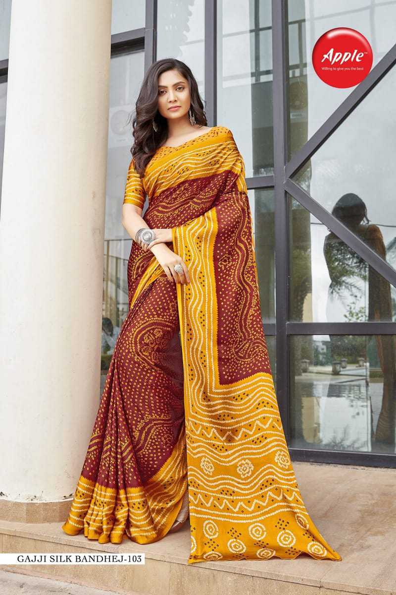 gajji silk bhandaj by apple print daily wear saree wholesaler