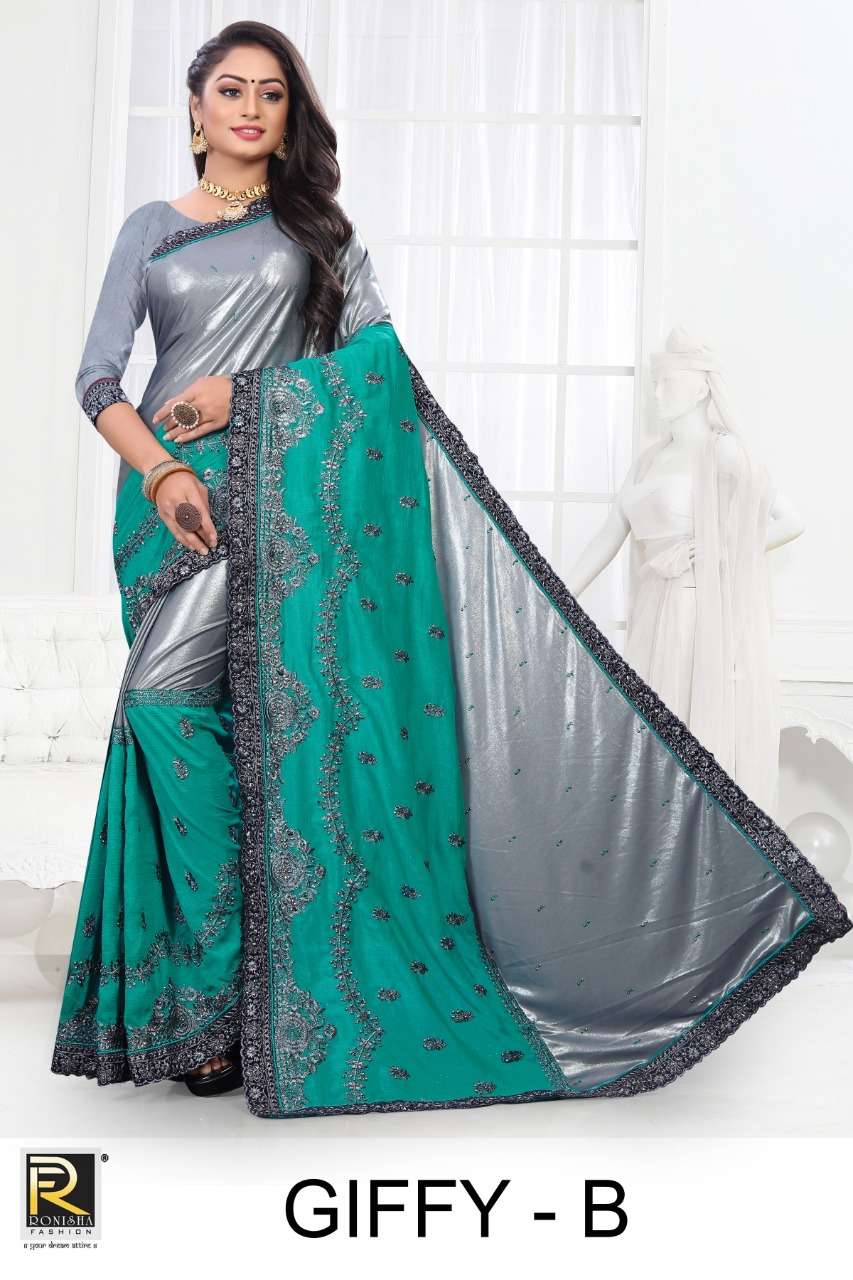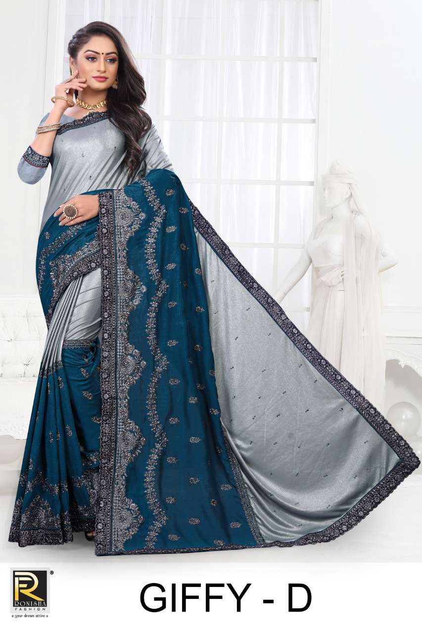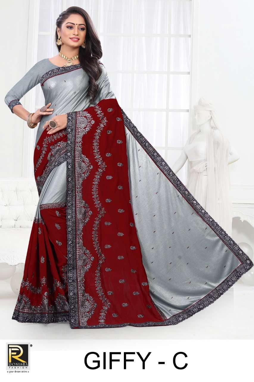 Giffy by ranjna saree embroidery warked heavy diamond work saree Collection