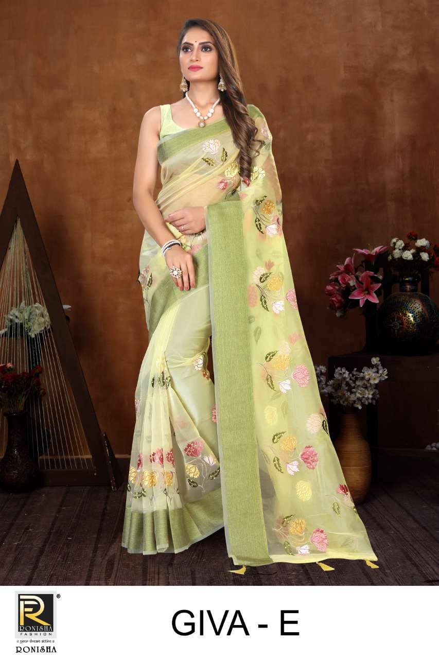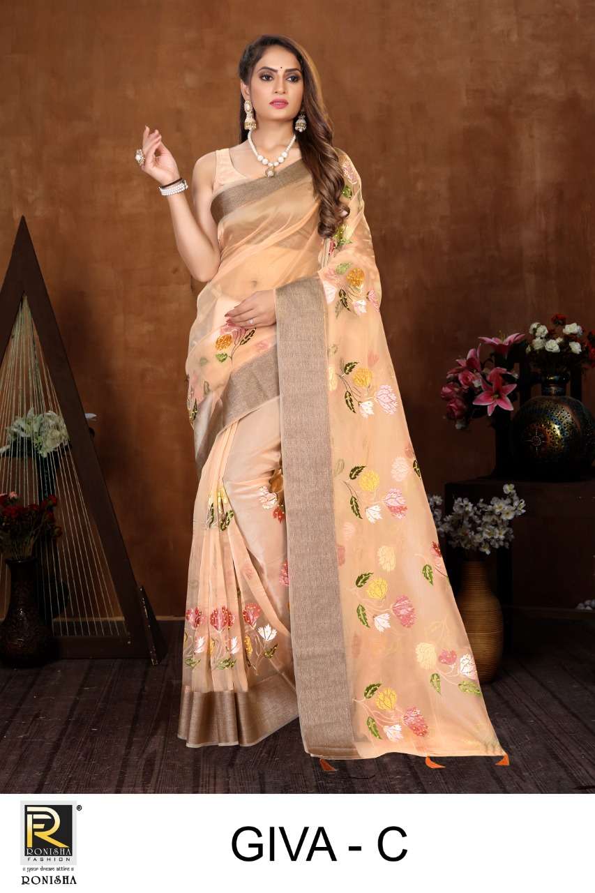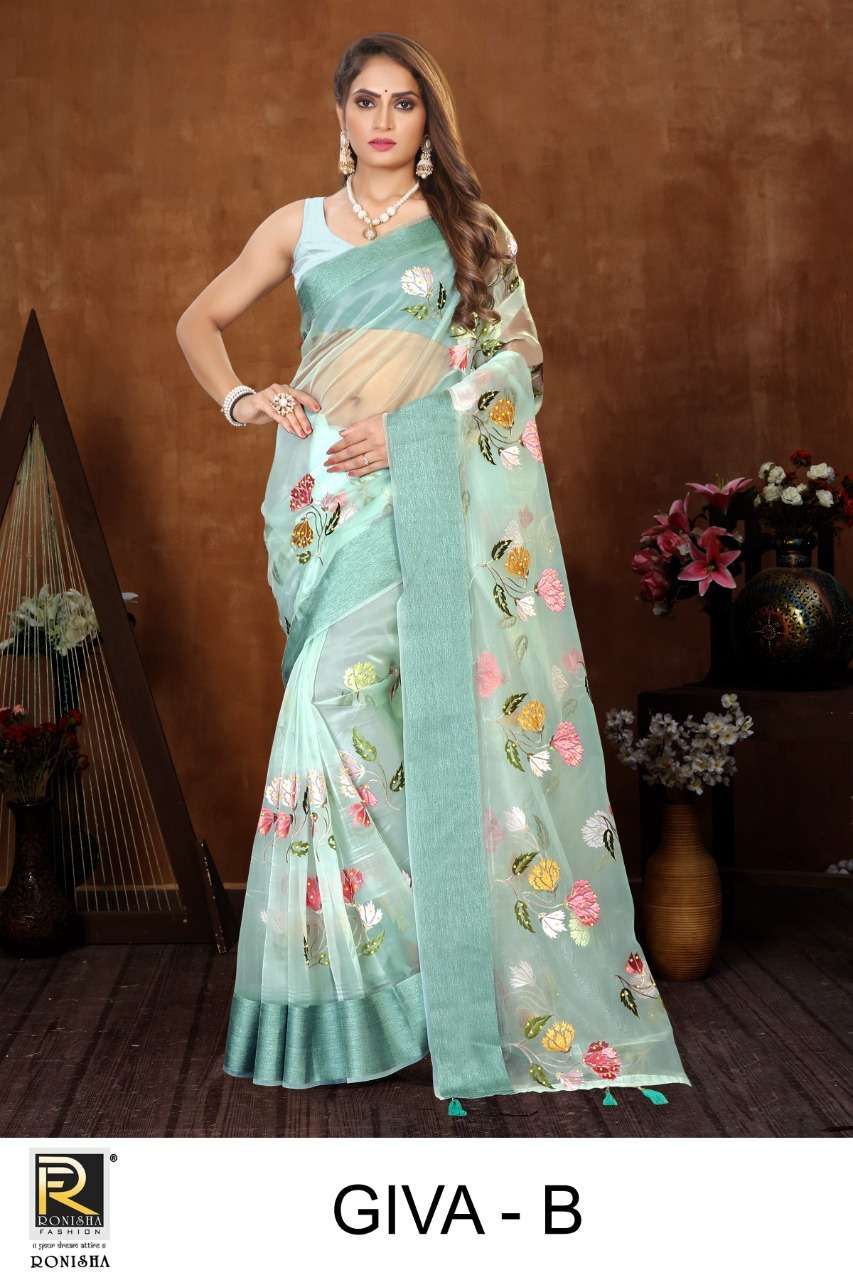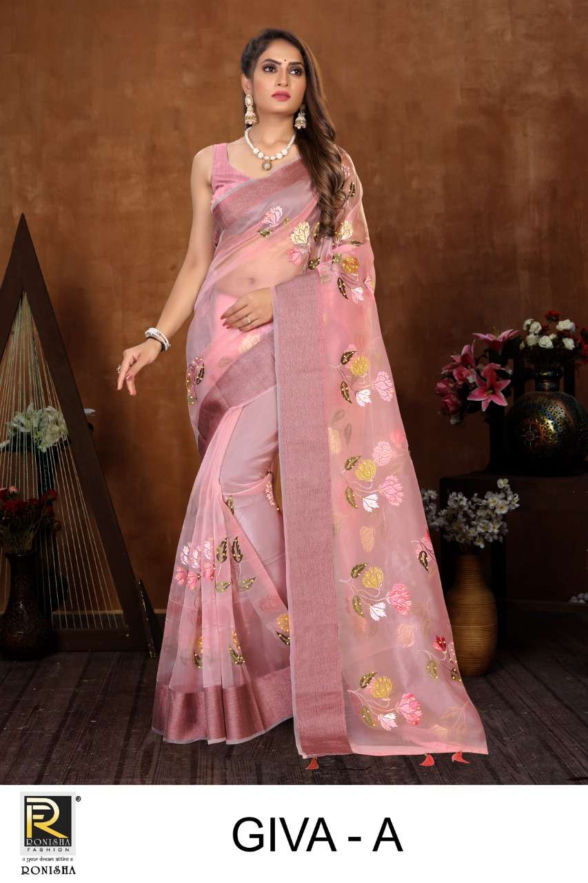 GIVA BY RANJNA SAREES ORGANZA FENCY THARED WORK PARTY WEAR SAREES COLLECTION