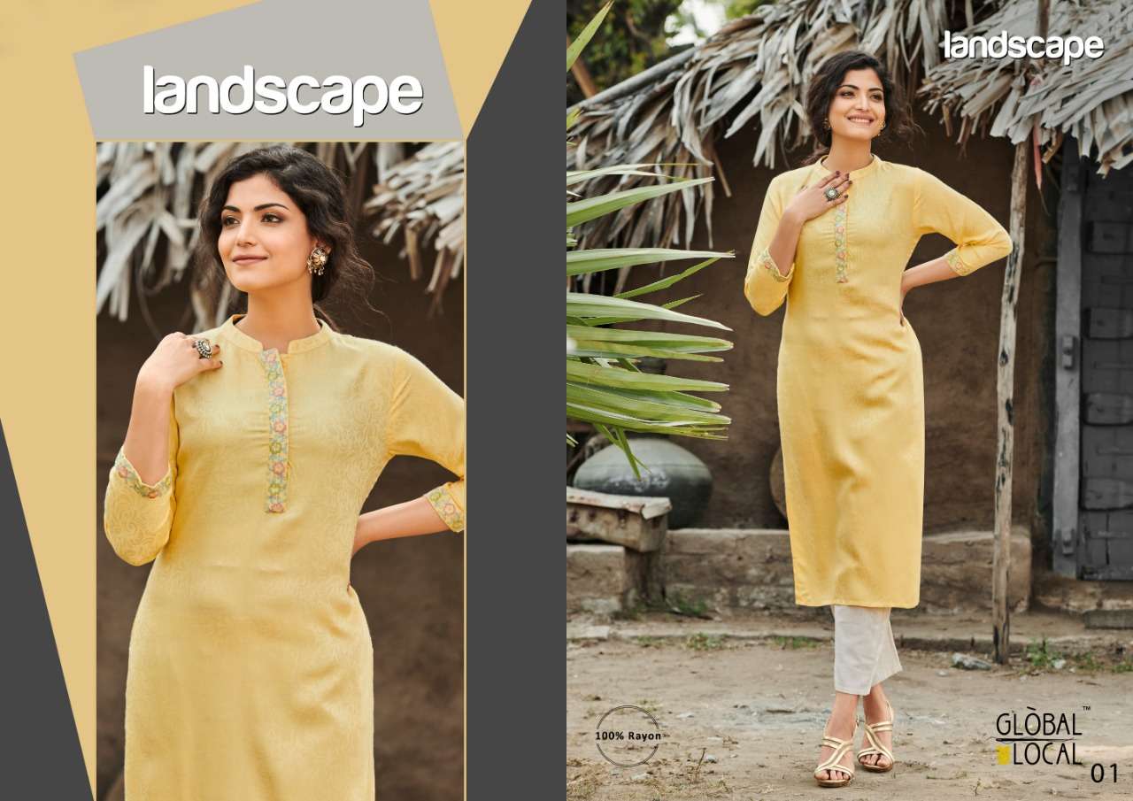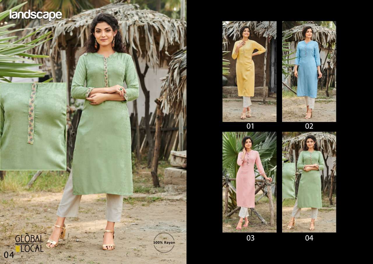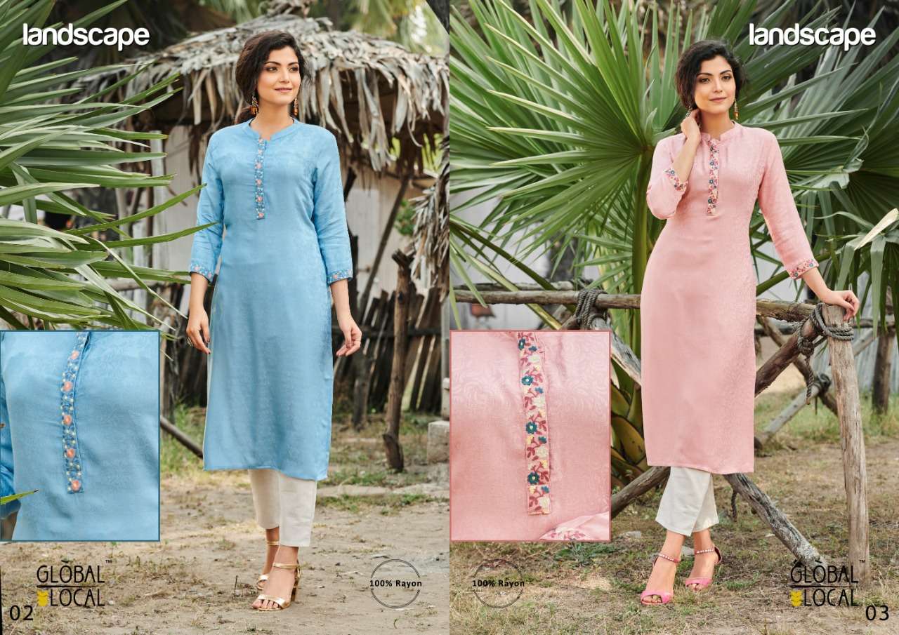 Catalog : LANDSCAPE BRAND : GLOBAL LOCAL™ TYPE : Rayon Jacquard embroidered Kurti SIZES : S to 2XL |