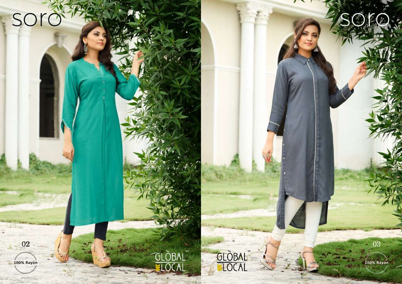 Catalog : SORO Style : Contemporary and Stylish Plain Kurtis BRAND : GLOBAL LOCAL™ SIZES : S to 3XL |