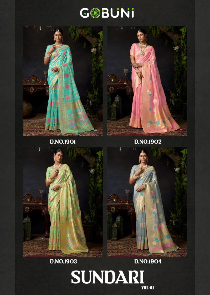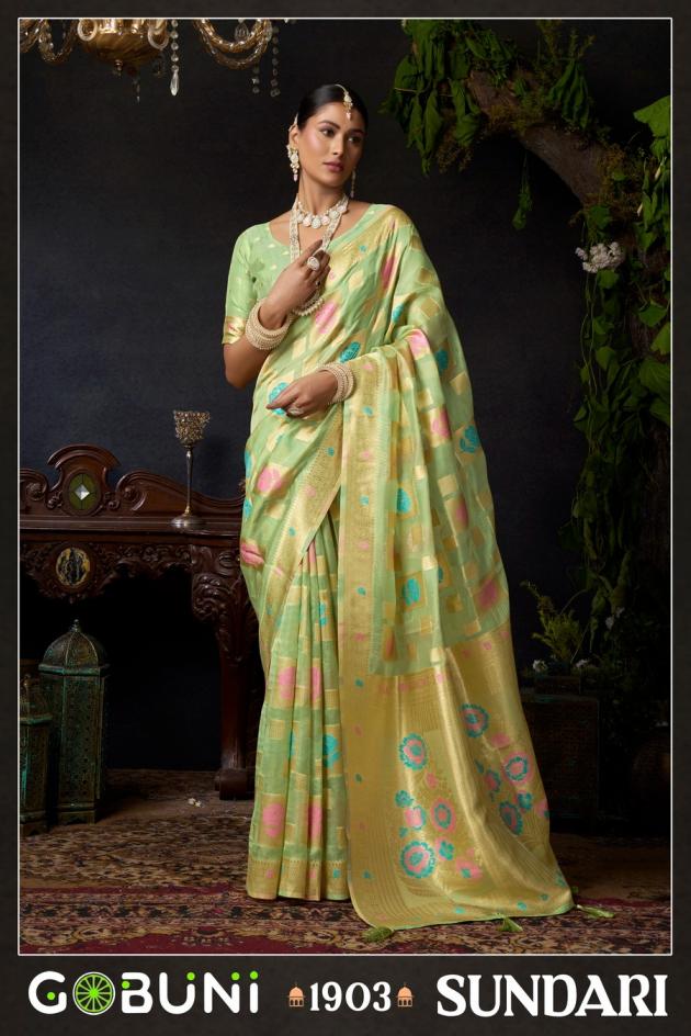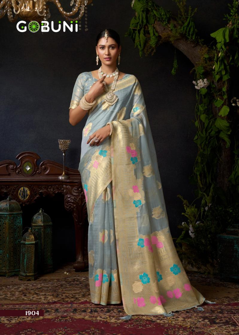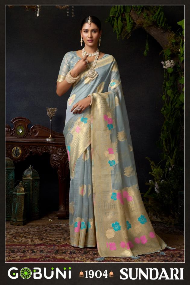 New Catalogue Launching by Gobuni 🥳 ✨ Elegance with a Touch of Tradition Brand - Gobuni👑 Catalogue Name - Sundari Vol 1 Series - 1901 To 1904 Saree Fabric - Organza Khadi with Zhallar Cut - 6.30 mtr with Blouse Rate - 1150/- + 5% Gst 04 Pc Set Gobuni's Saree 'Feel the Luxury, Wear the Legacy.'😍 |