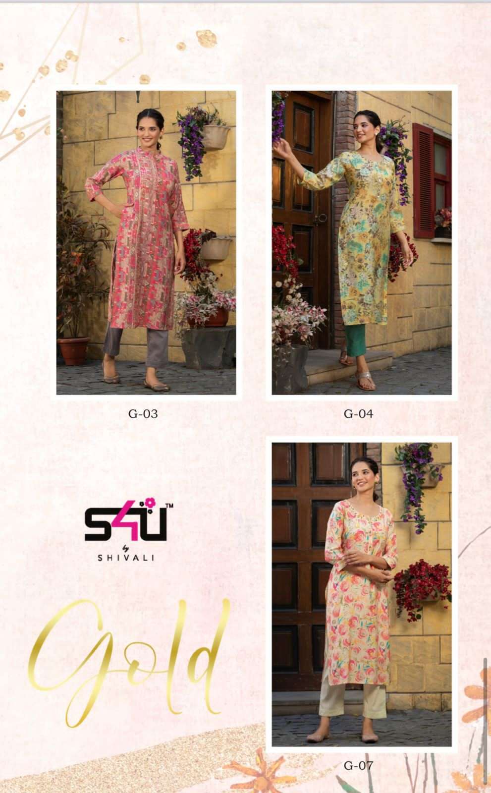gold vol 4 by s4u shivali summer wear printed straight kurtis