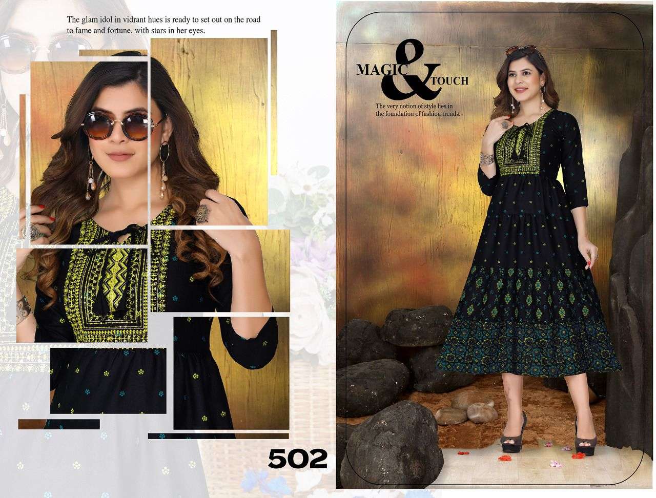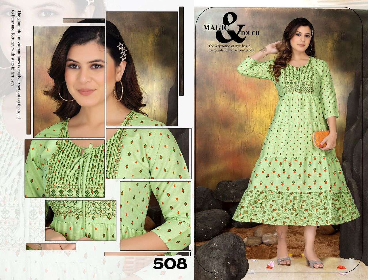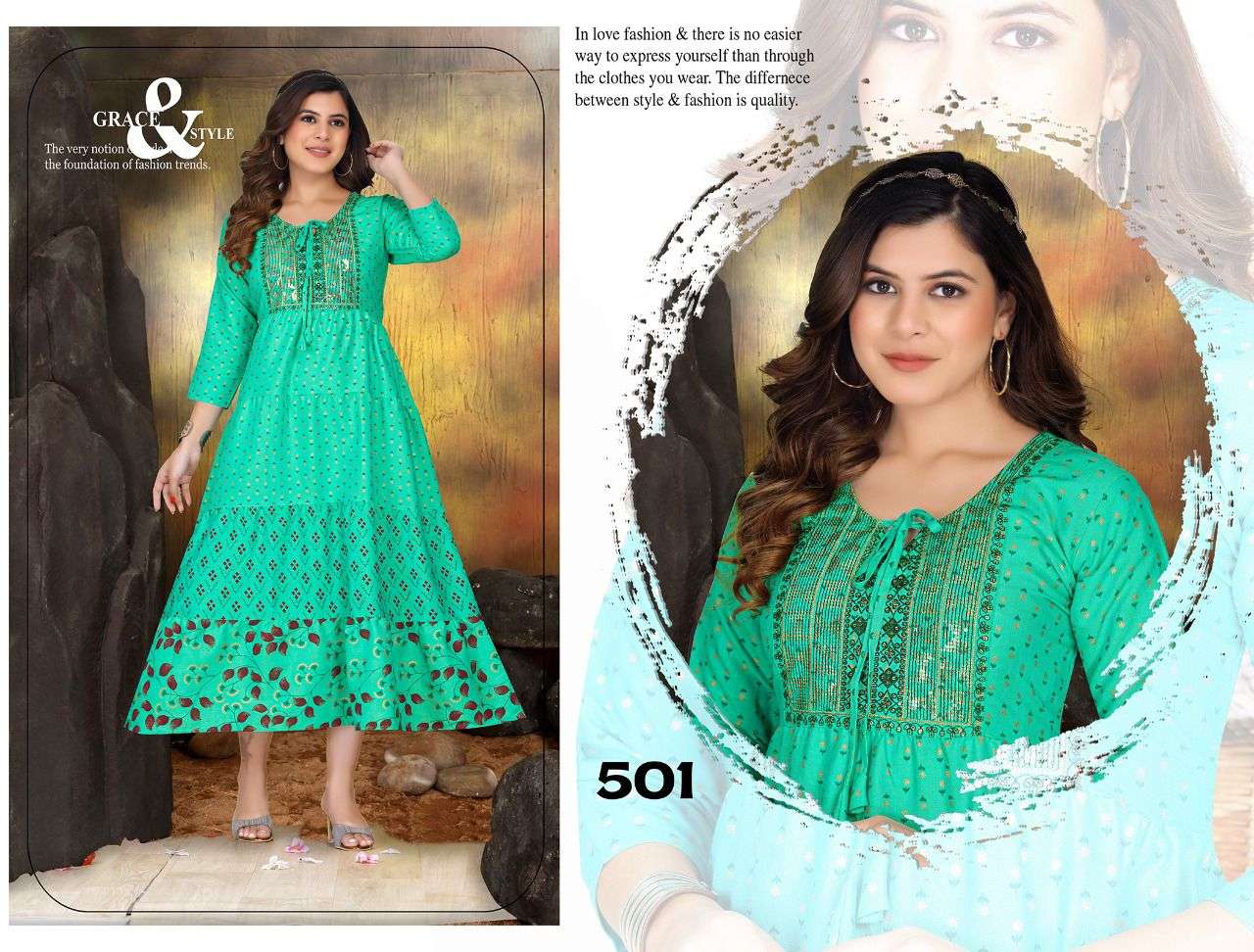 GOLDEN SUNFLOWER TWO TONE RAYON 14KG FOIL PRINT KURTI CATALOG WHOLESLAER BEST RATE