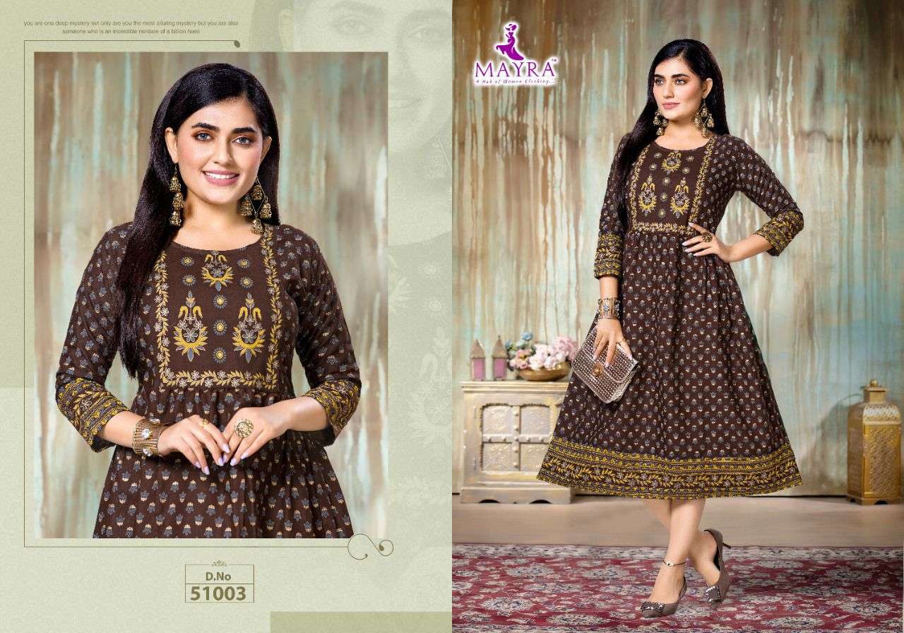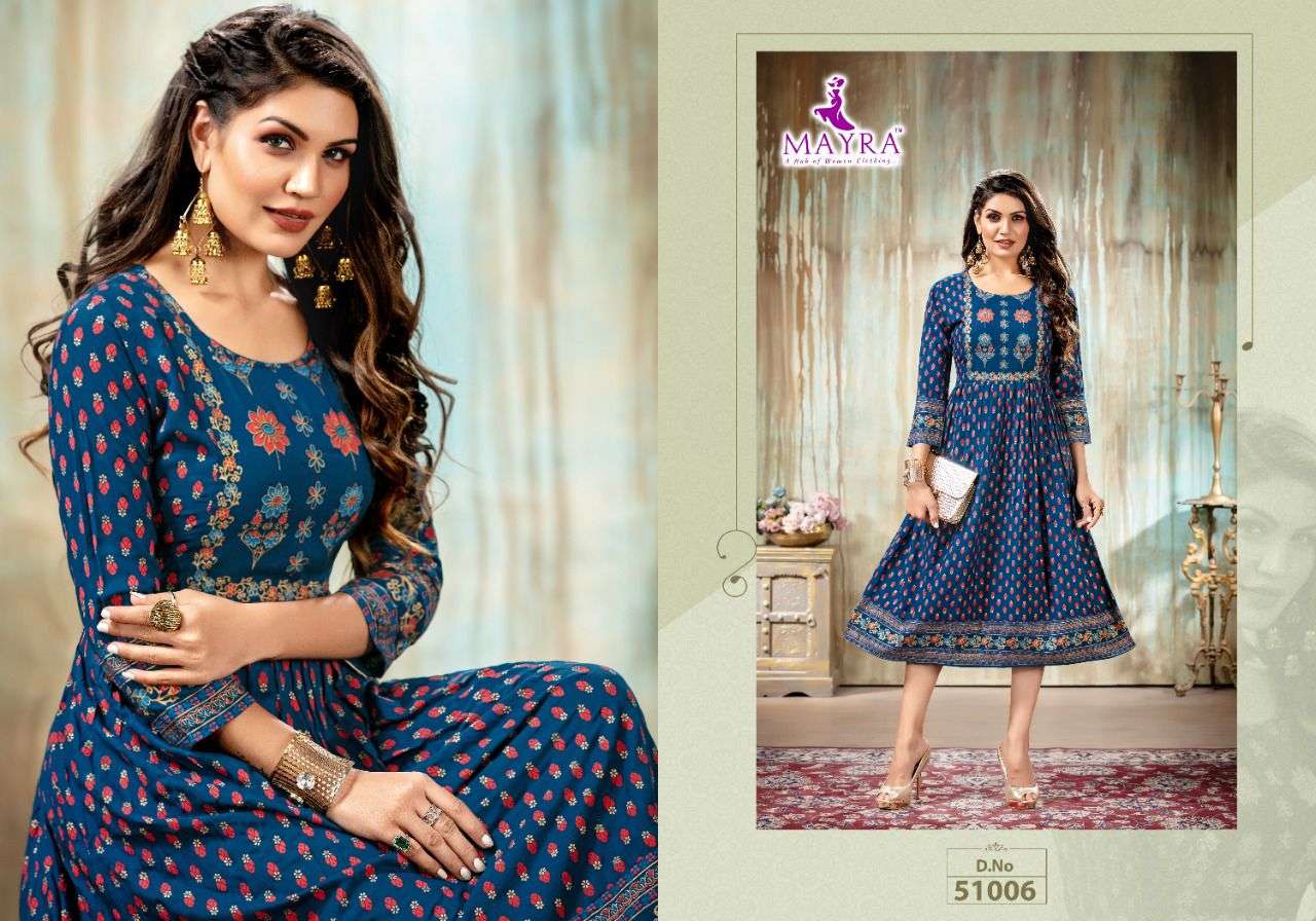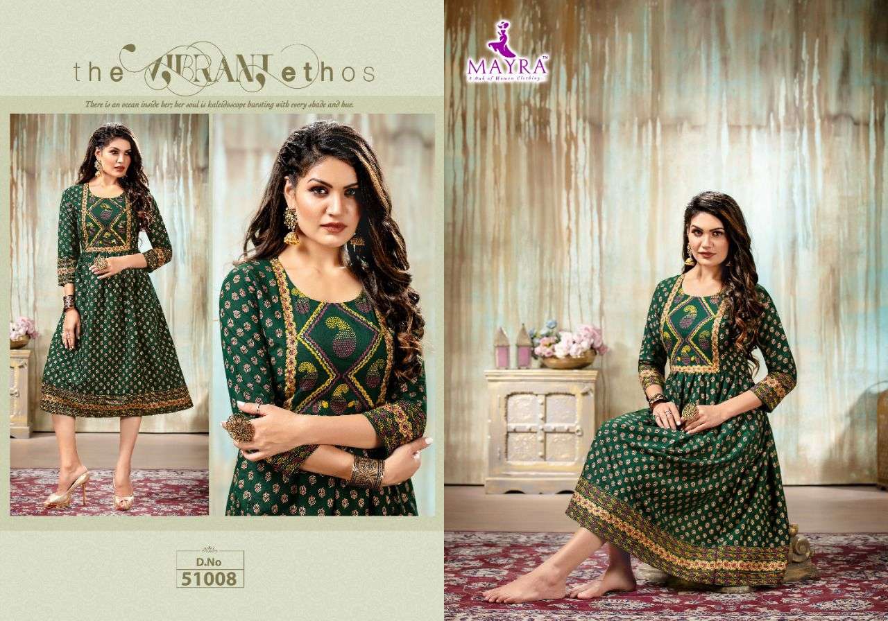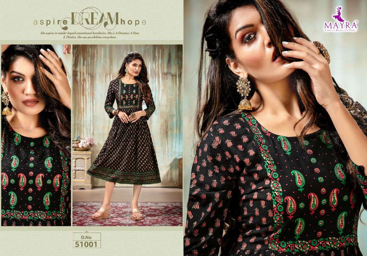 GOLDYY BY MAYRA HEAVY RAYON SLUB WITH GOLD FOIL PRINT KURTI CATALOG COLLECTION WHOLESALER BEST RATE IN SURAT