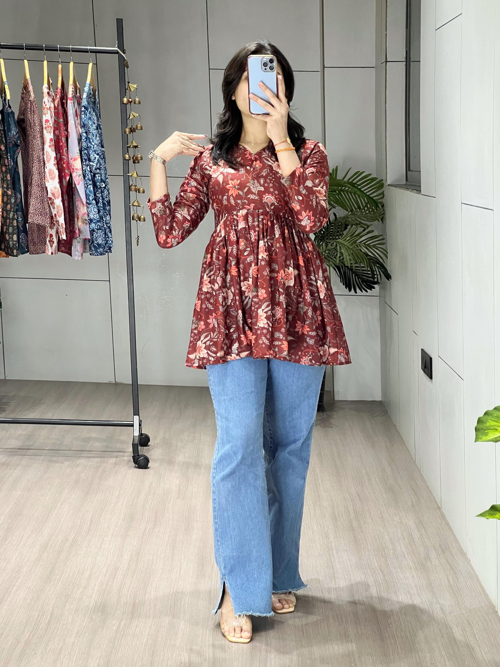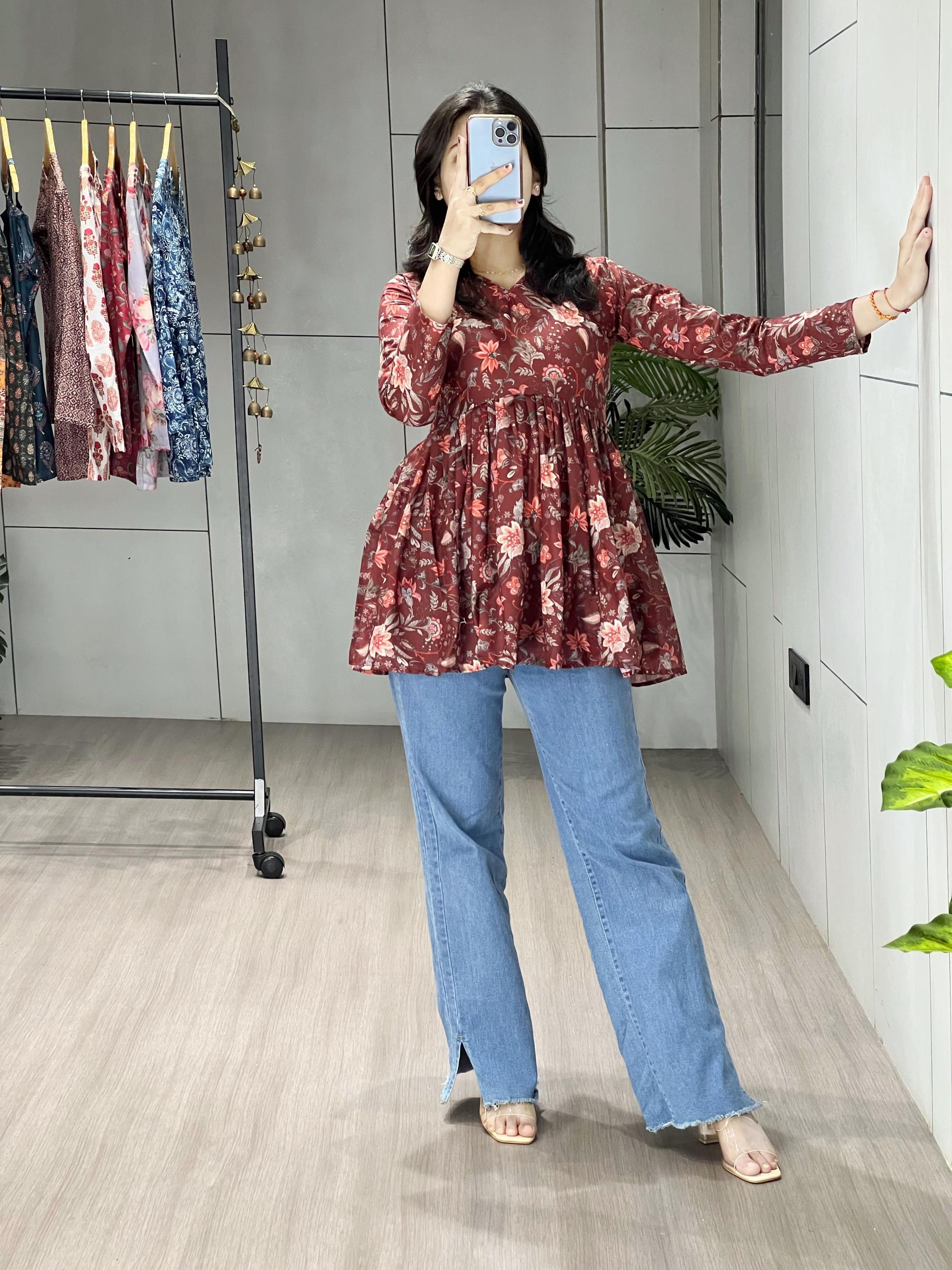grtn5003 readymade stylish cambric cotton floral printed short kurti