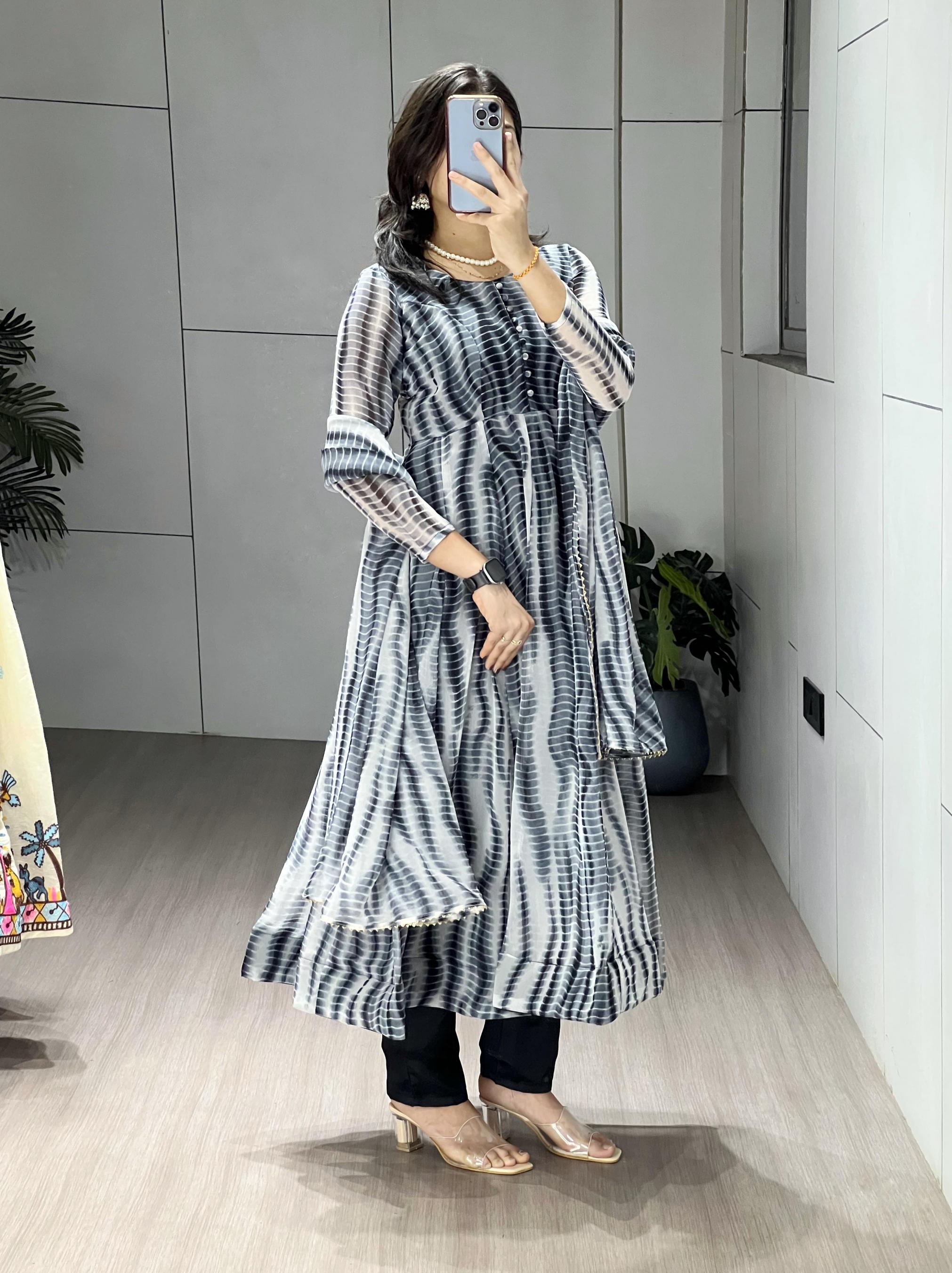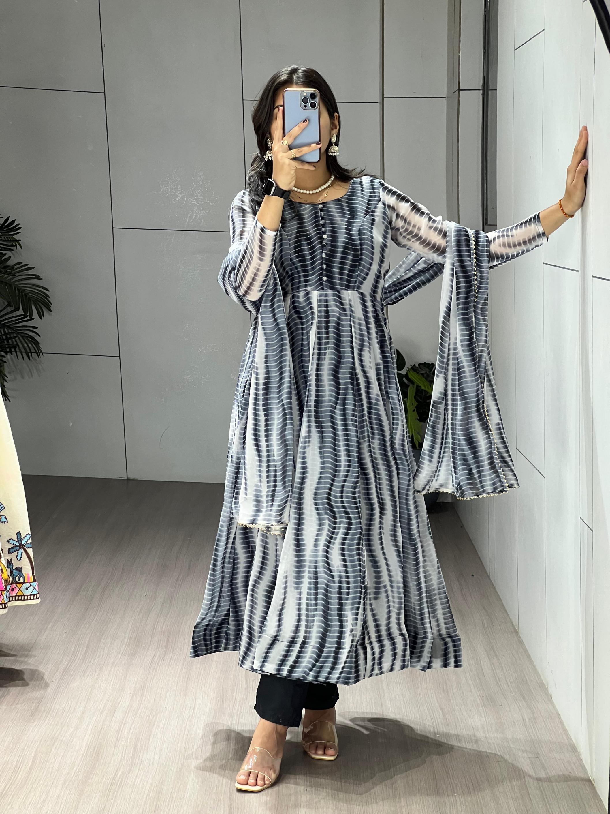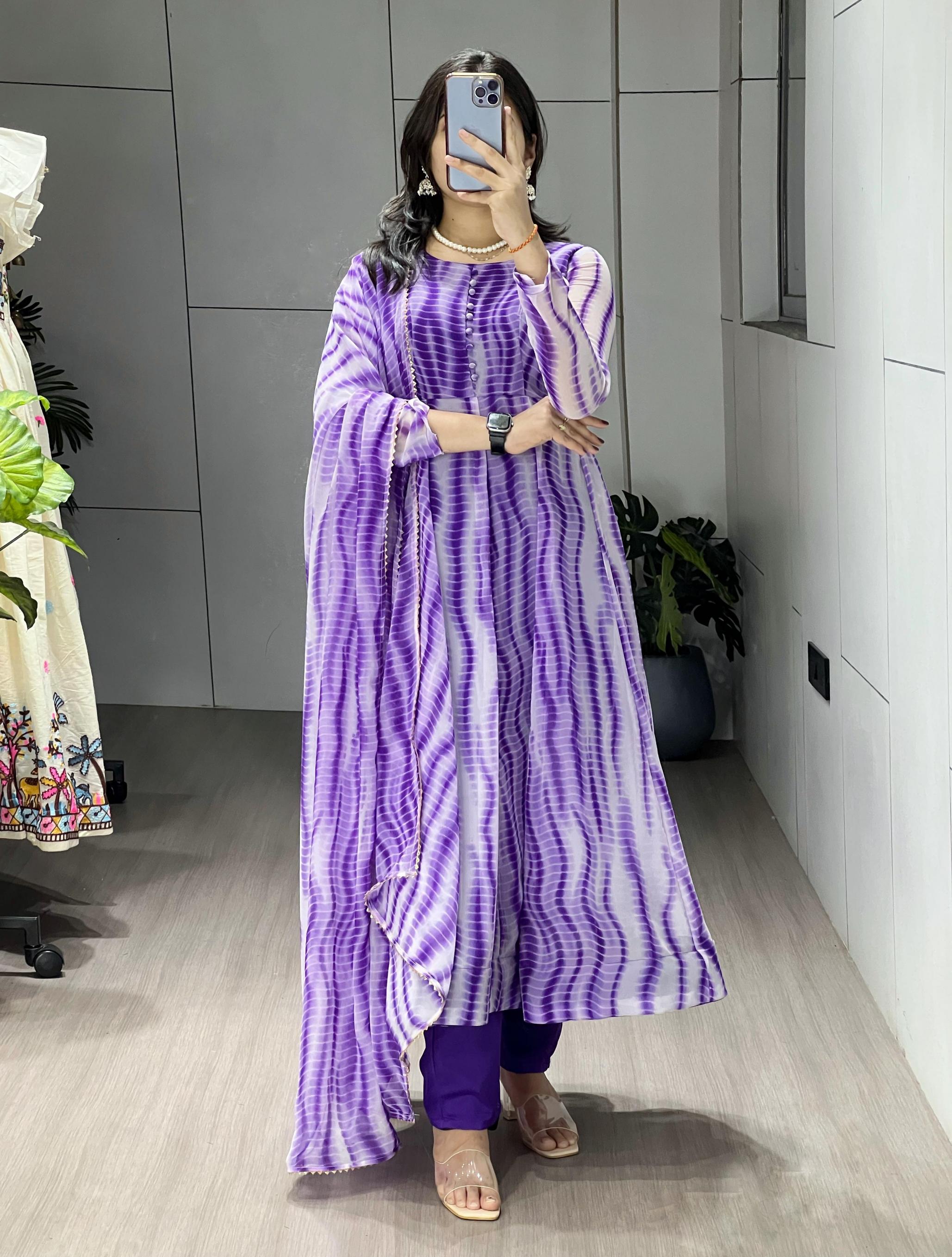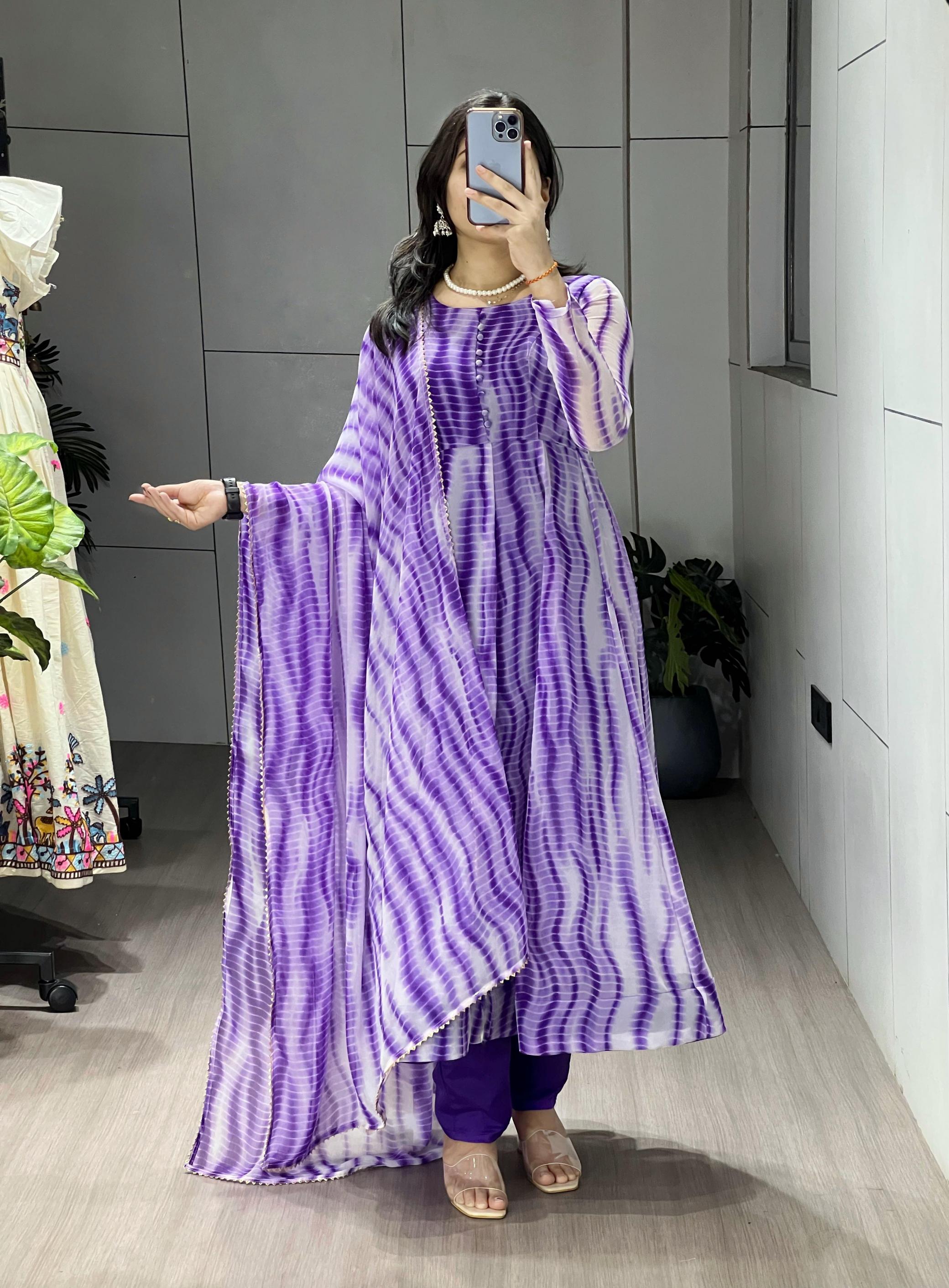 grtn8232 fully stitch unique weightless leheriya 3pcs dress