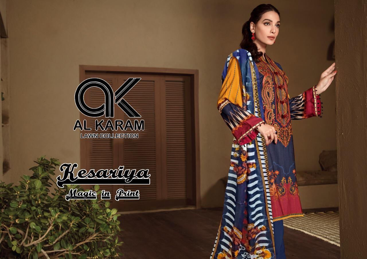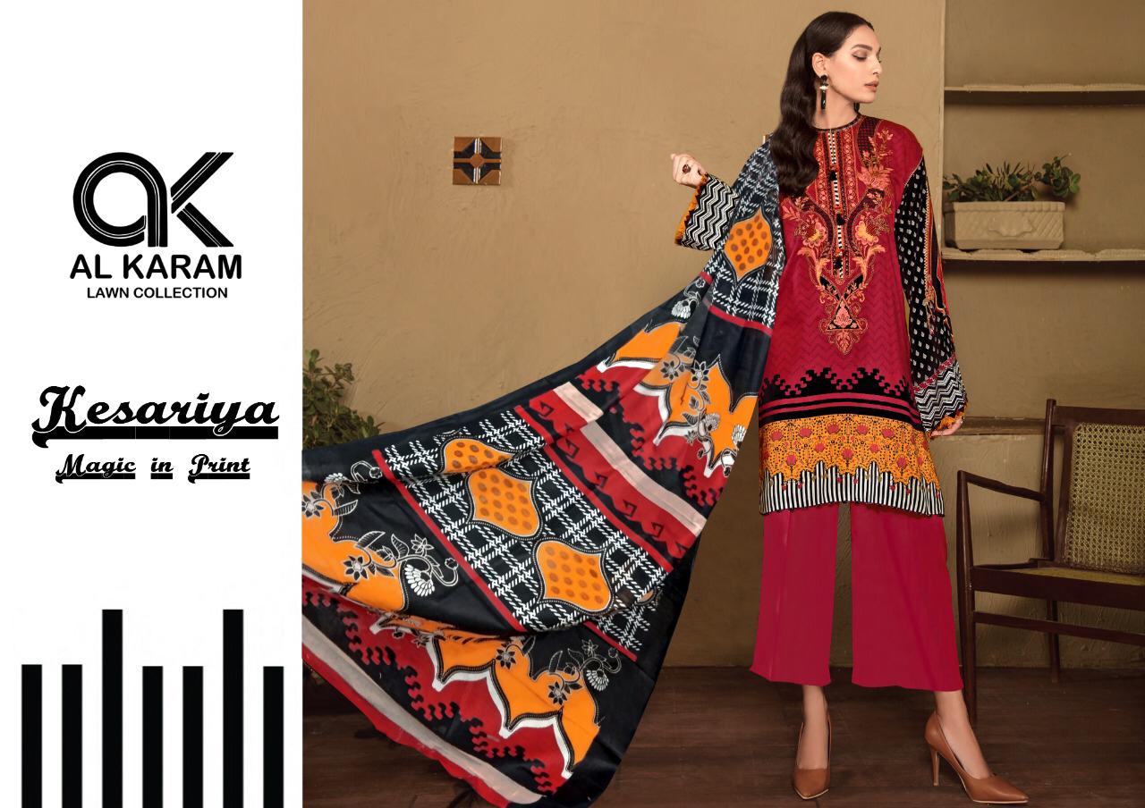 Gul Ahmed Al Karam Vol 1 Lawn Kesariya Printed Pakistani Dress Materials