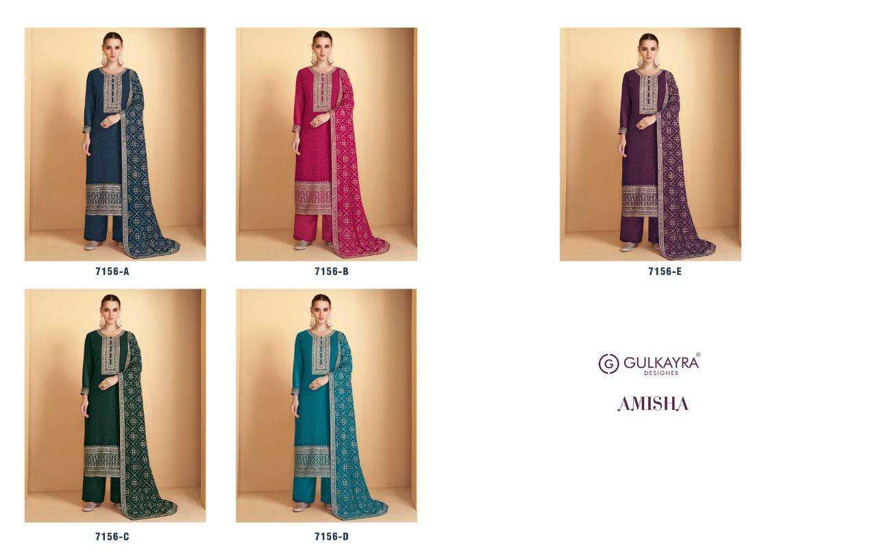GULKAYRA DESIGNER * AMISHA(5 PCS)* FABRIC DETAILS TOP: -HEAVY EMBROIDERED GEORGETTE WITH SWAROVSKI WORK Bottom & Inner: - DULL SANTOON *DUPTTA :- HEAVY EMBROIDERY GEORGETTE WITH FOUR SIDE EMBROIDERY BORDER * PRICE -1795/- per pcs Dispatching in 3-4 Days … |