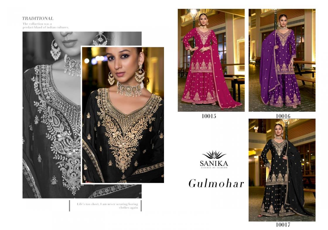 gulmohar by sanika fashion traditional chinon silk fully stitch plazzo style dress
