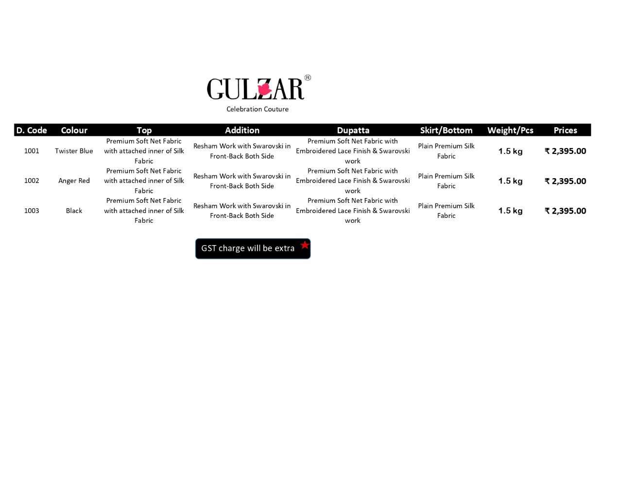 gulzar 1001-1003 series exclusive long party wear salwar kameez