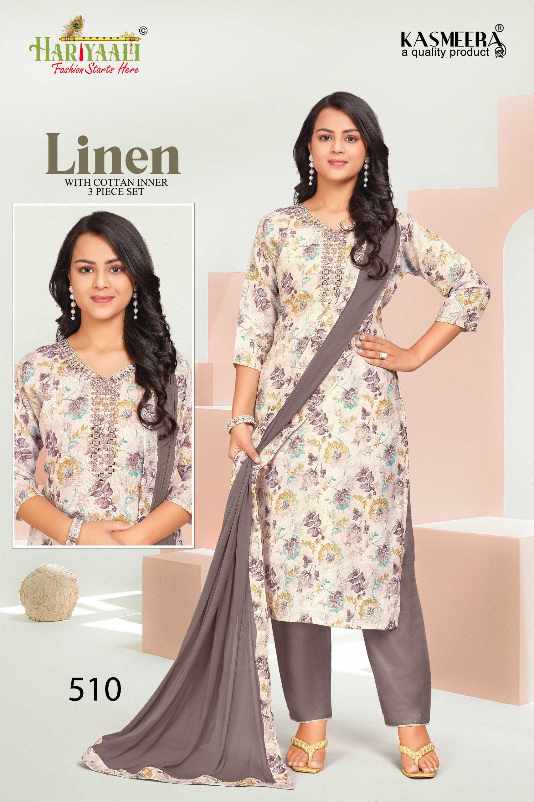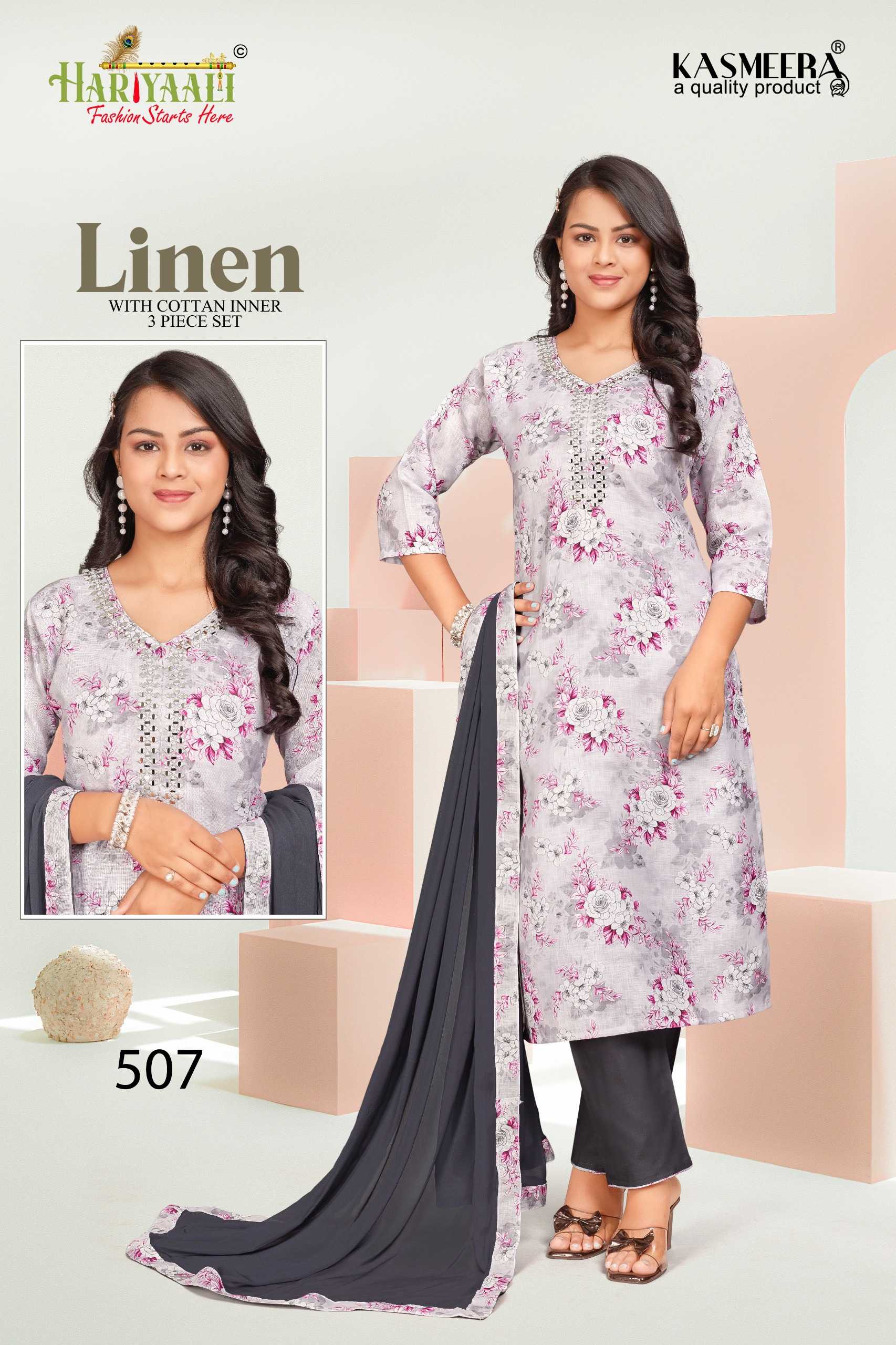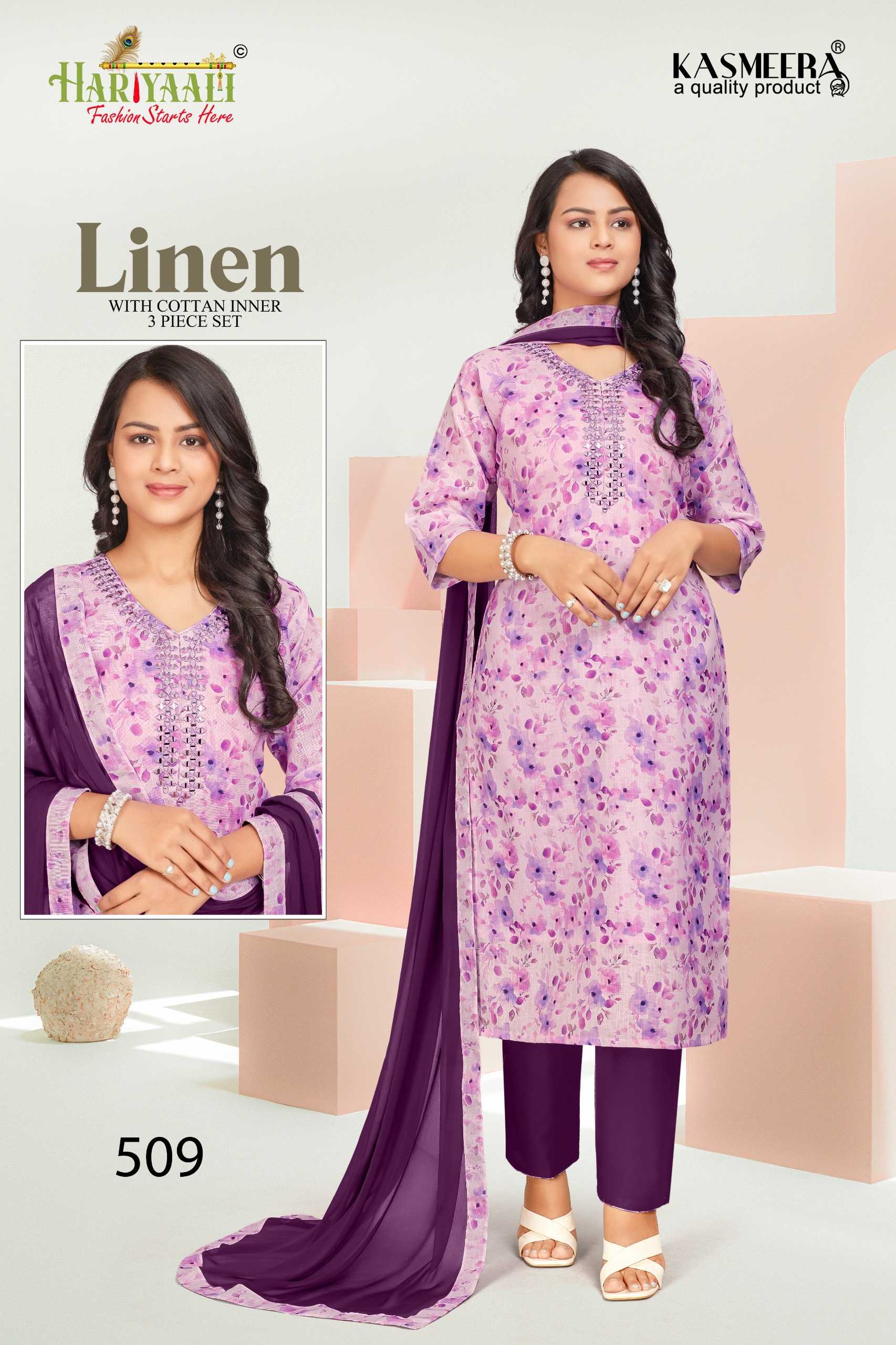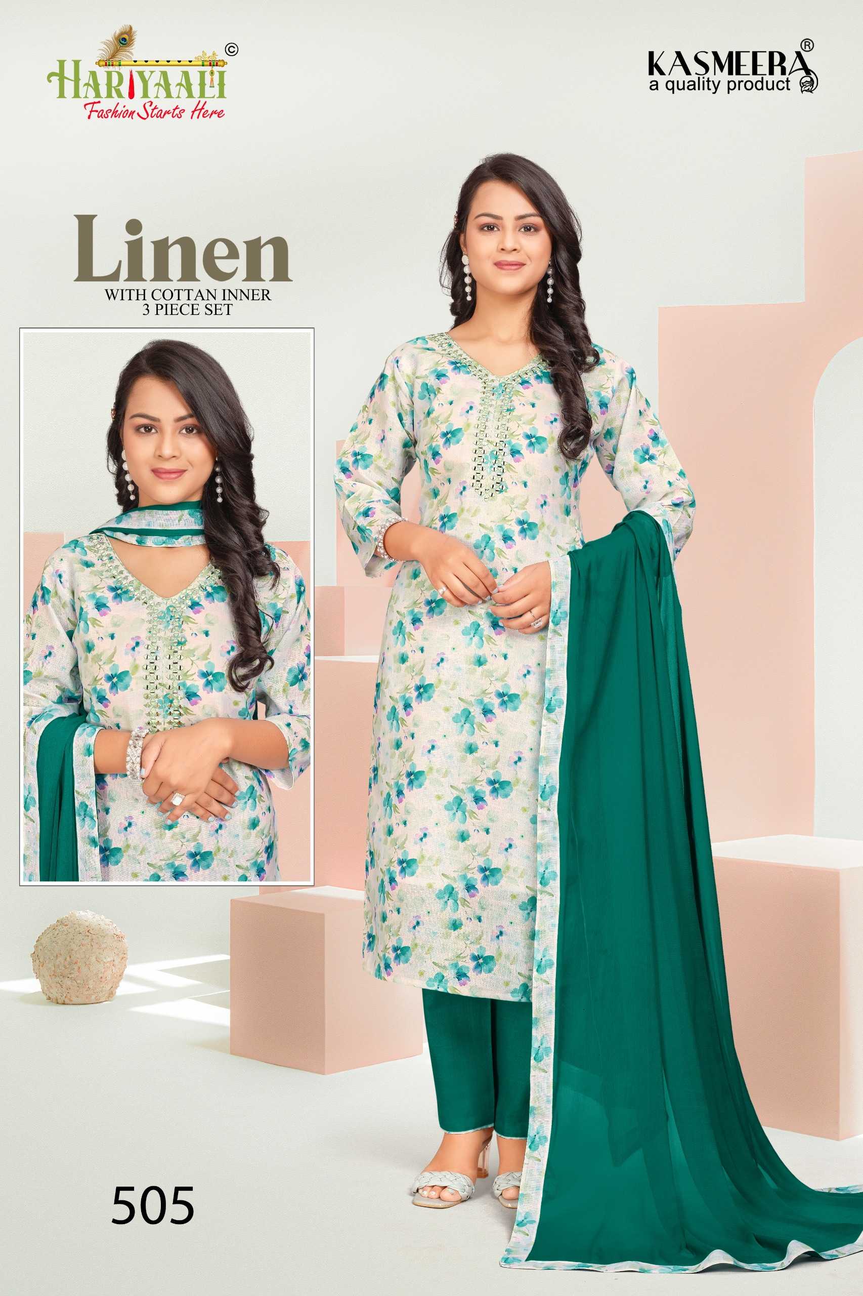 hariyaali presents linen vol 5 festival wear mirror work full stitch combo set salwar suit