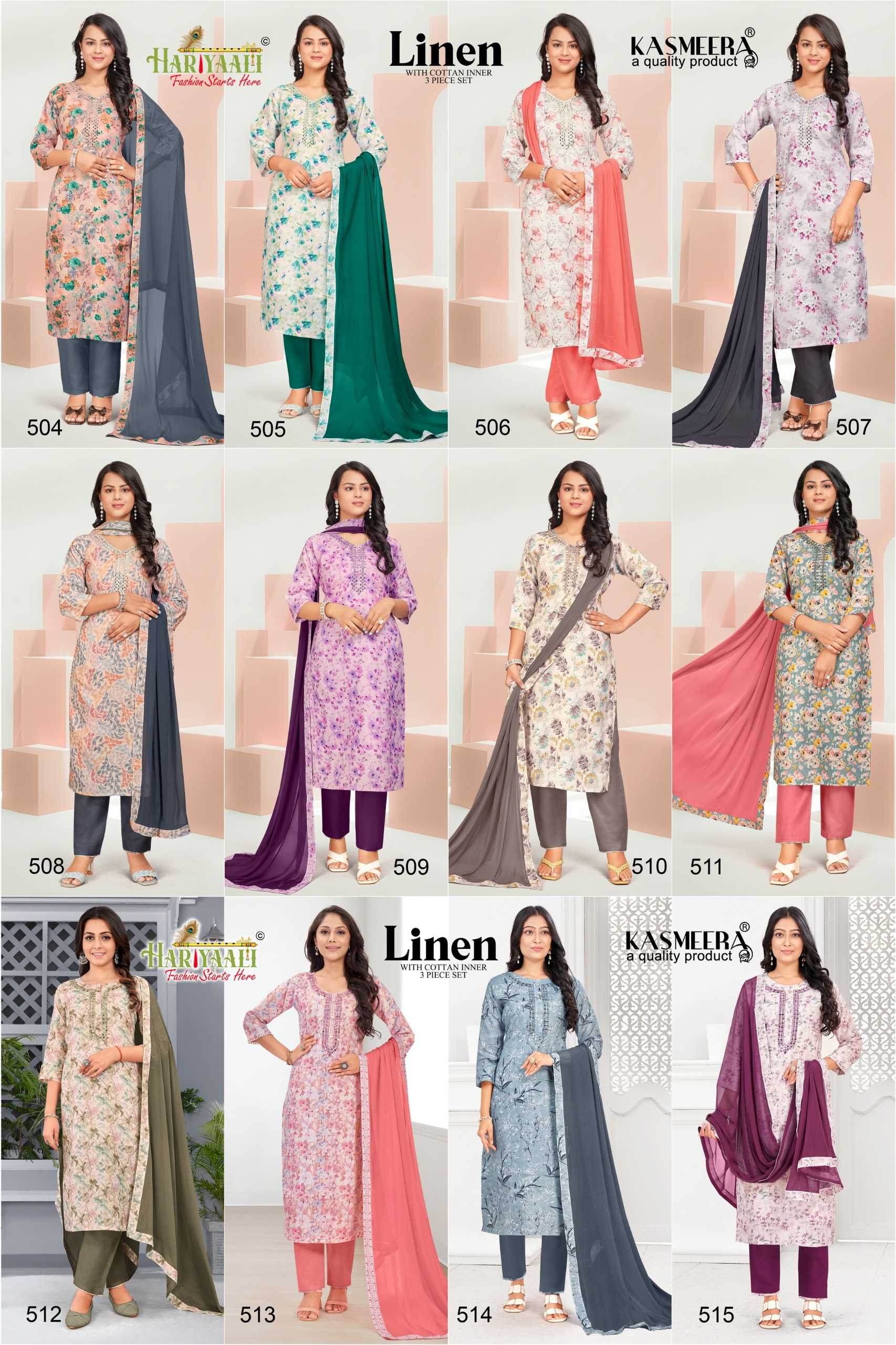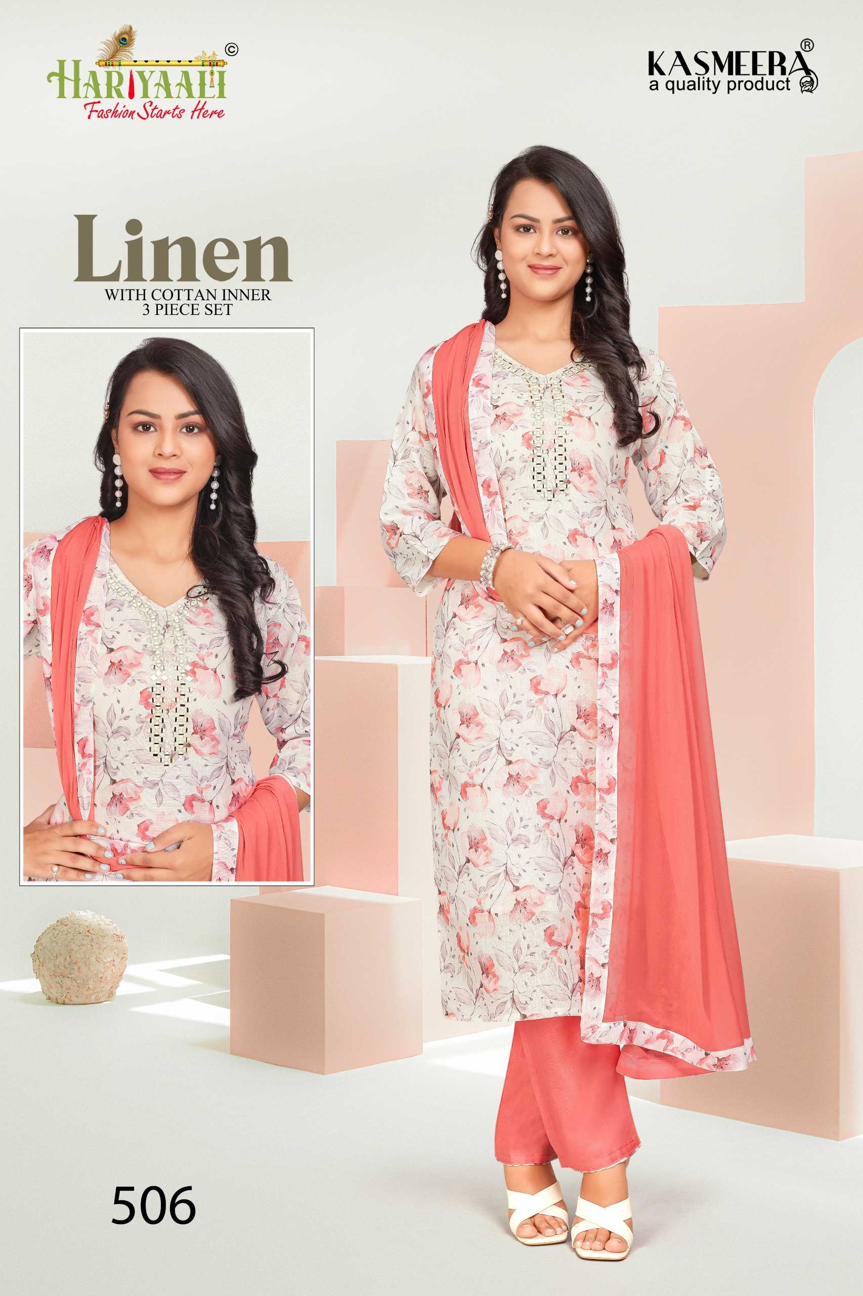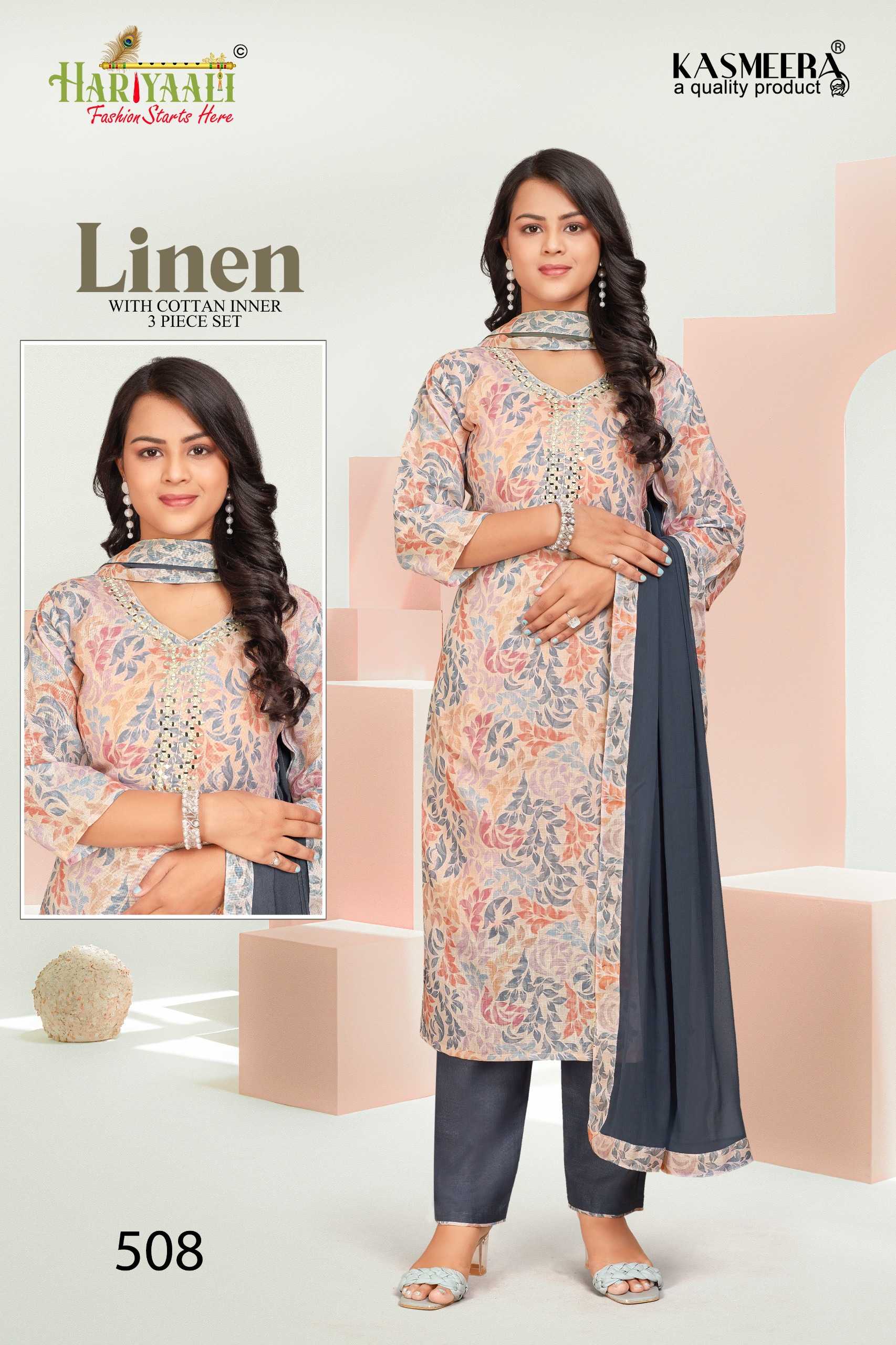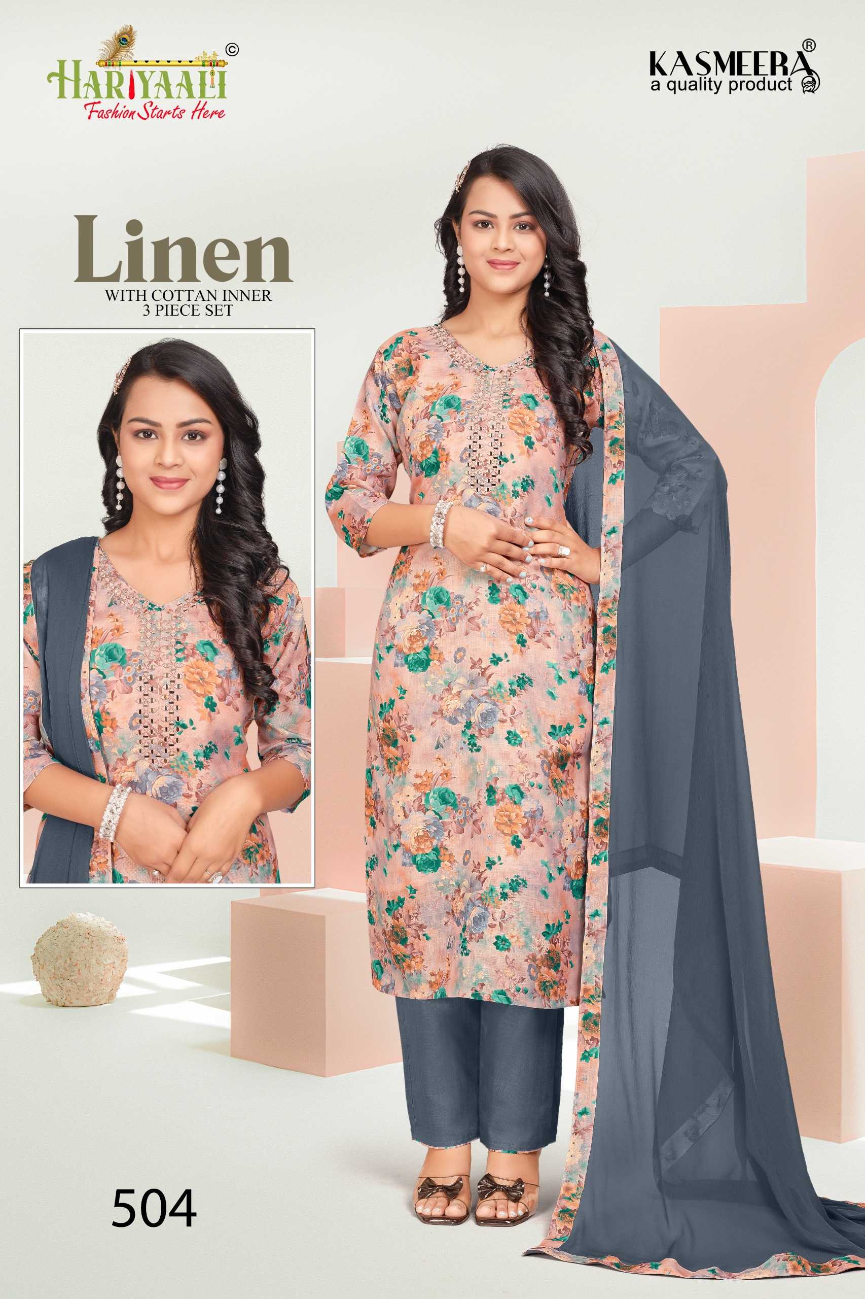 hariyaali presents linen vol 5 festival wear mirror work full stitch combo set salwar suit