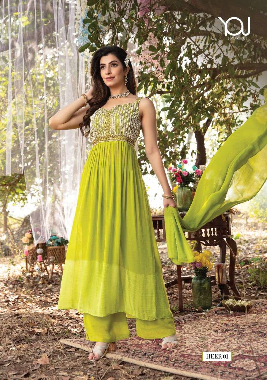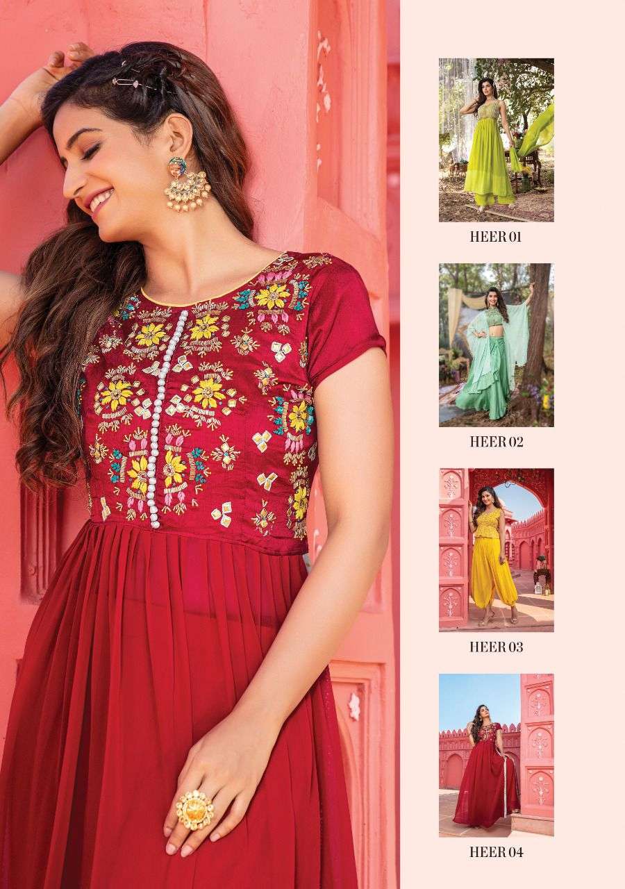 Wanna®️ Product 🎀Launch New Super Fancy Festive Collection Catalogue 🎀 📕Catalogue name :" Heer 👌🏻" 💵 Rate : 1470/- only 💵 👗Designs : 4 ✂Sizes : M TO 3XL 👘Fabric Details : Top - Heavy & Fancy Fabrics