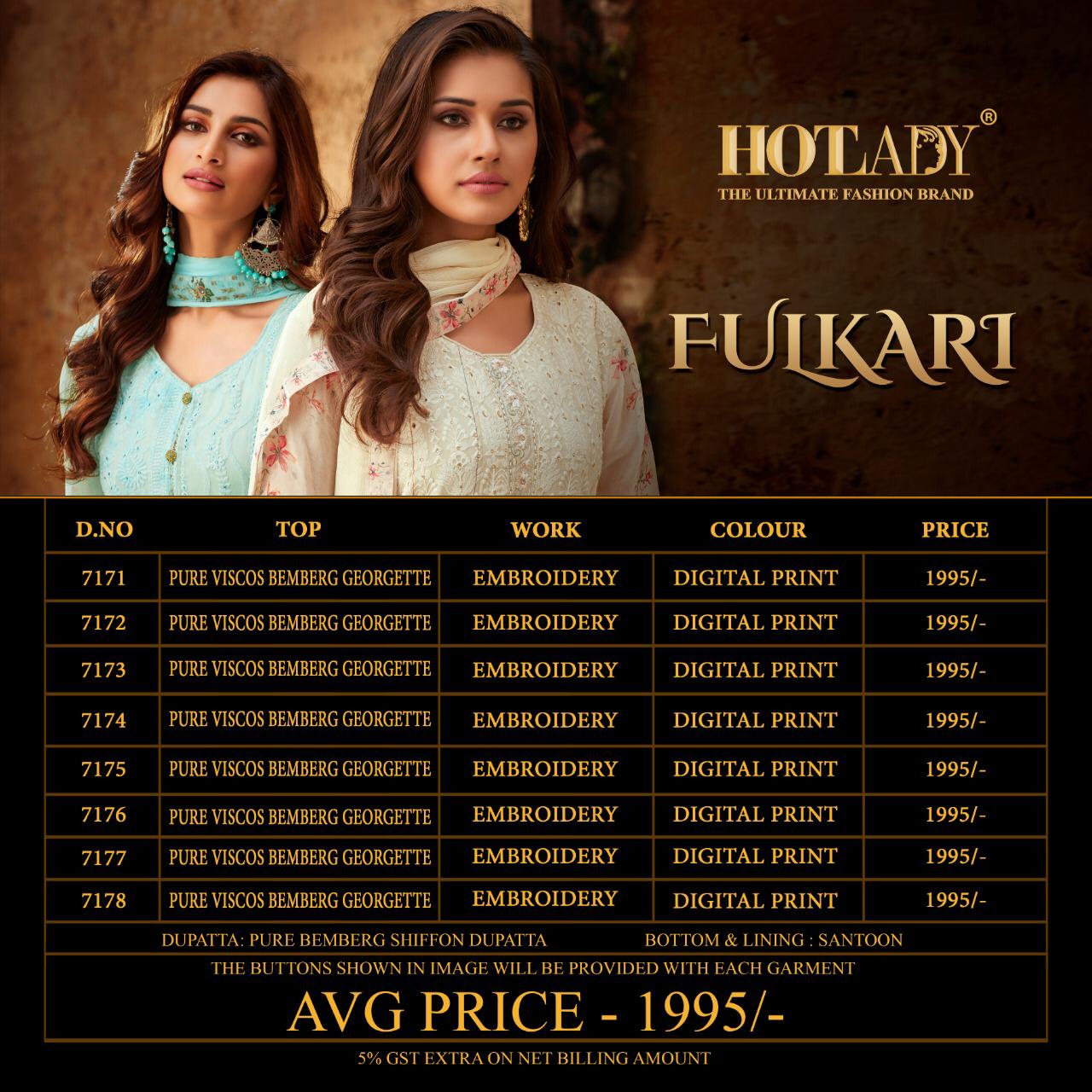 Kadambari Linen Shangrila Latest Linen Range With First Time Jequard Border and Digital Prints...!! 12 pc 12 design 650/- Set To Set. GST 5 Percent Extra. Delivery- Today Next Hot lady New . * set & Loose * Index Rate HOTLADY© Presents "FULKARI" (Embroidery with Digital Print) 8 DESIGNS Series -7171 to 7178. Delivery Date - 10/09/2019 5 % GST EXTRA APPLICABLE ON NET BILLING AMOUNT |