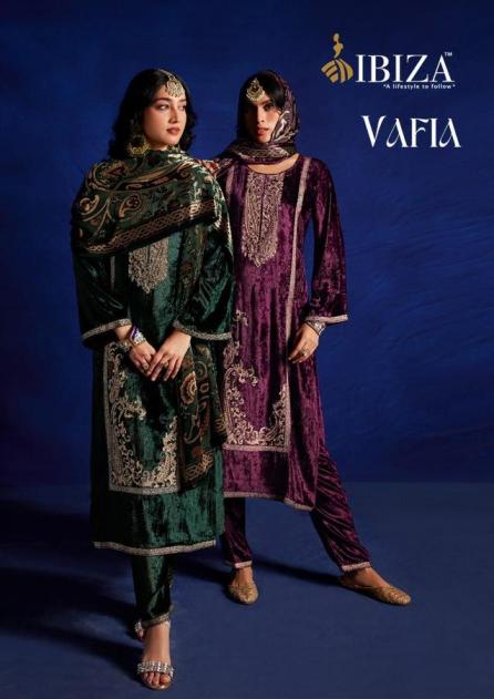 🙏🙏 IBIZA 🙏🙏 NEW SERIES VAFIA PREMIUM VELVET 👊Fabric Details👊 👗Top:-PURE VISCOSE VELVET EMBROIDERYWORK & DALICATE HANDWORK BOTTOM:-PURE VELVET EMBROIDERY WORK 🔻Designs:- 4 PCS Rate:- 2495/- +GST