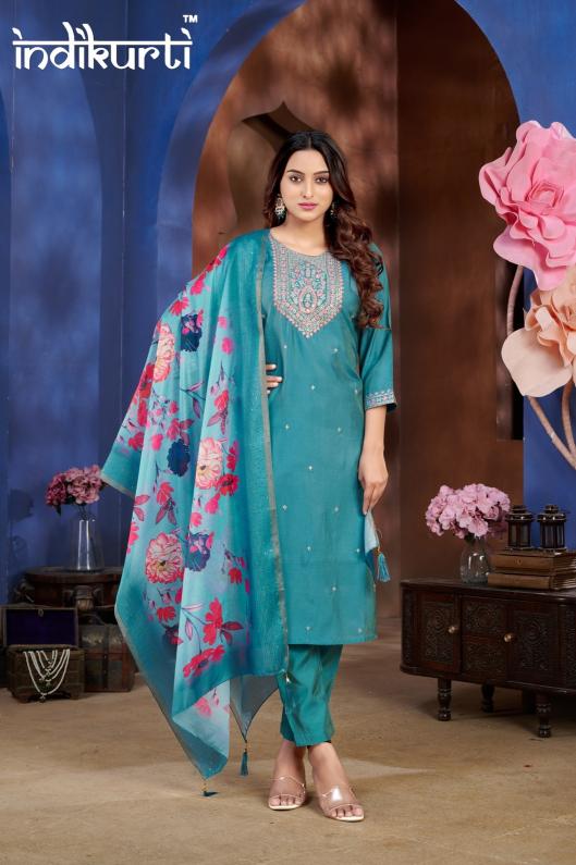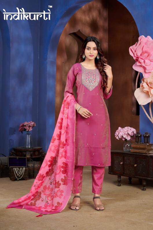 indikurti soniya shimmer roman readymade casual combo 3pcs dress