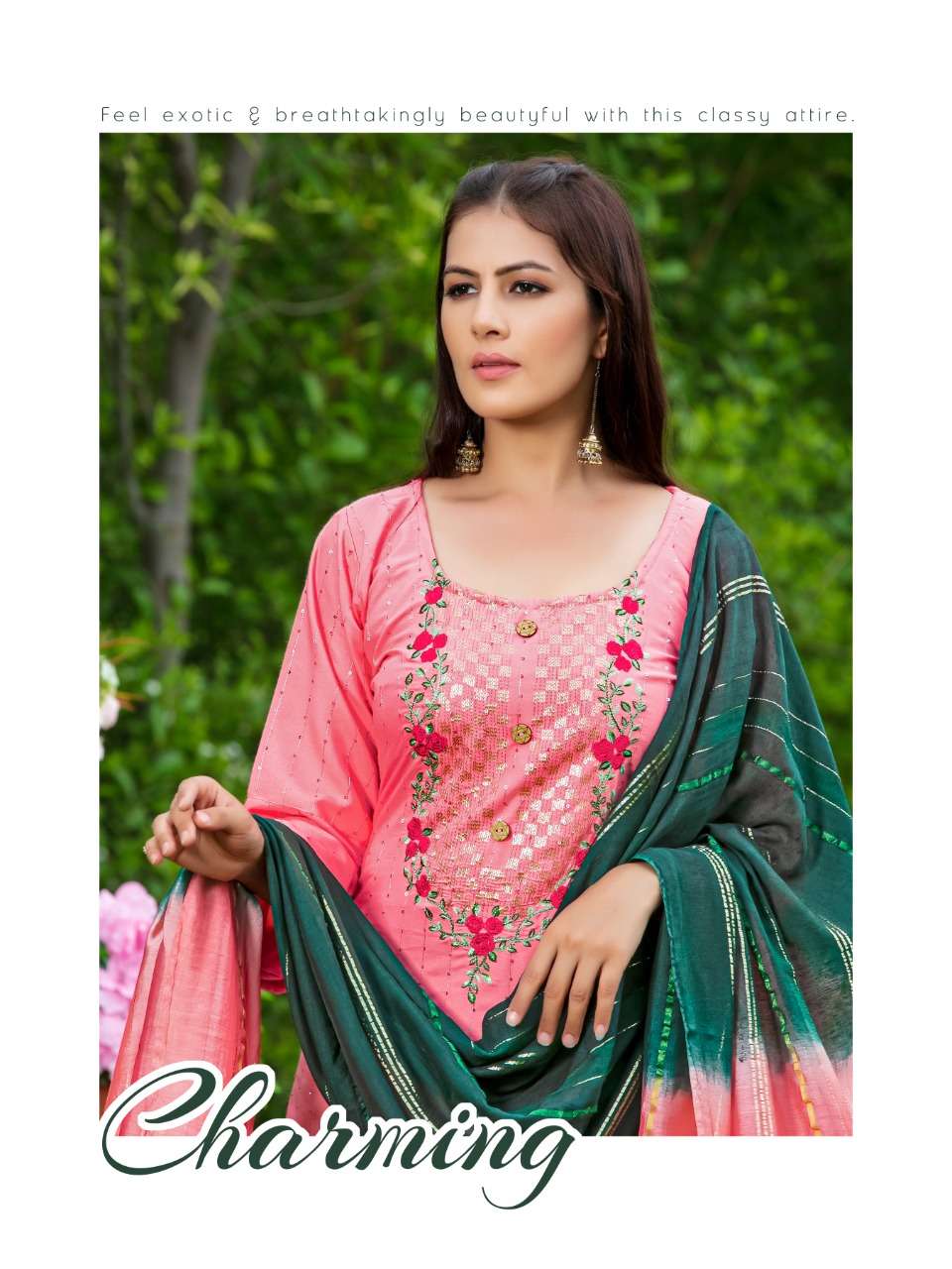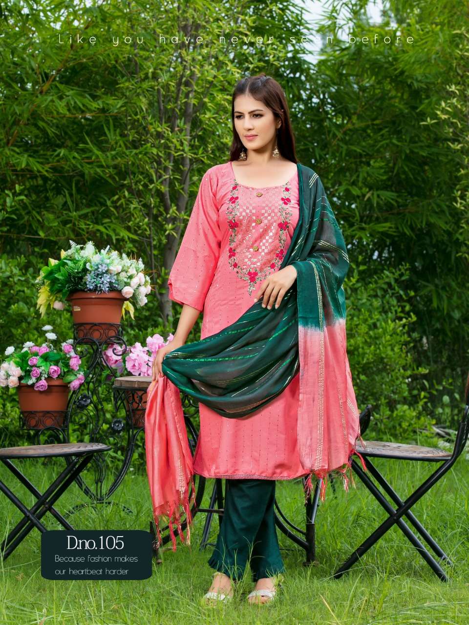 INNAYAT V-1 THREE PIECE CATALOGUE KURTI WITH PENT WITH DUPATTA - TOP - PENT - DUPATTA - TOP 45" inch length Color : 6 Color 💢RATE - 850/- + 5%GST Set to set |