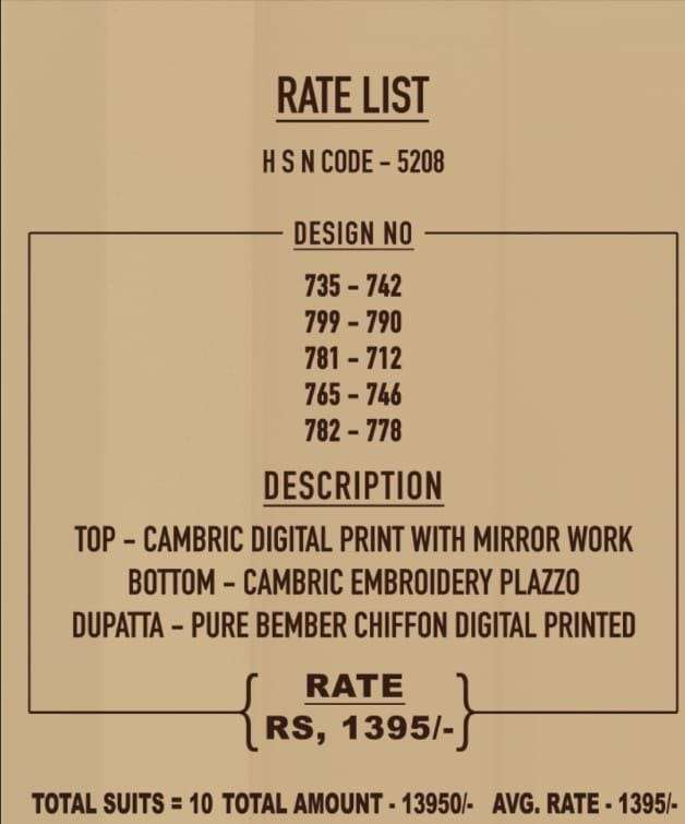 ITRANA TOP-PURE COTTON CAMBRIC DIGITAL PRINT WITH MIRROR WORK RATE-1395₹ per PC’s . |