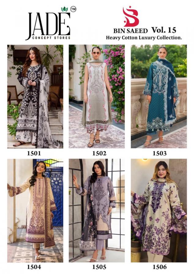 jade launch bin saeed vol 15 lawn cotton pakistani dress materials