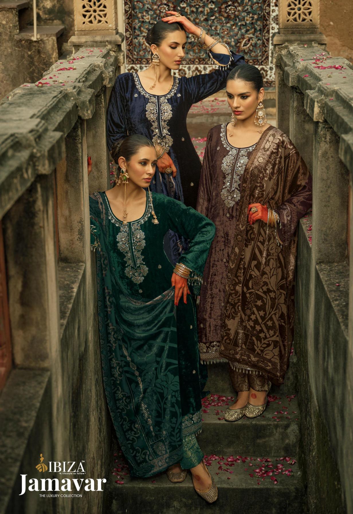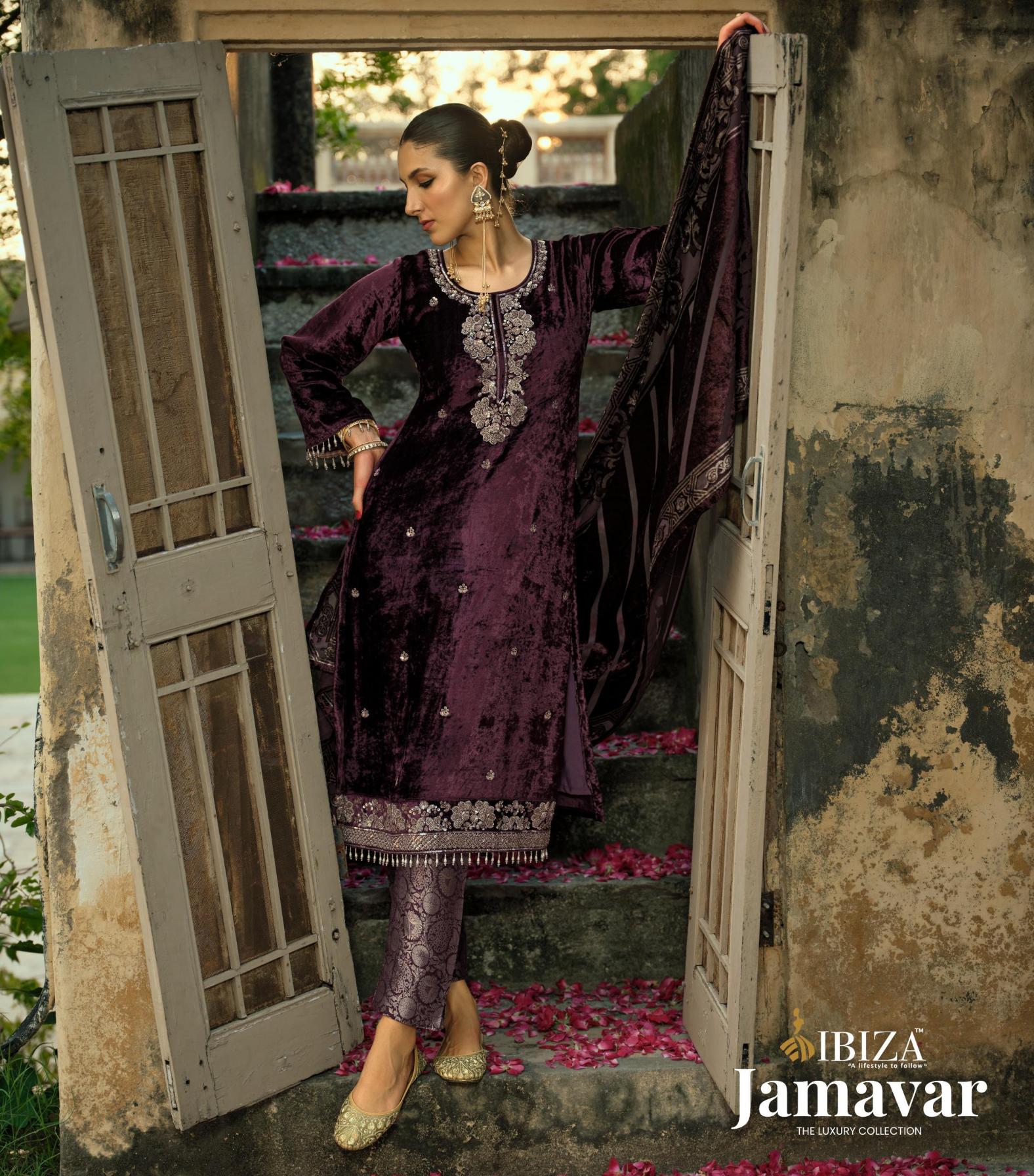 jamavar by ibiza winter special viscose velvet 3pcs dress