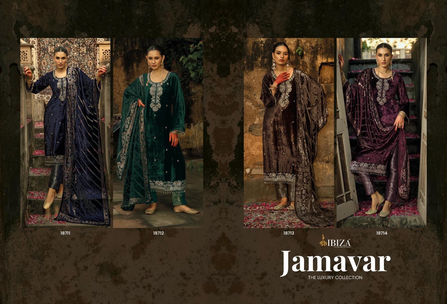 🙏🙏 IBIZA 🙏🙏 NEW SERIES JAMAVAR PREMIUM VELVET 👊Fabric Details👊 👗Top:-PURE VISCOSE VELVET BEADS WORK BOTTOM:-PURE JAMAVAR SILKY JACQUARD 🔻Designs:- 4 PCS Rate:- 2595/-