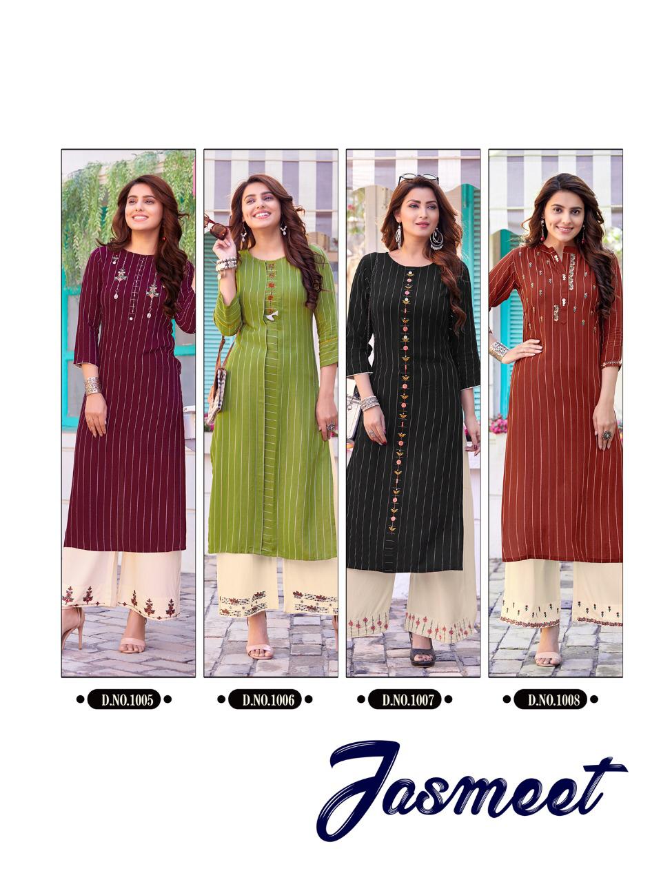 Jasmeet By Ladies Flavour Rayon With Embroidery Kurti With Bottom Exporter