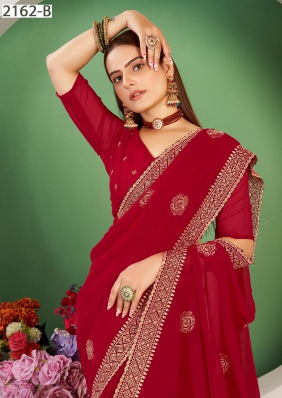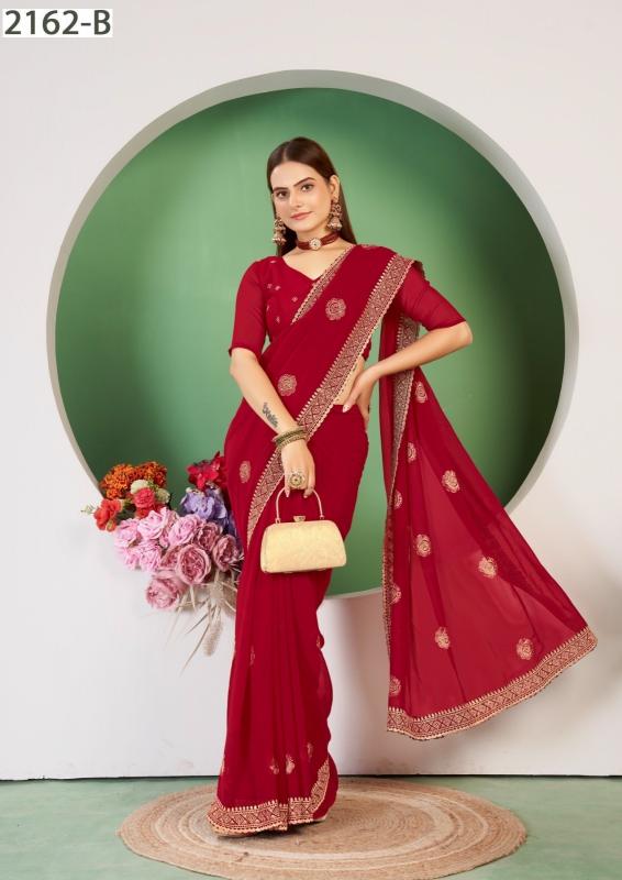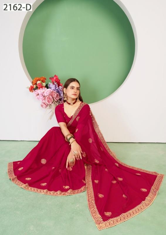 Let The Next Ethnic Occasion See You Flaunt A Mesmerizingly Vibrant Avatar Wearing This Blooming Georgette Saree Which Is Surely To Set You Apart From The Rest Brand - Jayshree Sarees Catalog Name -2162 Series Series :-2162A to 2162D Rate : 995/- +5%GST Fabric: Georgette Blooming With Embroidery Work Border & Butti and Swarovski Work Blouse: Georgette Blooming With Embroidery Work Occasion: Party Wear, Festival Wear |