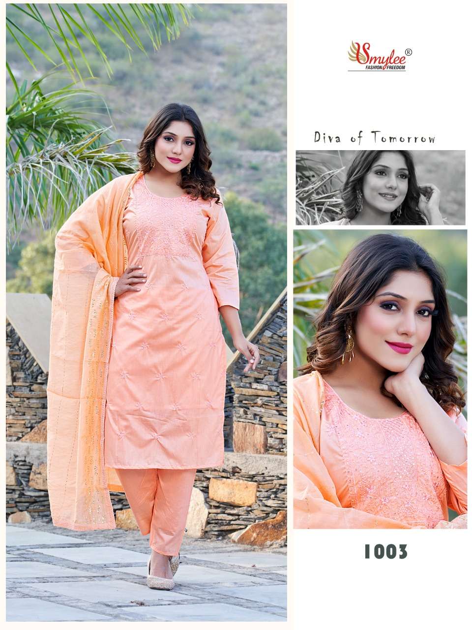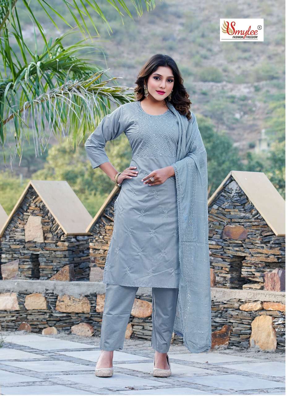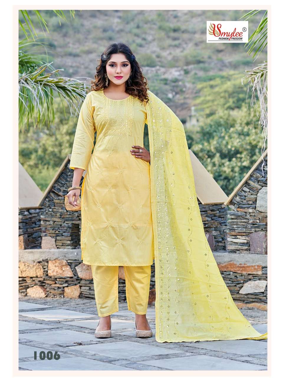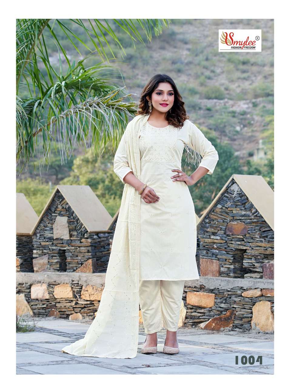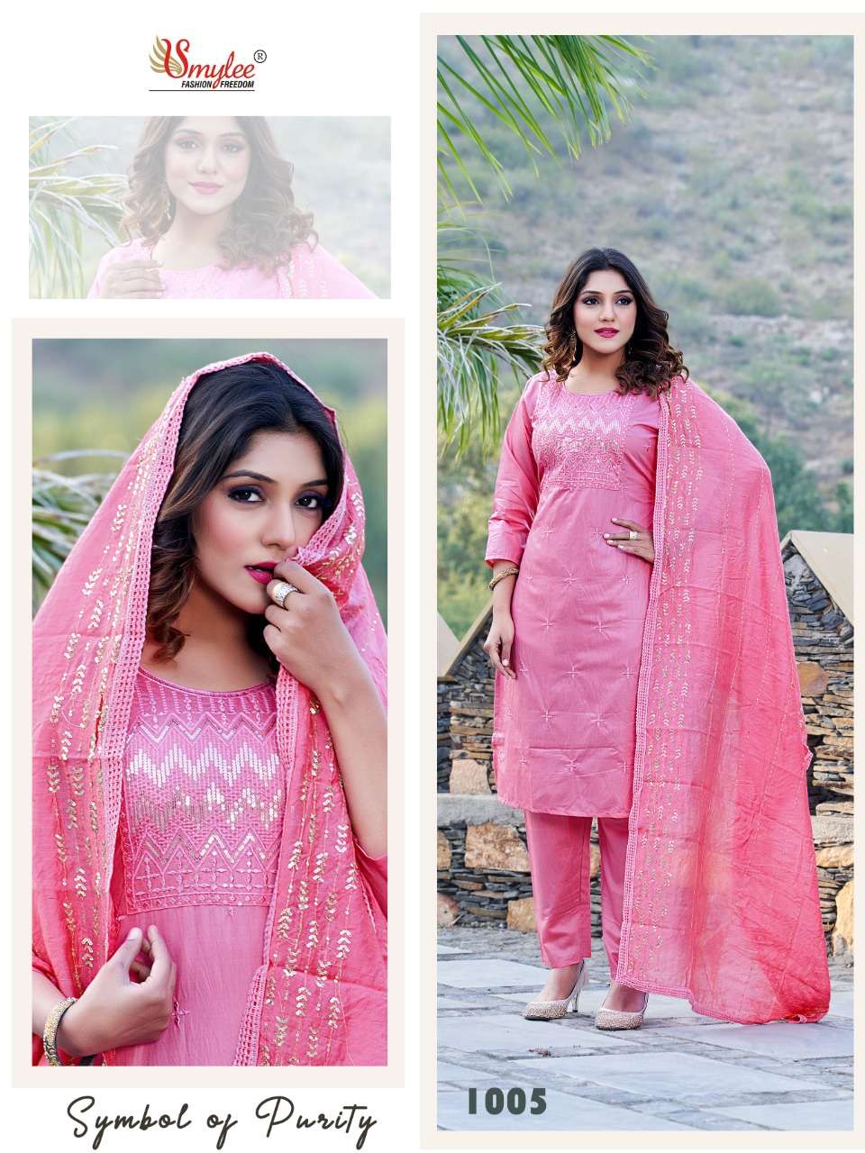 Brand - Rung KURTI WITH PANT & DUPATTA CATLOG FEBRIC.. CHANDERI SILK WITH INNER & NECK & ALL OVER EMBROIDERY WORK BOTOOM.. chanderi SILK DUPATTA. Silk with all over lace and full all over embroidery dupatta PC's. 8 Size. M. L. XL. XXXL Rate - per pcs Rs.715 |