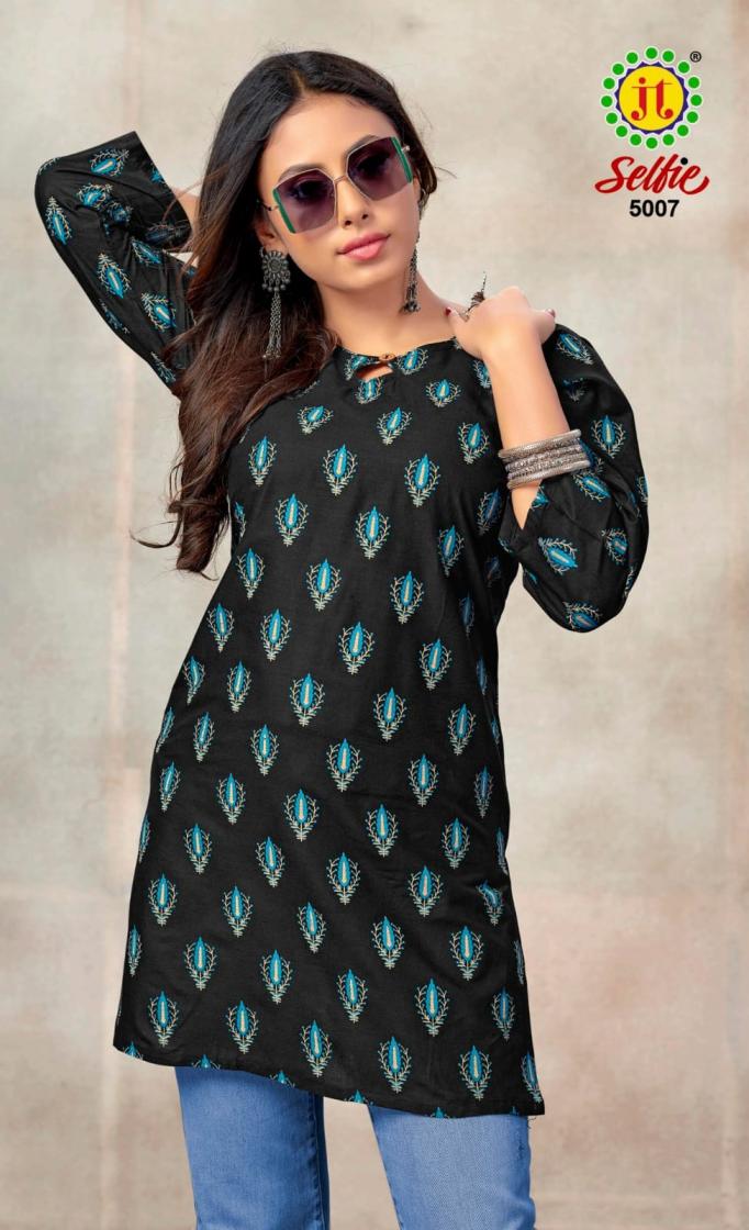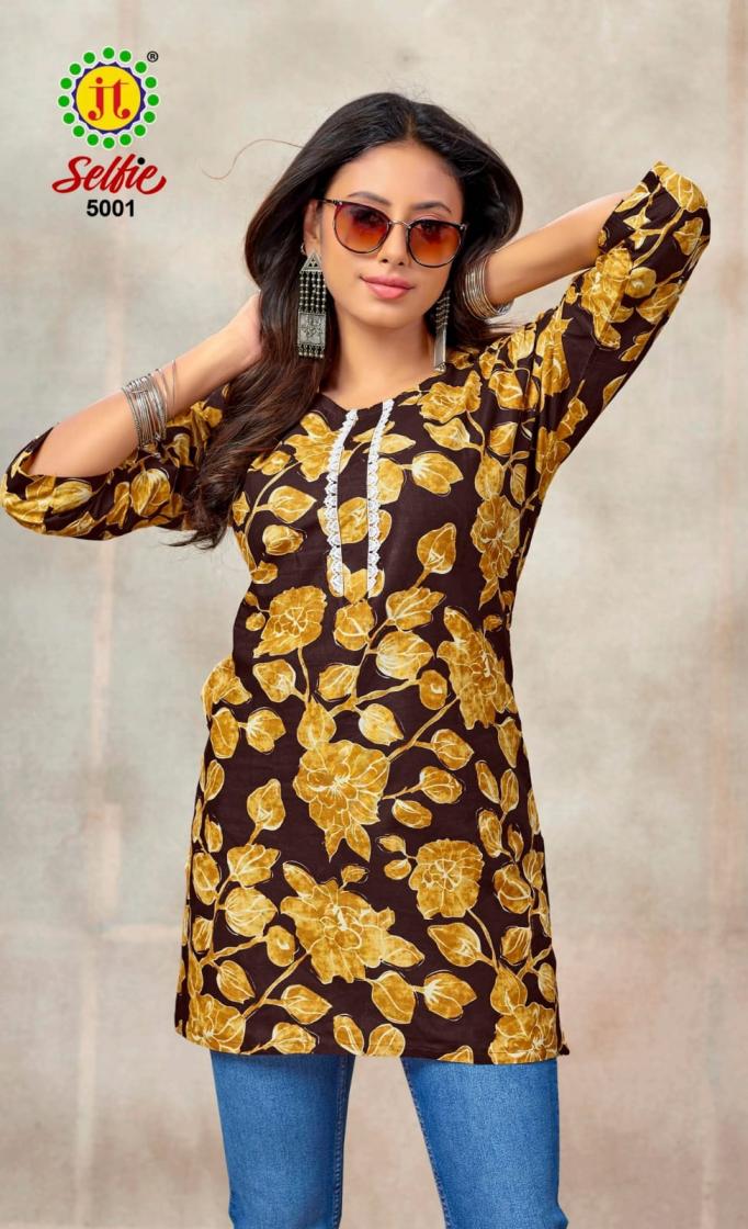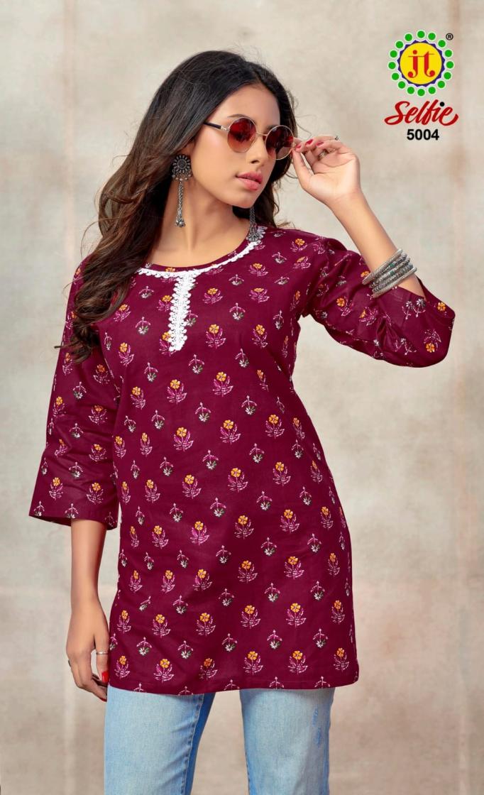 jt presents selfie cotton readymade regular wear western short kurti