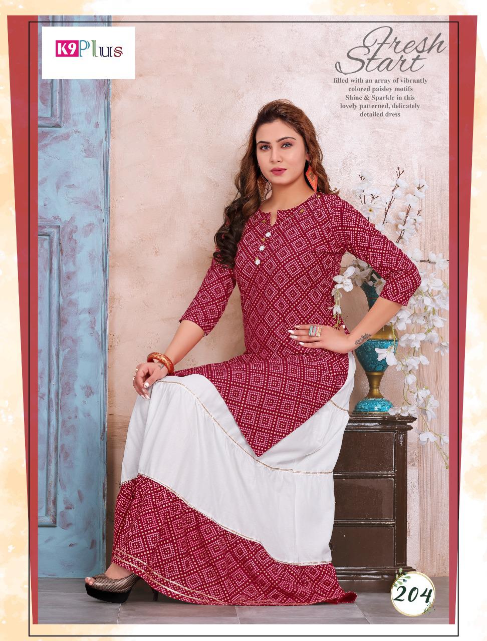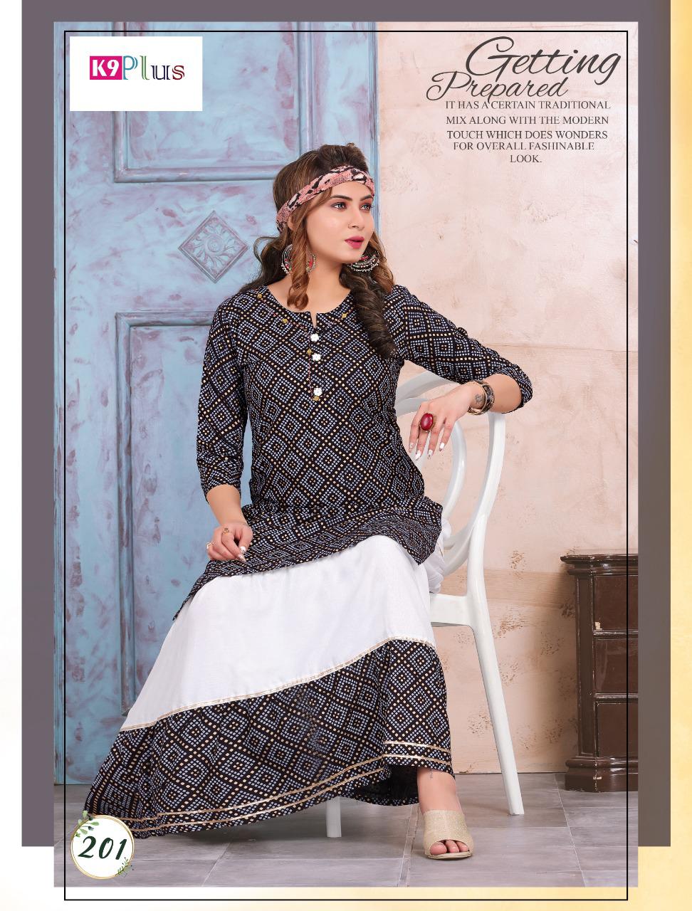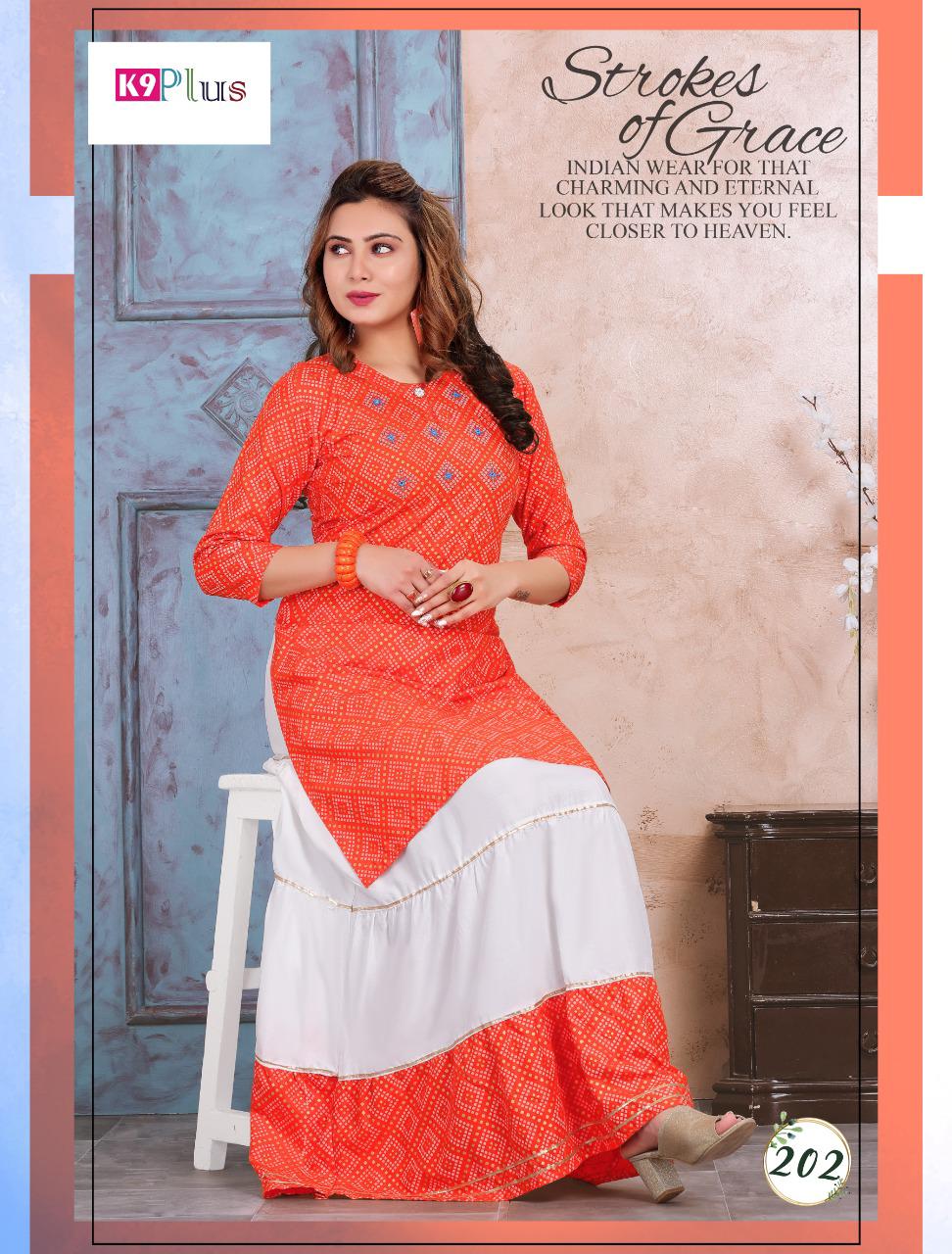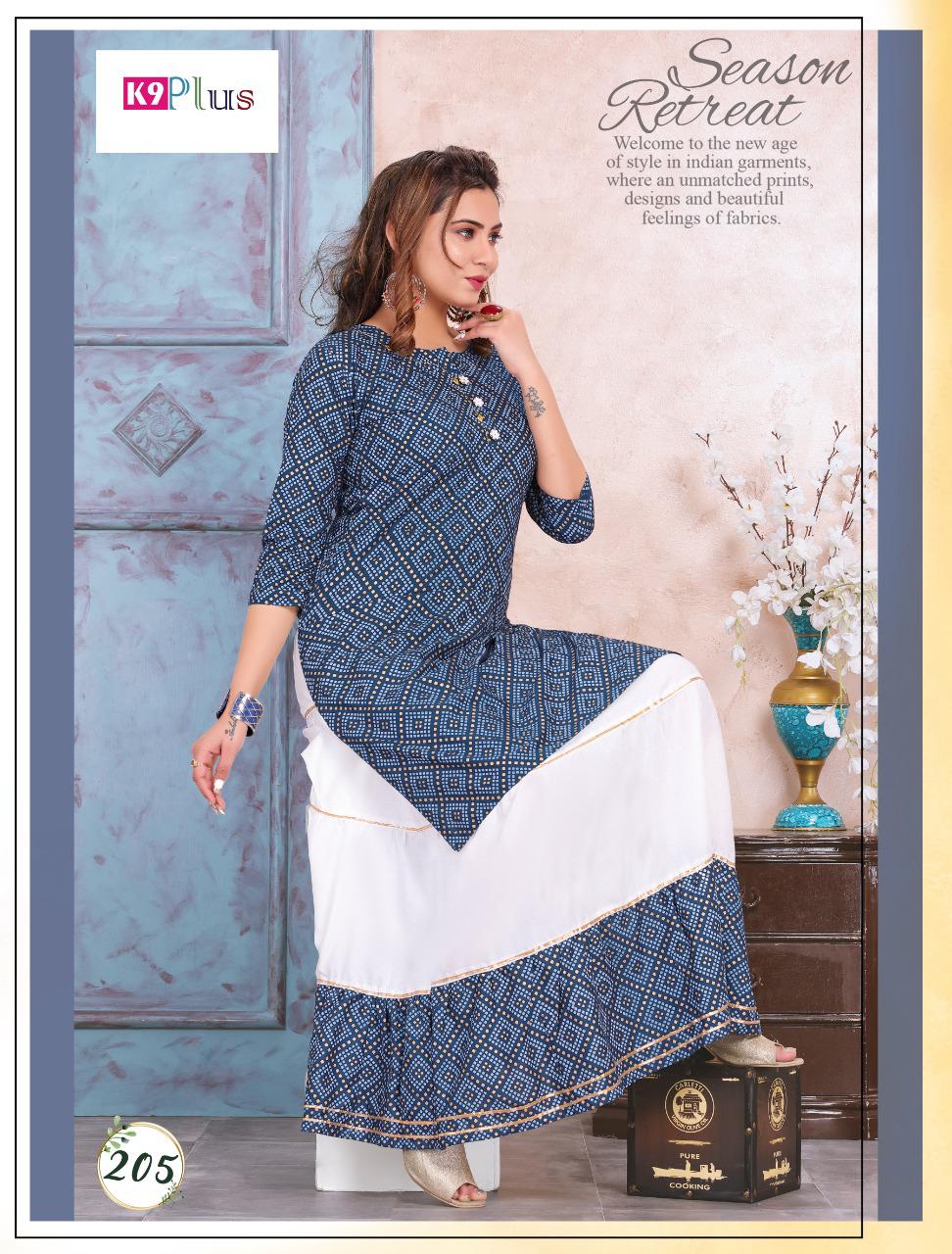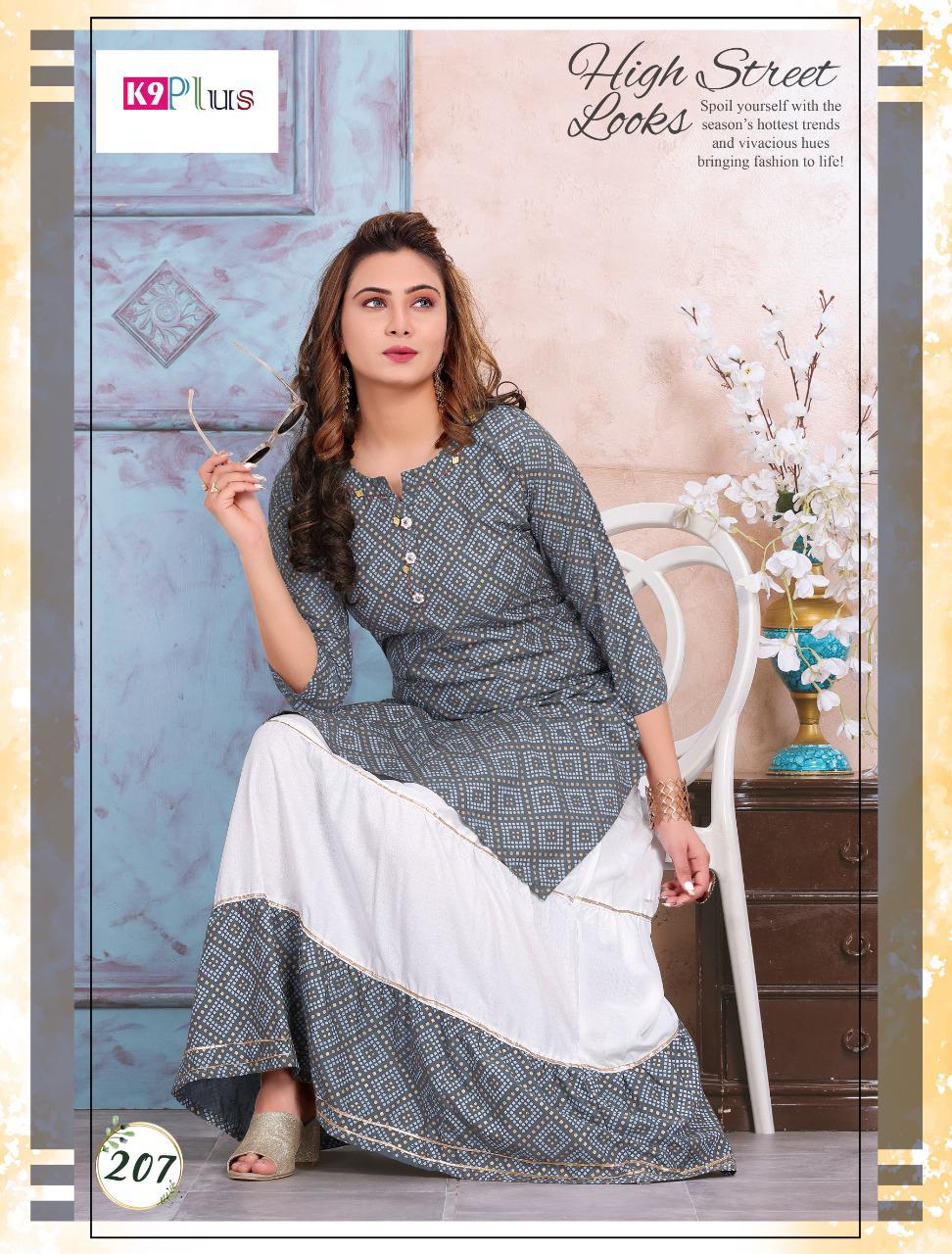 K9 the premium branded kurtis from K9PLUS has launched its new long kurti and sharara with skirt set catalog