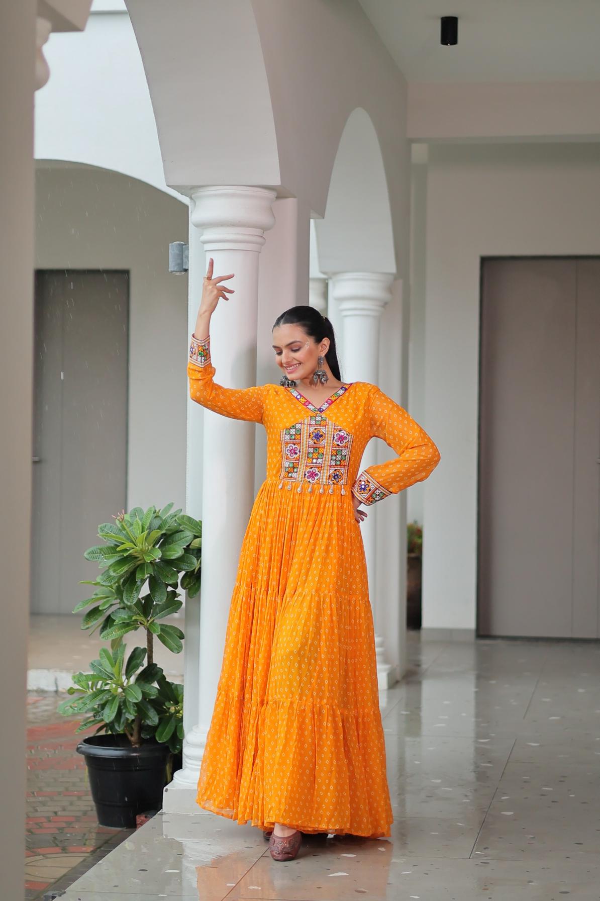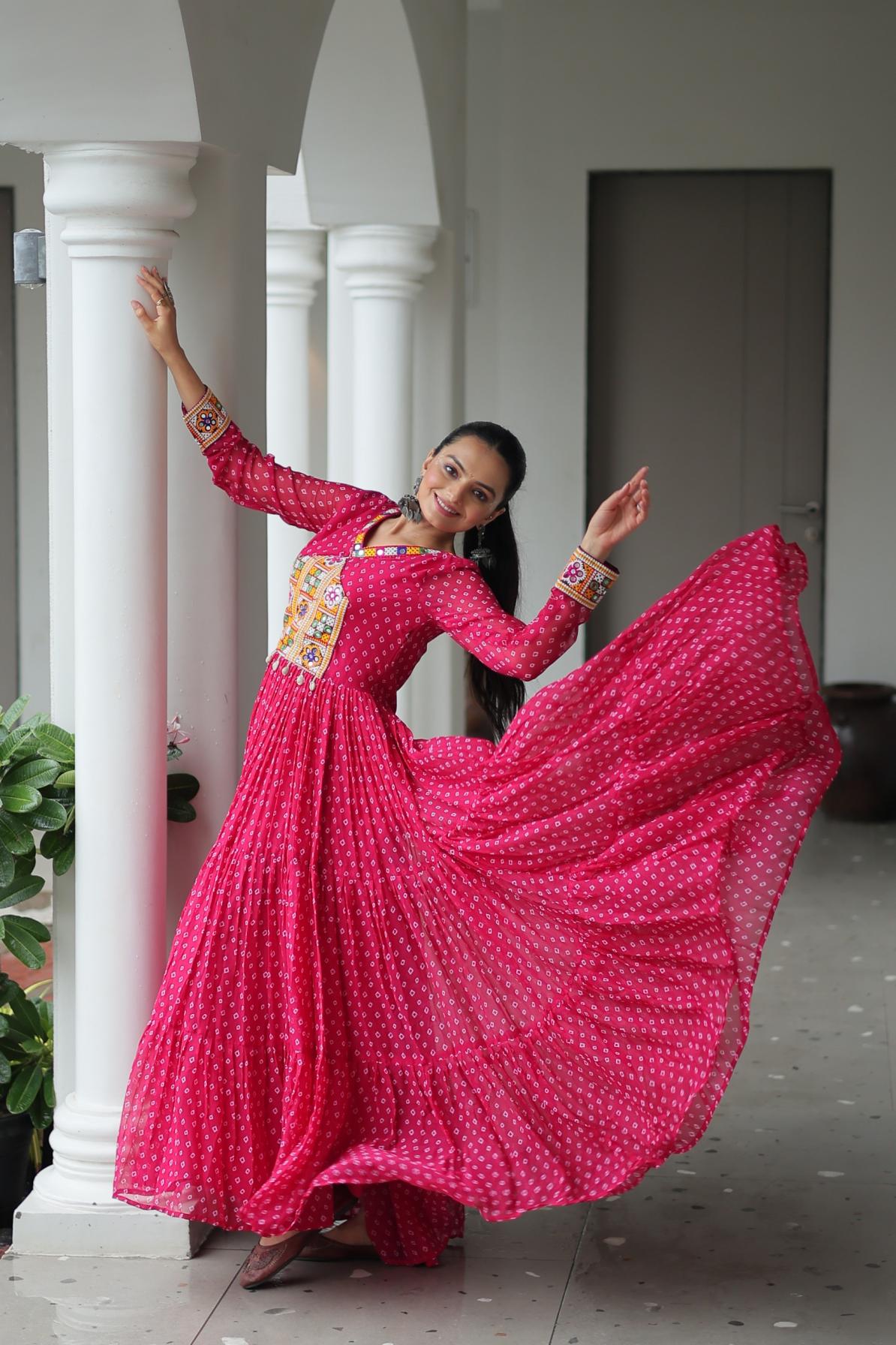 ka 1180 navratri bandhani print faux georgette fully stitch gown for womens