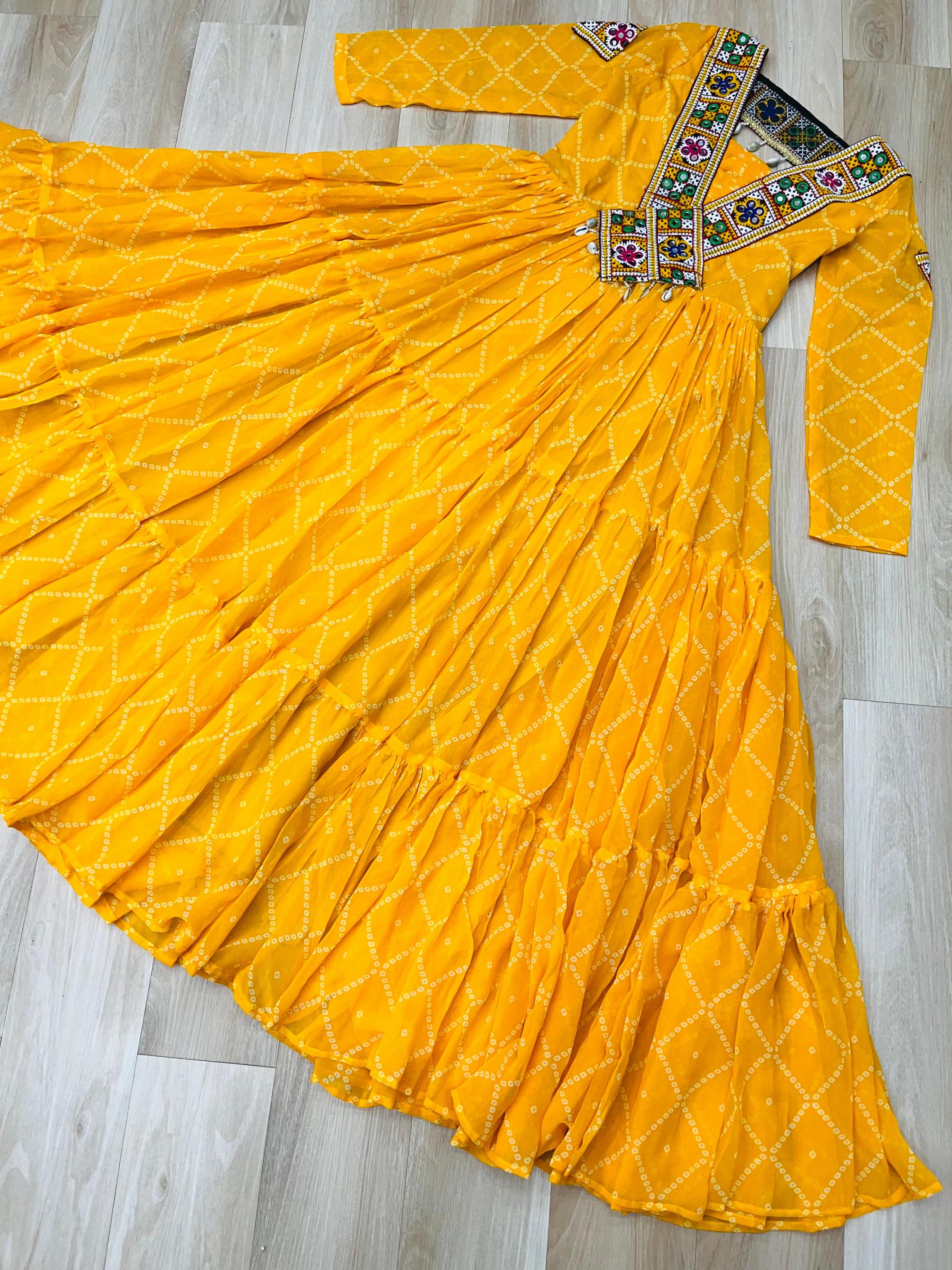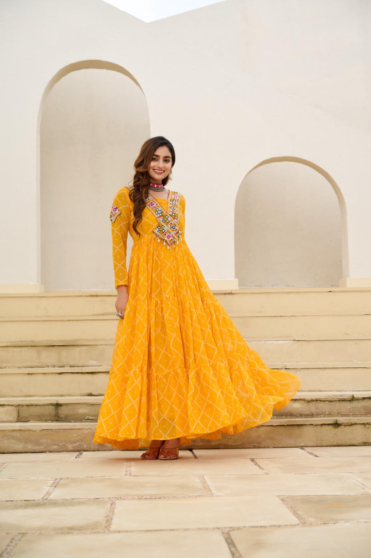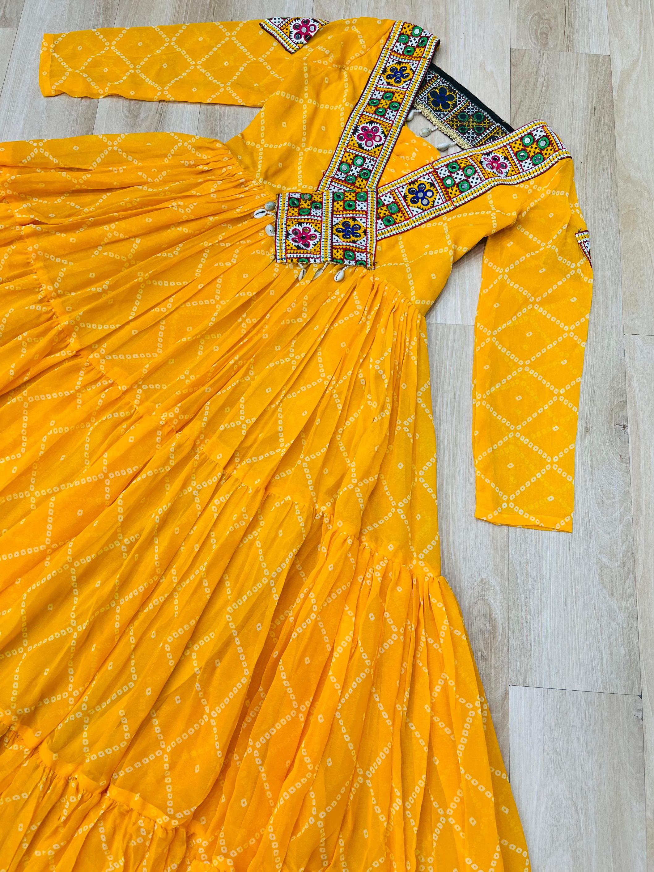 ka 1191 navratri special bandhani Print readymade stylish gown for girls