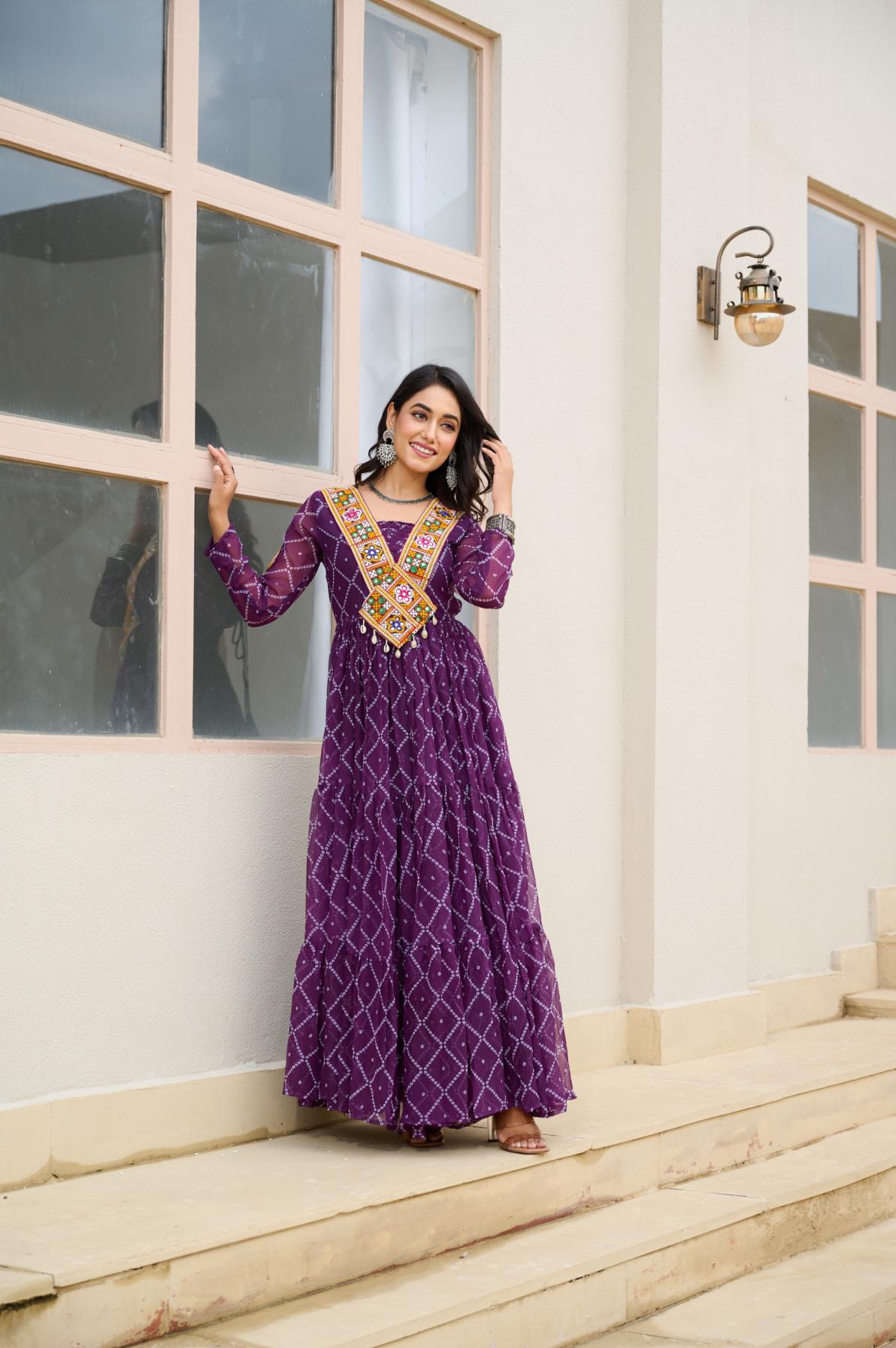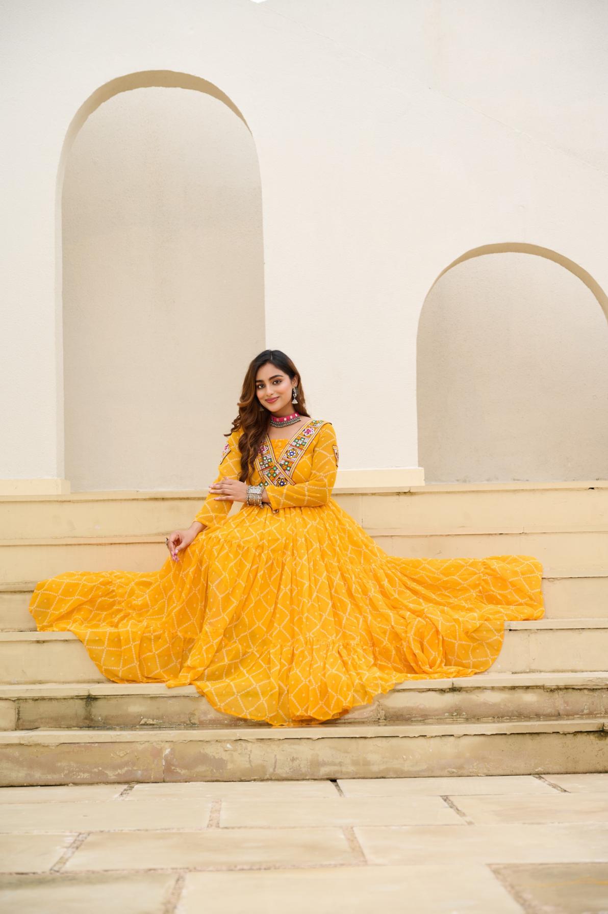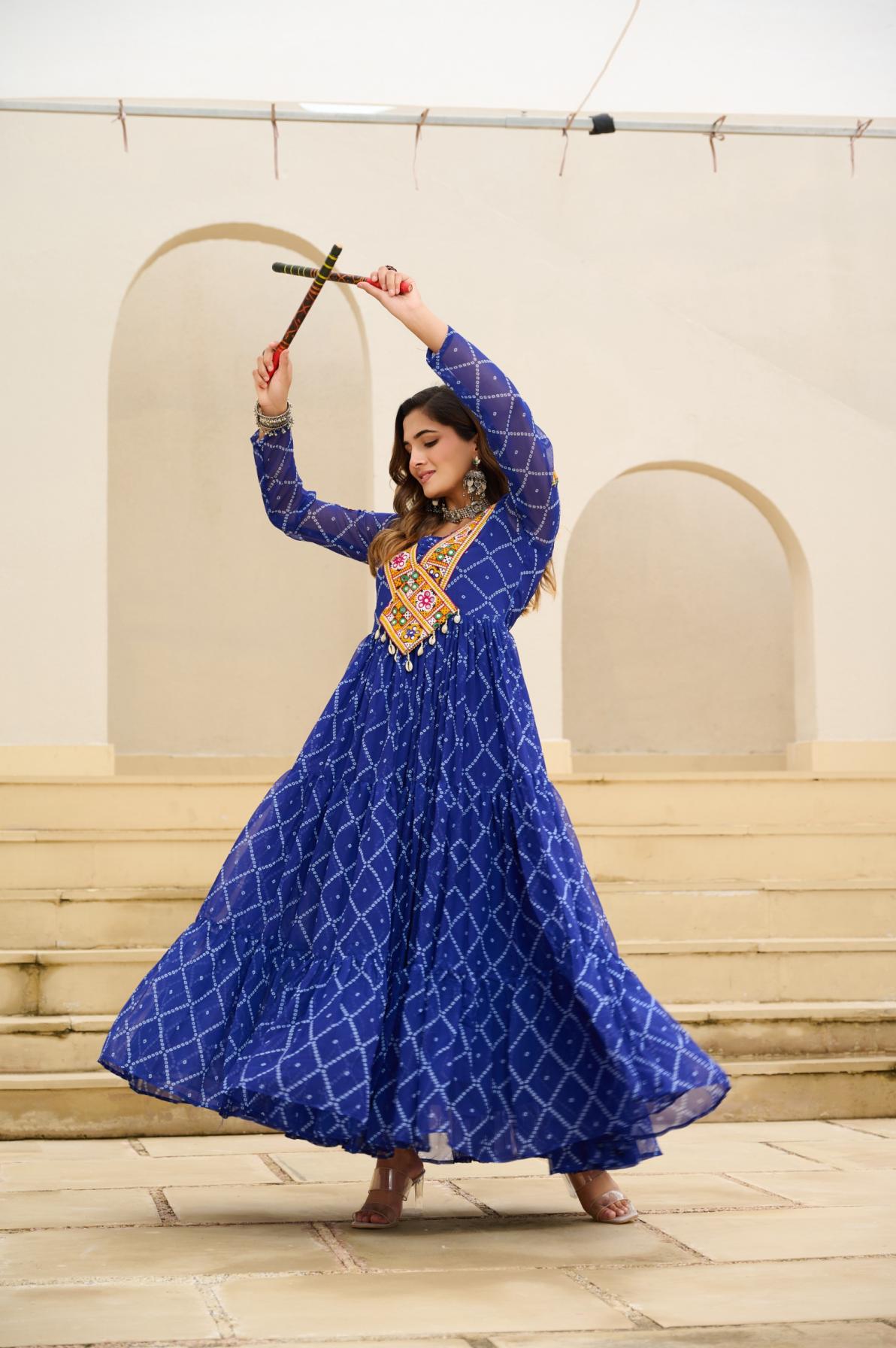 ka 1191 navratri special bandhani Print readymade stylish gown for girls