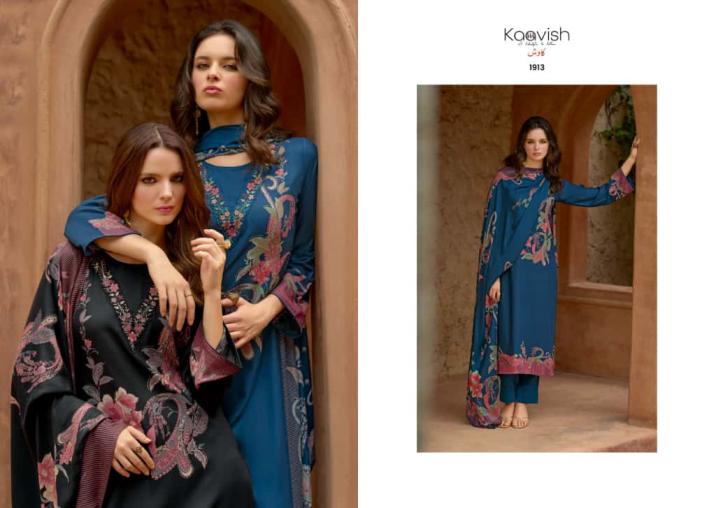 KAAVISH 👗Top:-PURE VISCOSE PASHMINA DIGITAL FOIL PRINT WITH V NECK PATCH EMBROIDERY 👖BOTTOM:- PURE VISCOSE PASHMINA 🔻Designs:- 4 PCS |
