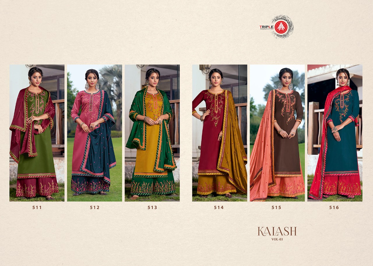 Kalash Vol 3 By Triple Aaa Jam Silk With Embroidery Work Salwar Suits Wholesaler