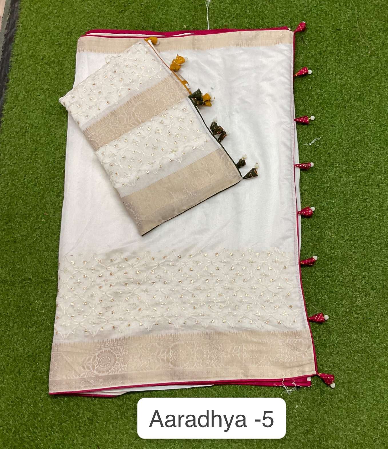 Aradhya 05 no. -1080/- Fabric: Spun cotton Concept: Special white with Embroidery work Blouse: Work blouse 3 different blouse 🎨colors available Packing : 31.08.2023📌 |