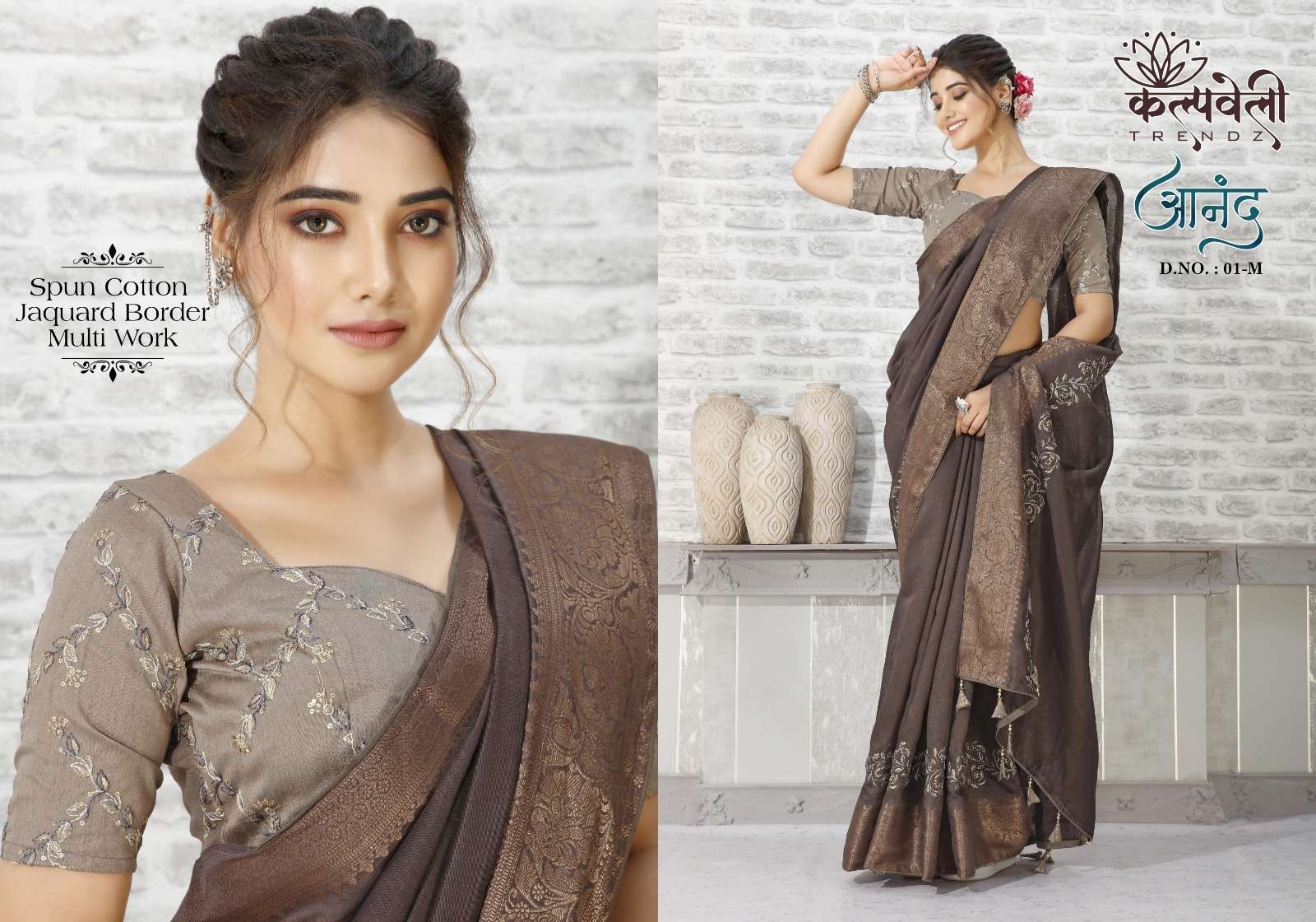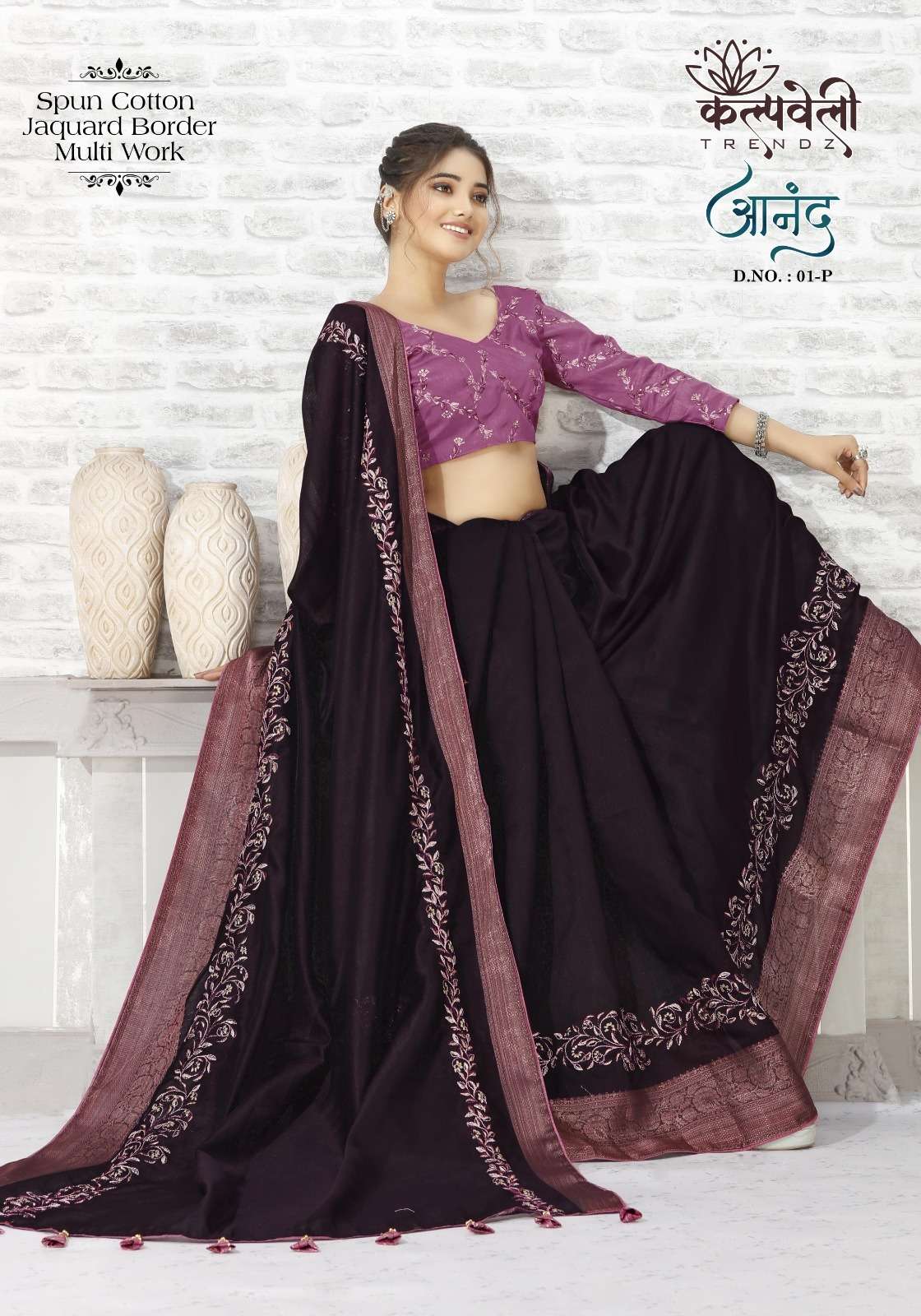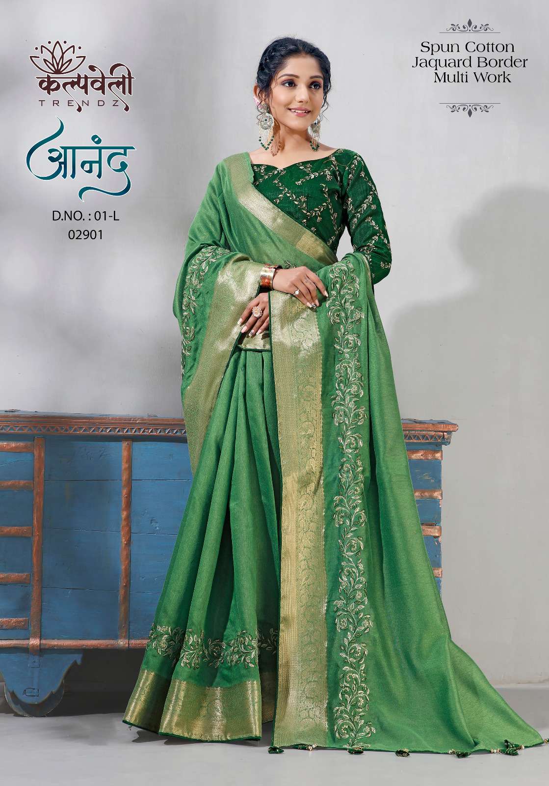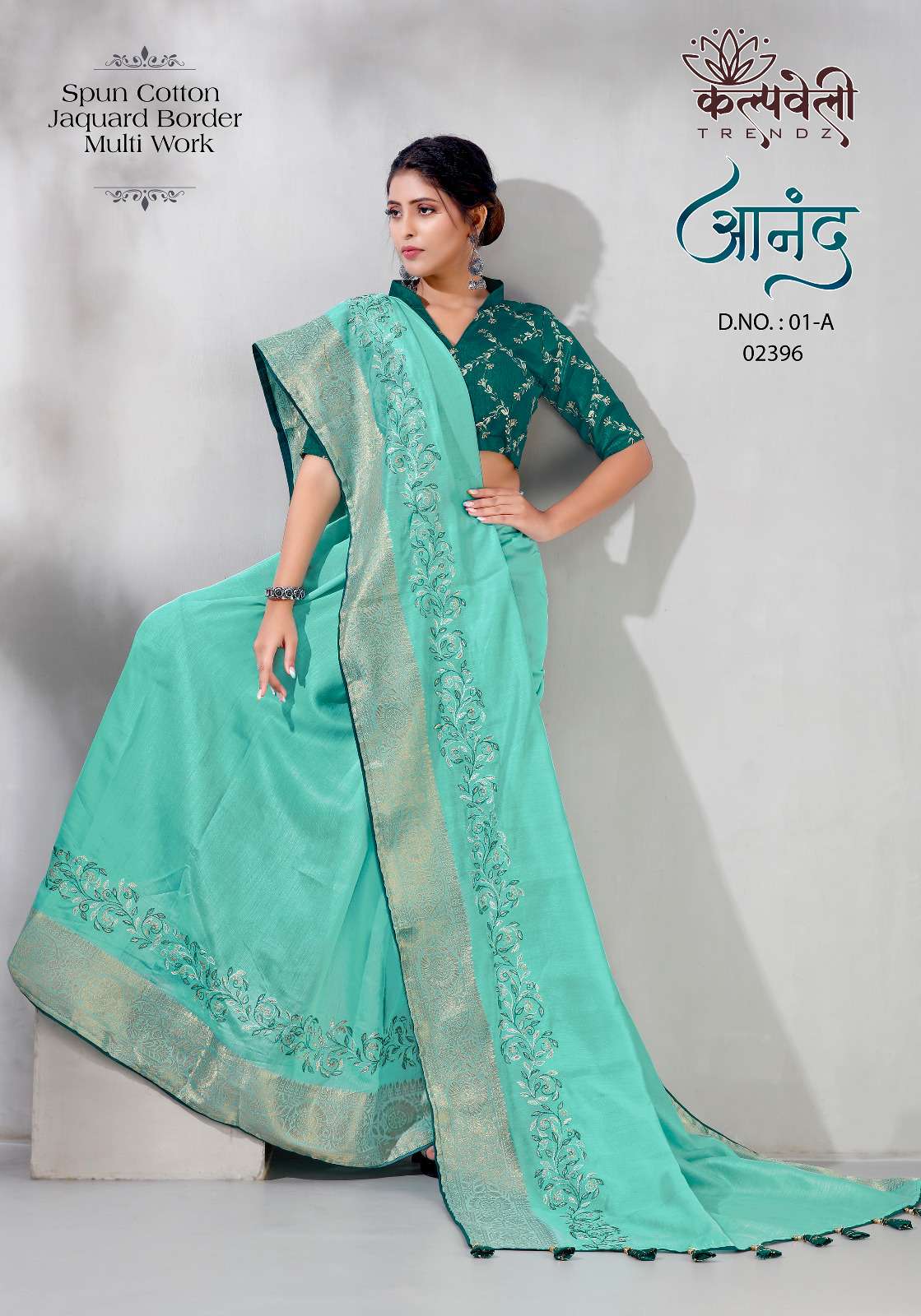 kalpavelly trendz anand 01 new color amazing spun cotton jacquard border saree wholesaler