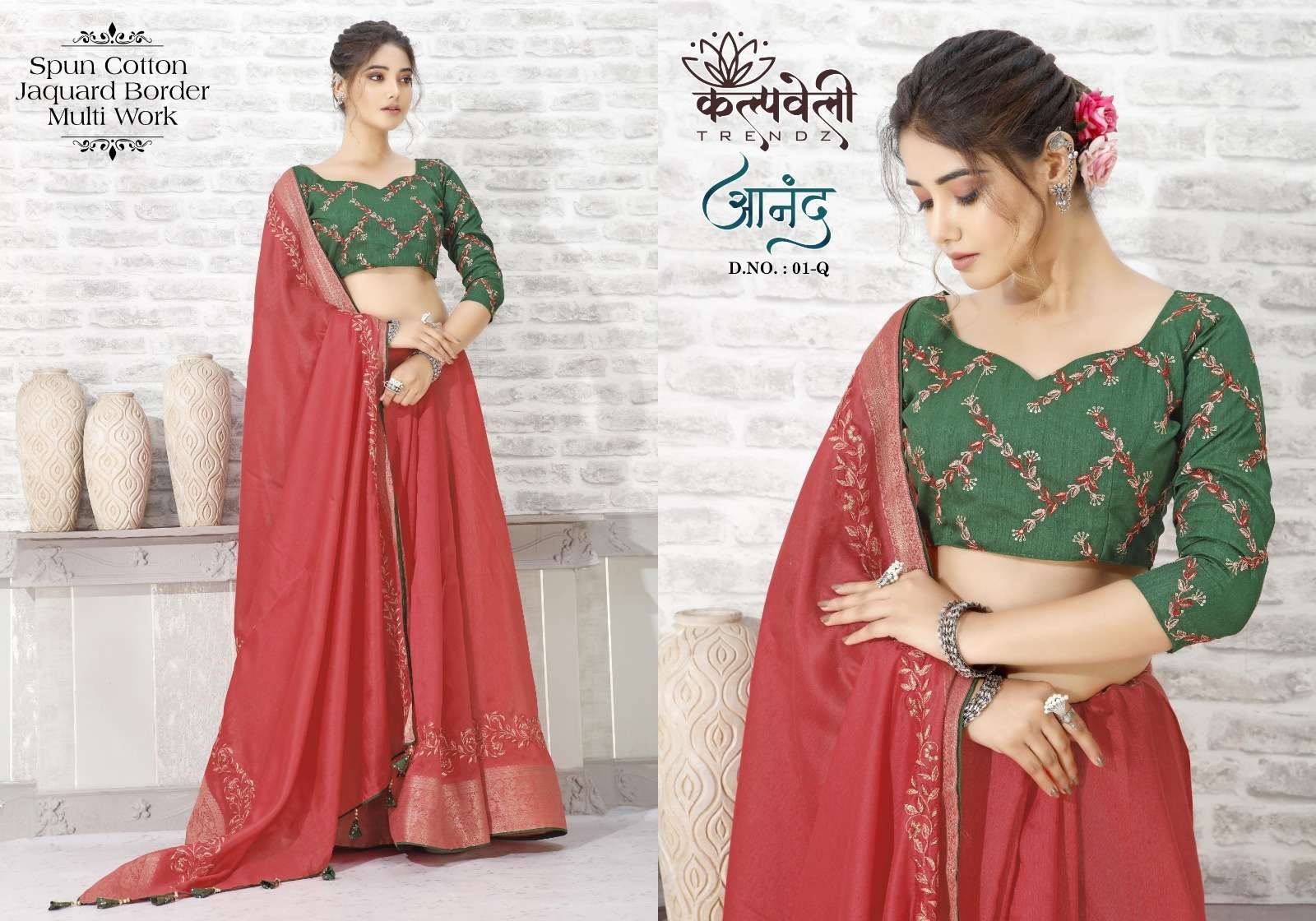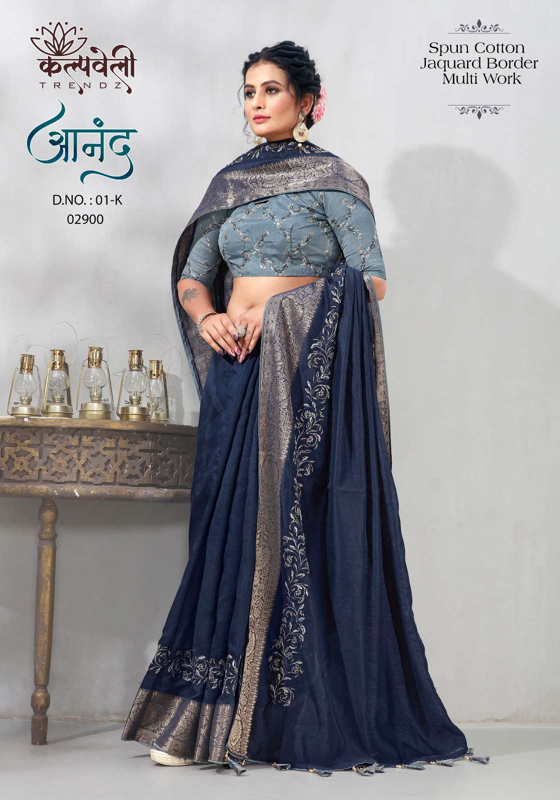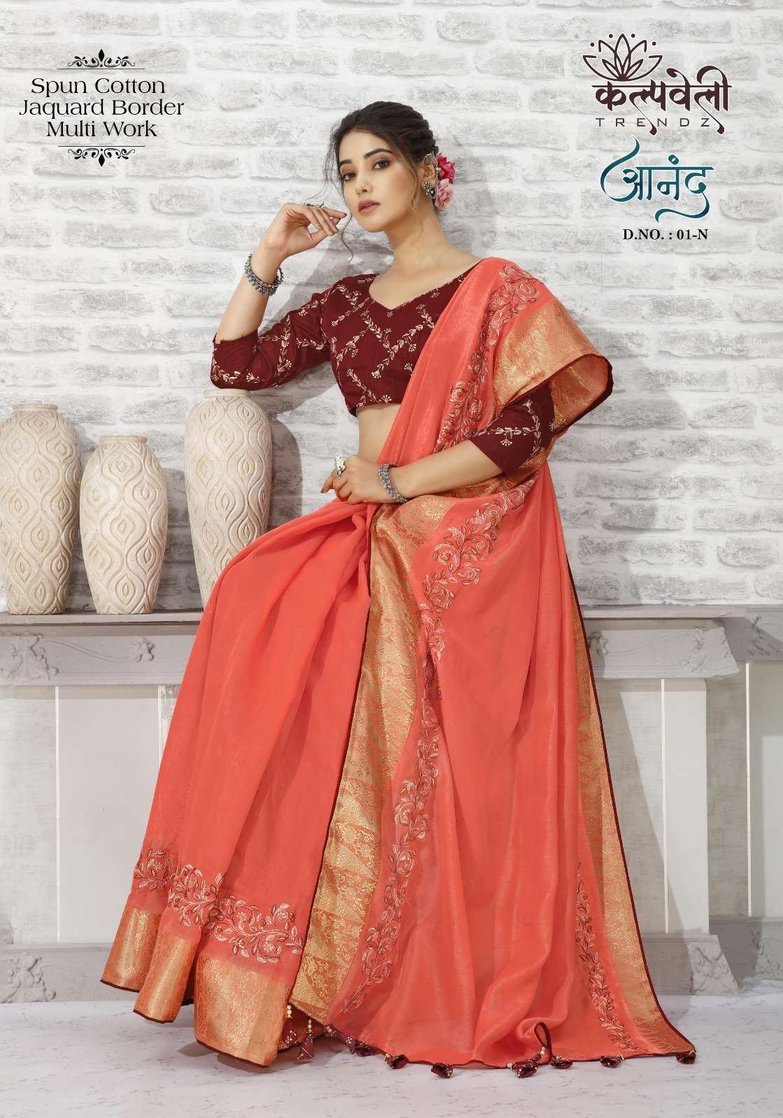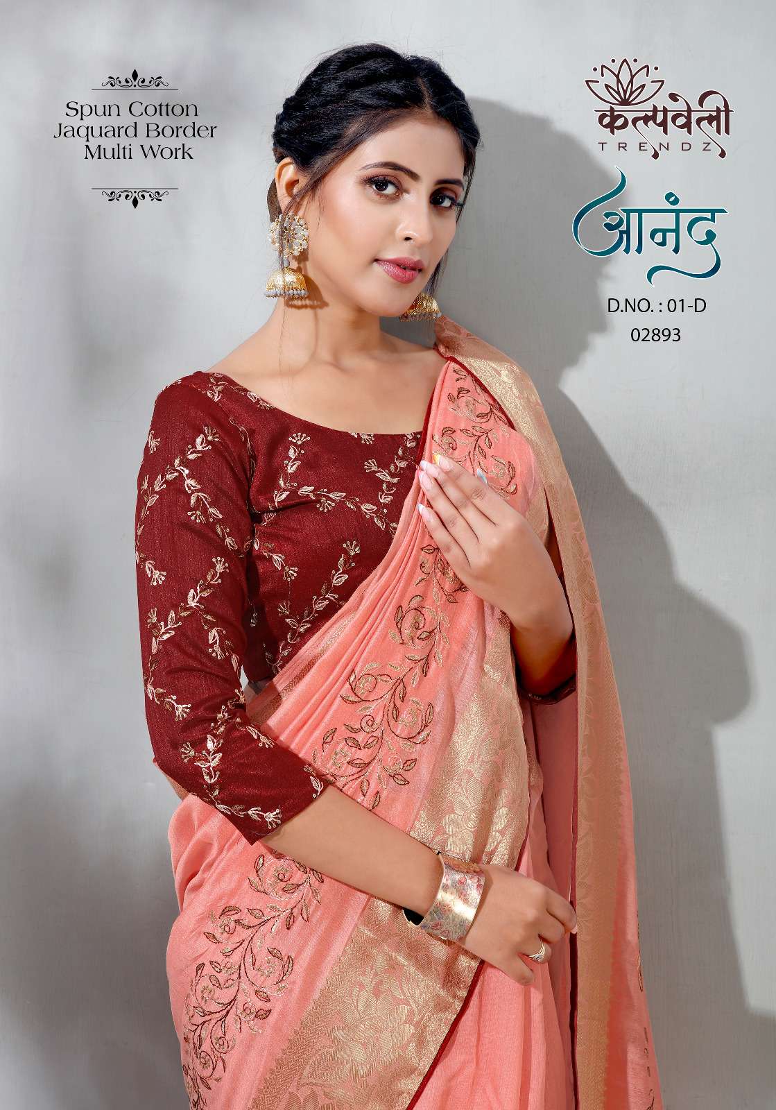 kalpavelly trendz anand 01 new color amazing spun cotton jacquard border saree wholesaler