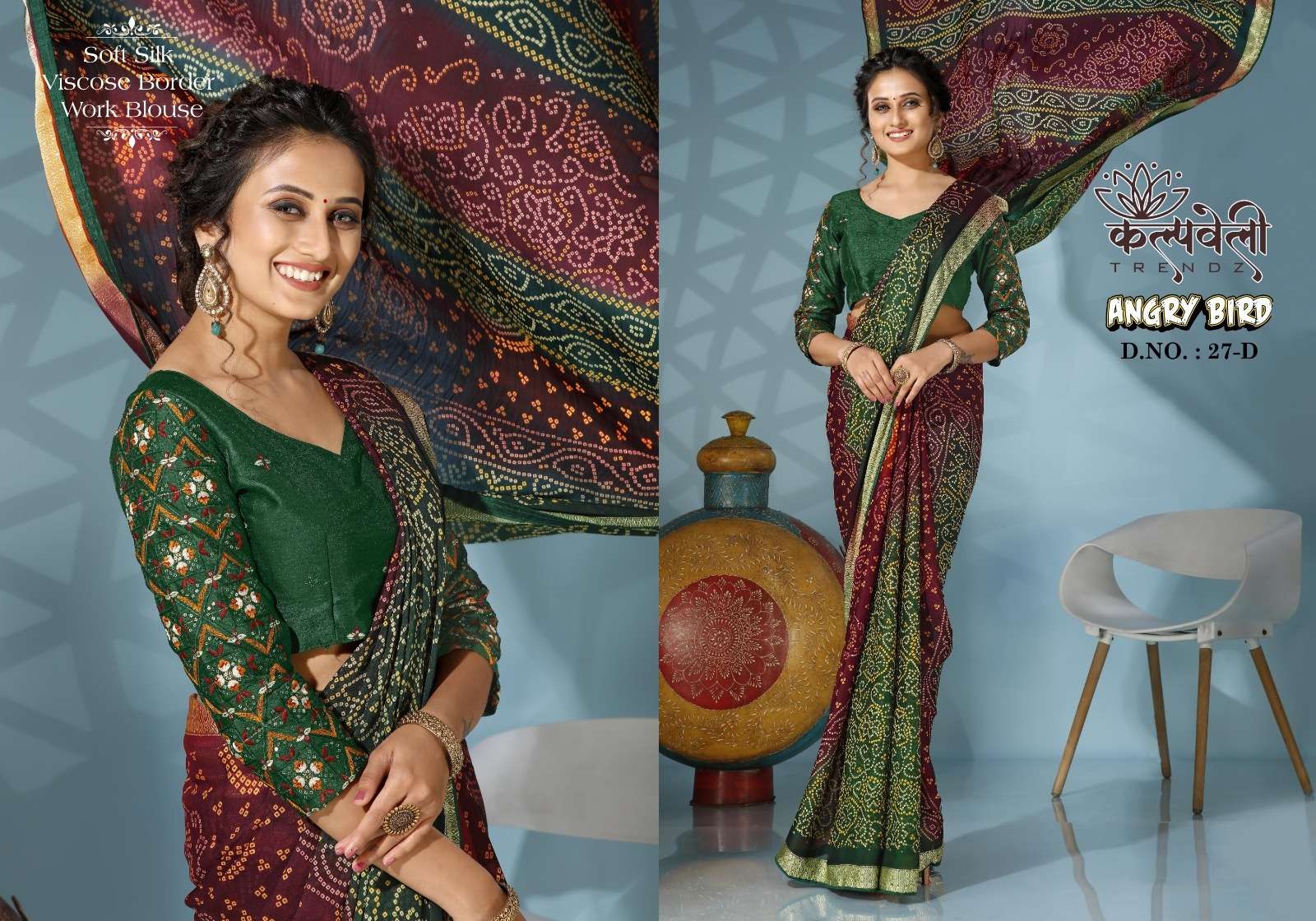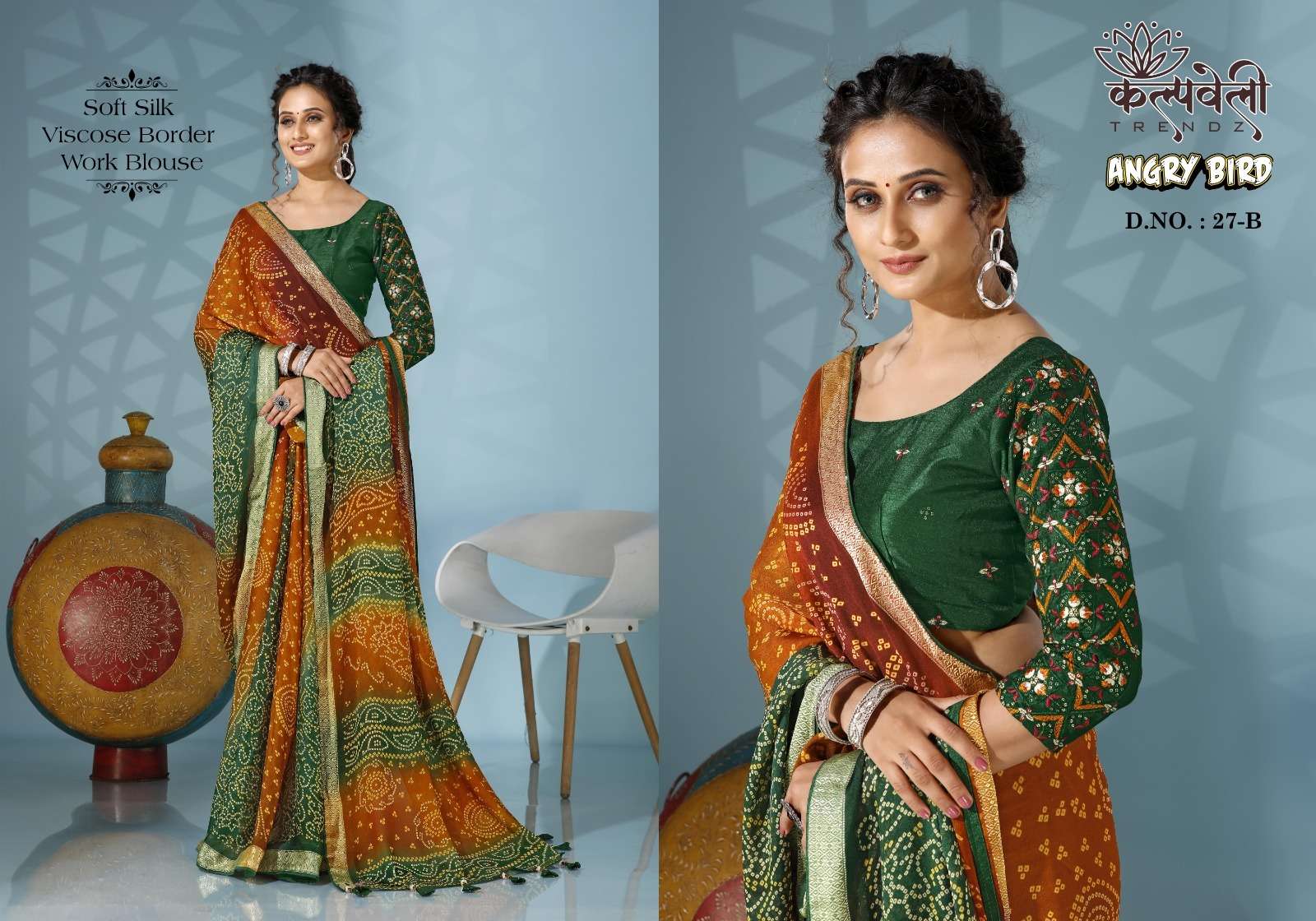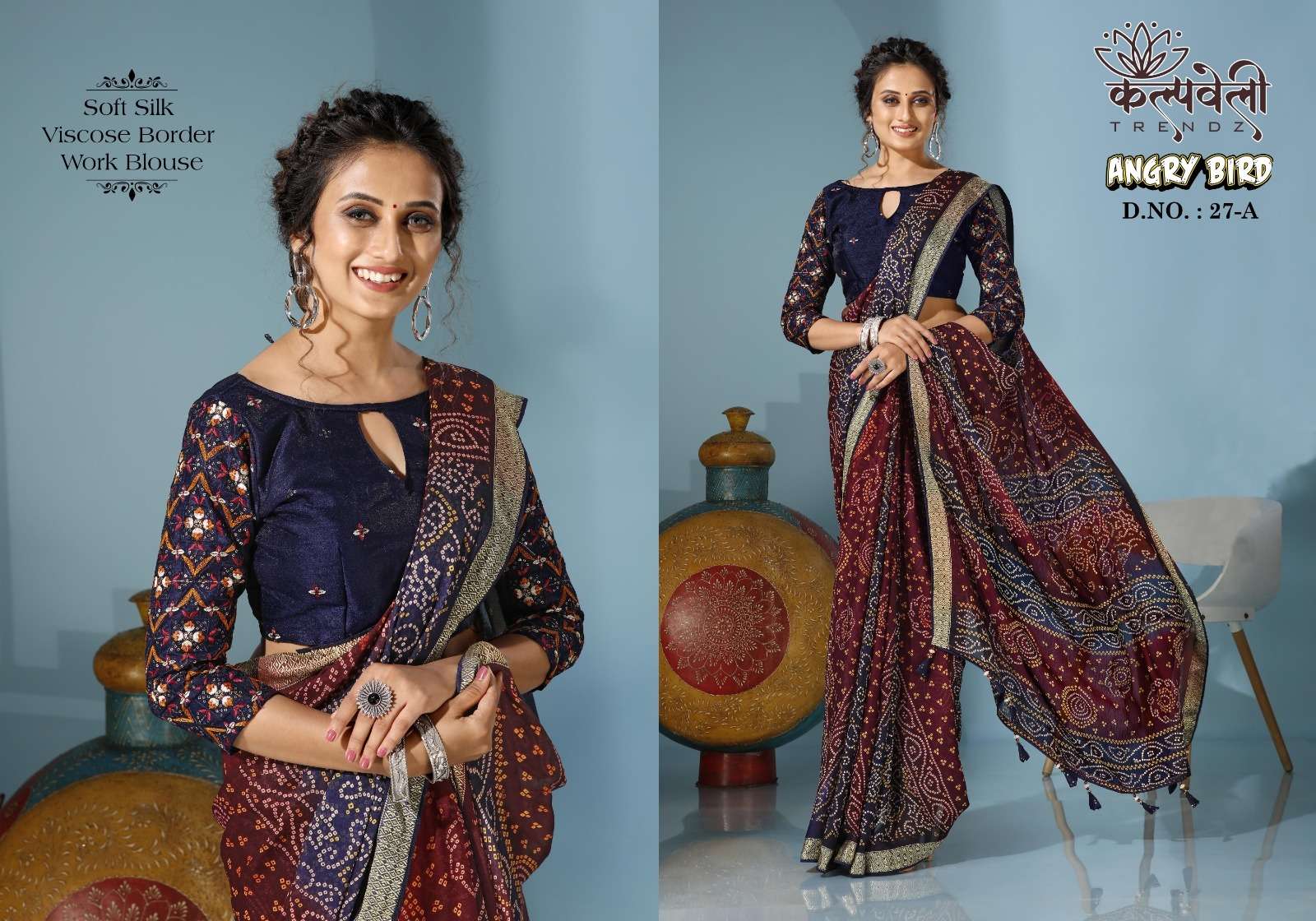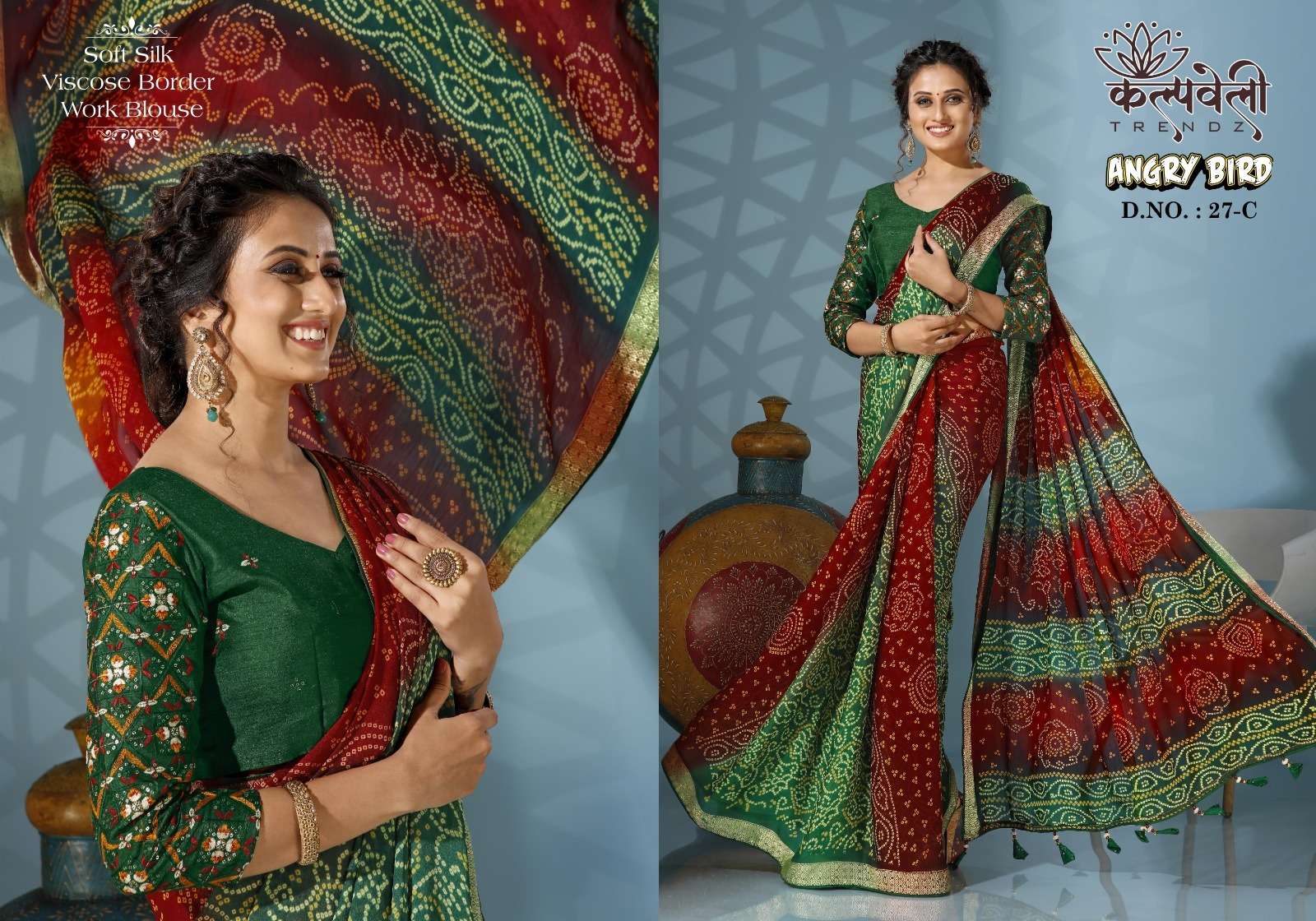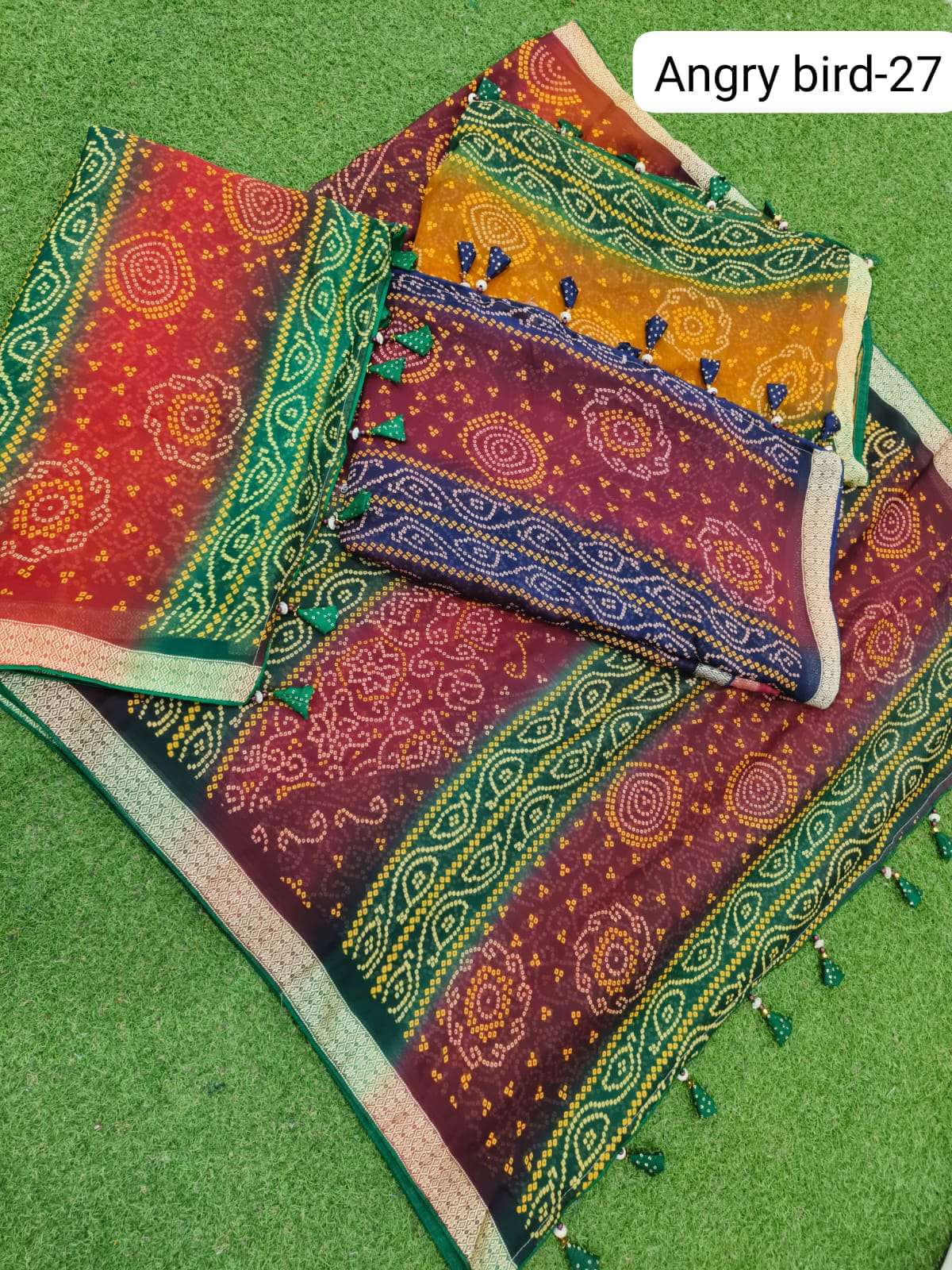 kalpavelly trendz angry bird 27 soft silk bandhani print sarees supplier