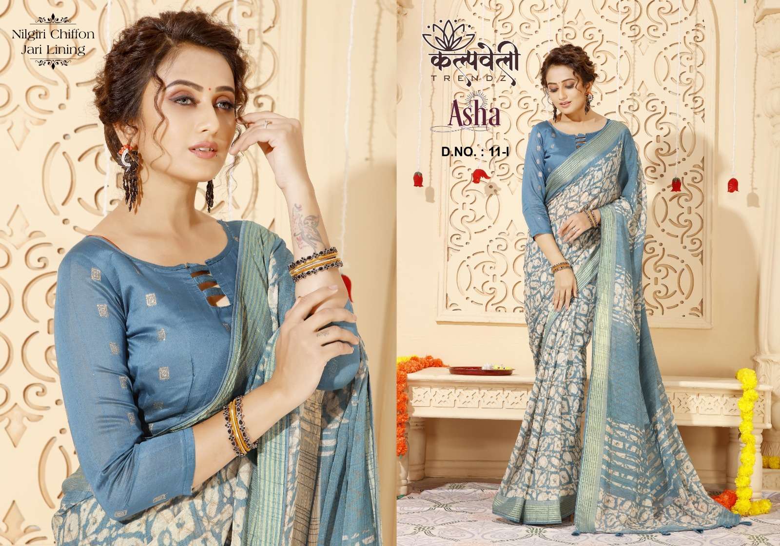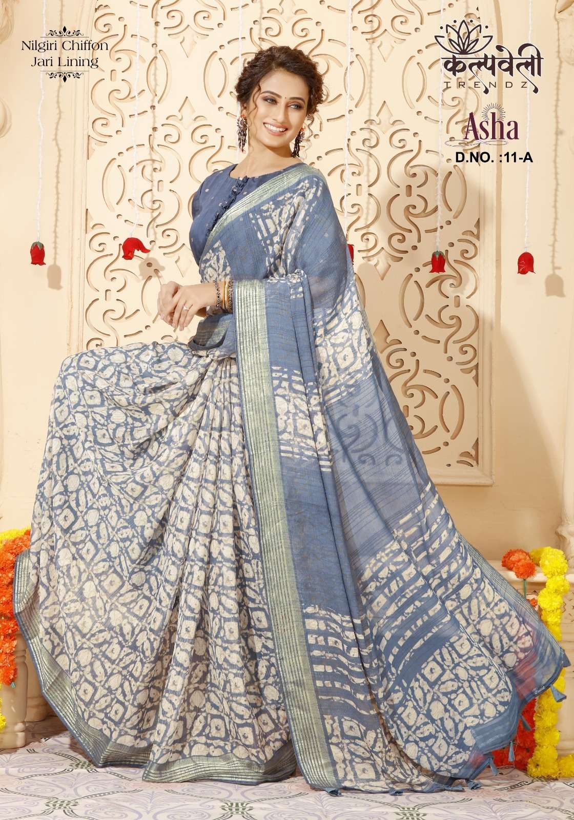 kalpavelly trendz asha 11 fancy casual chiffon saree wholesaler