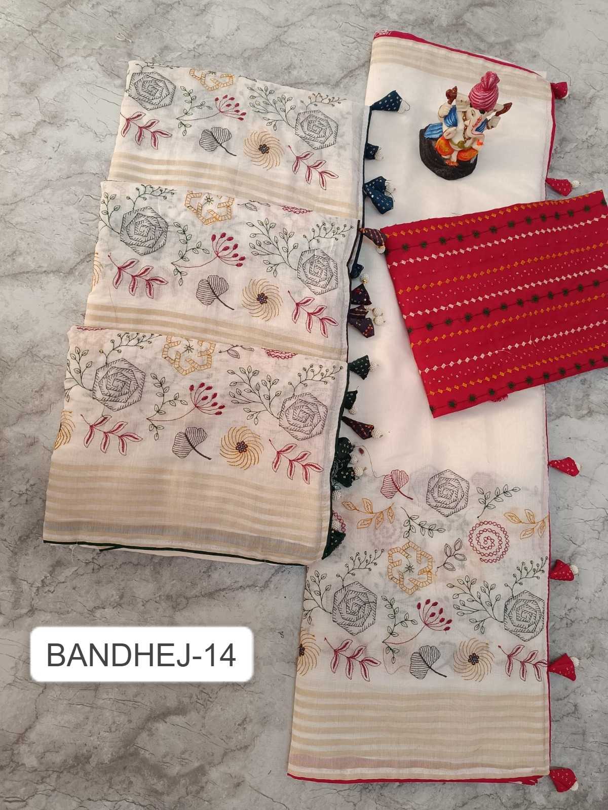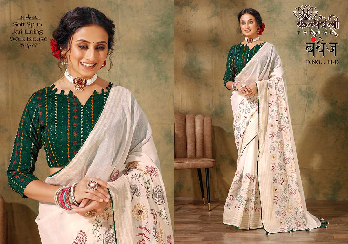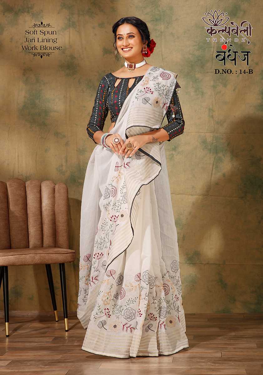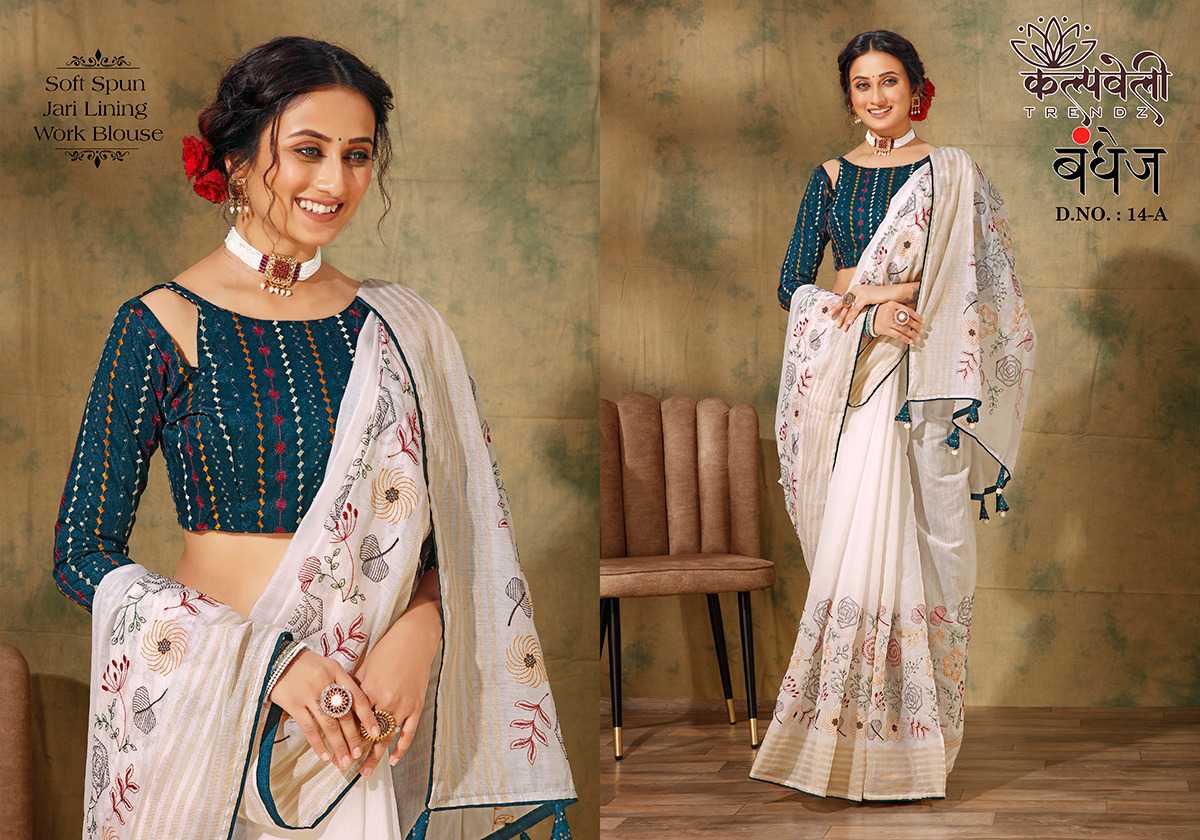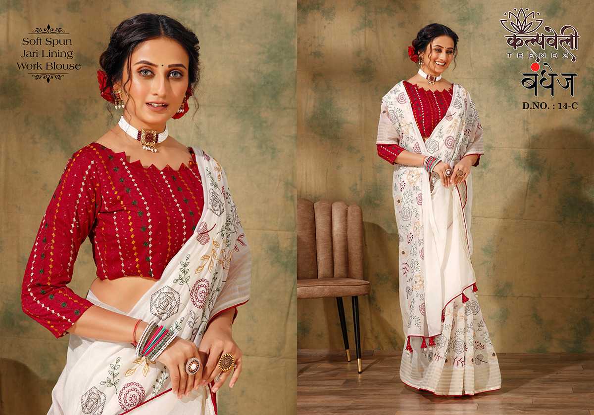 kalpavelly trendz bandhej 14 fancy work special white cotton sarees